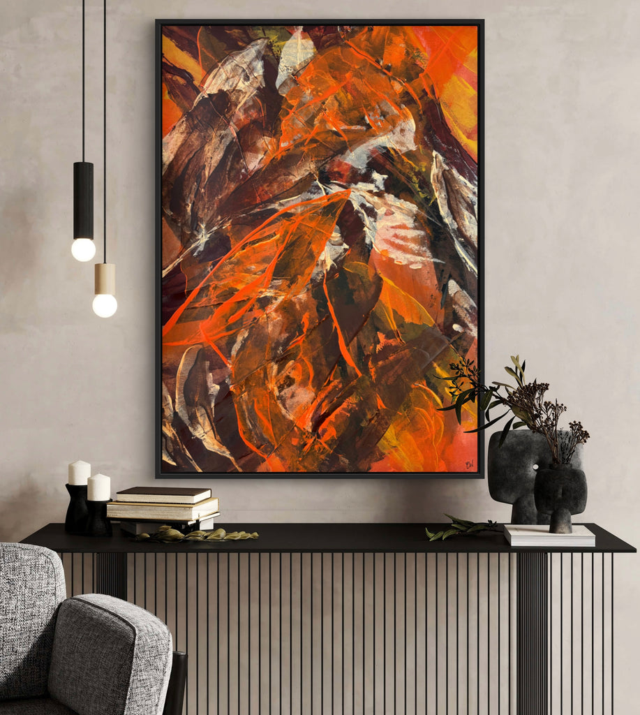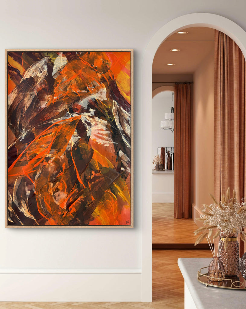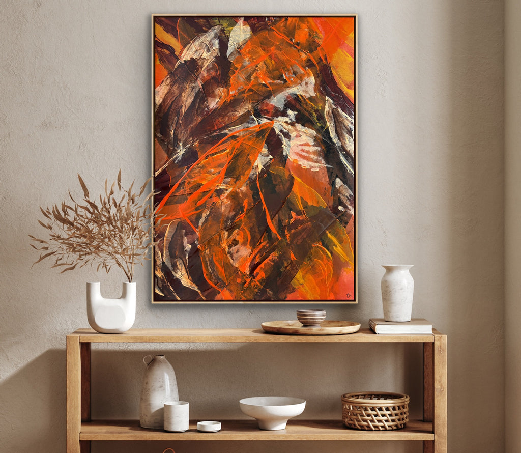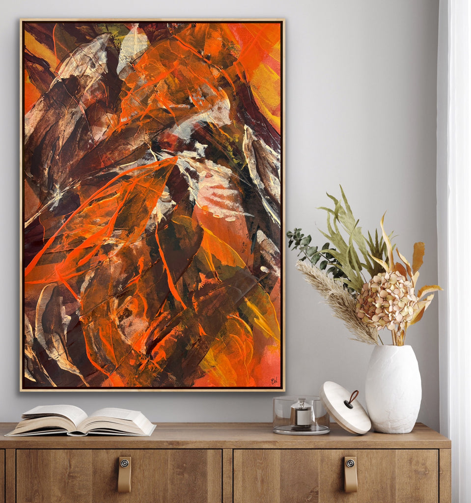 Float framed in premium 1cm wide x 5.5cm deep Tasmanian Oak, Matte White or Matte Black Frame, with a 5mm ‘shadow’ line between frame and canvas. Ready to hang.