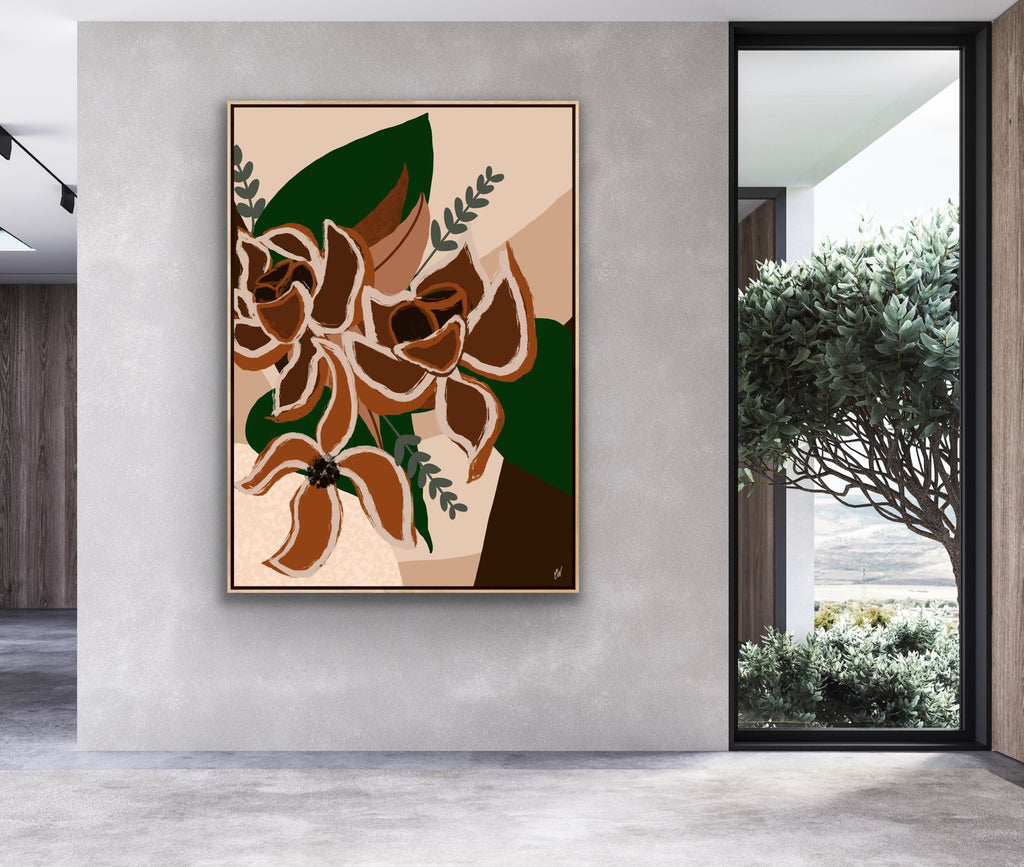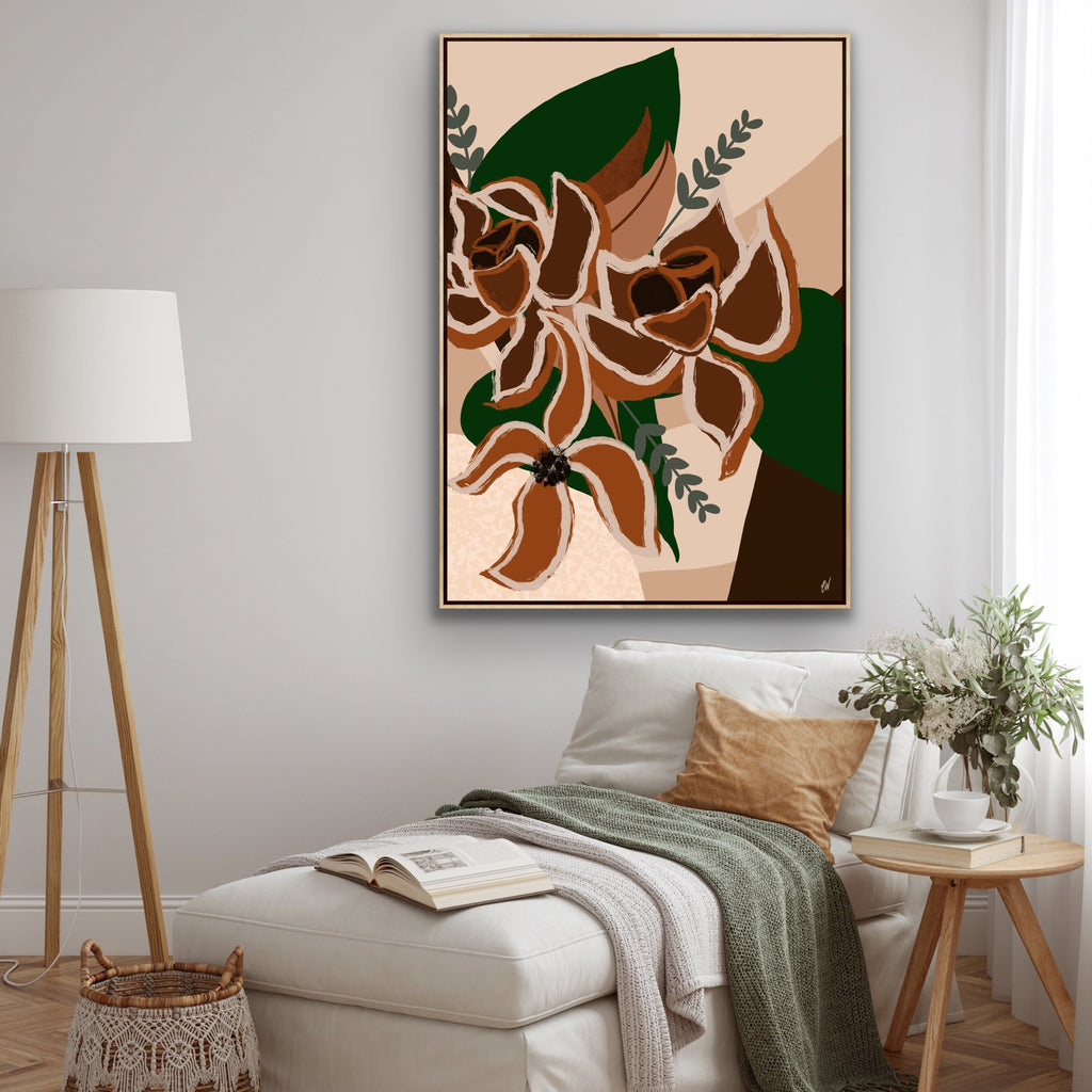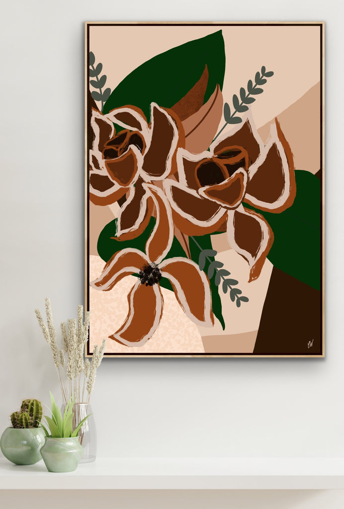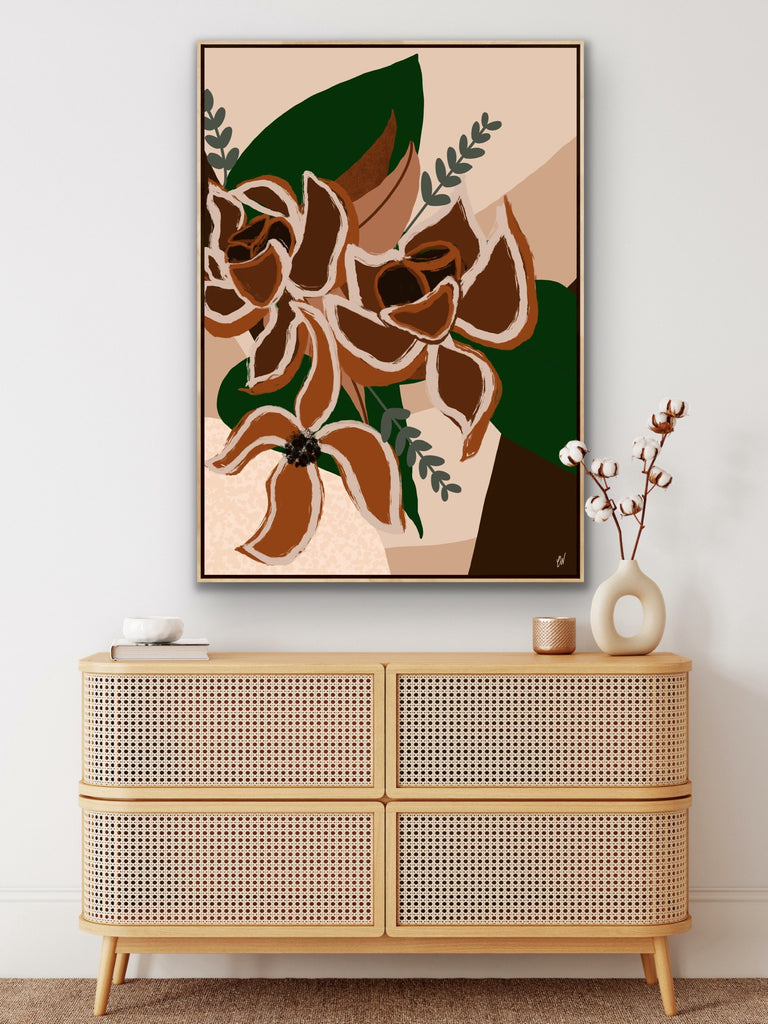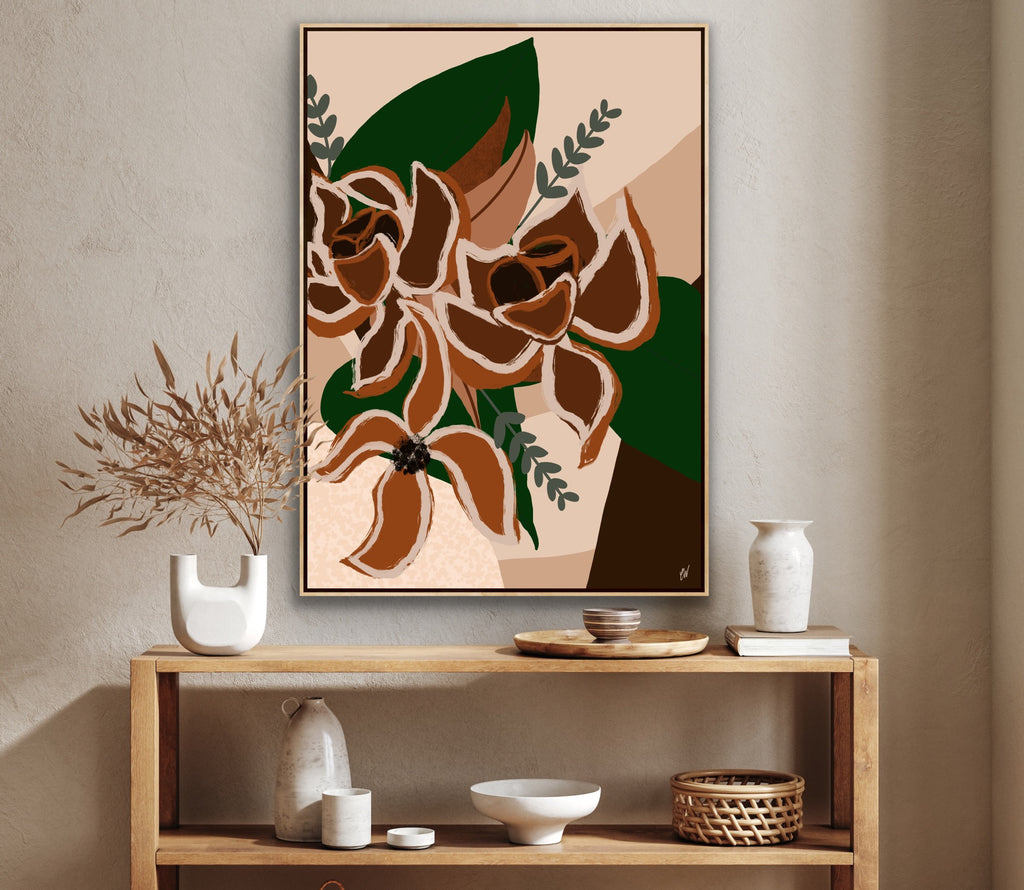 Float framed in premium 1cm wide x 5.5cm deep Tasmanian Oak, Matte White or Matte Black Frame, with a 5mm ‘shadow’ line between frame and canvas. Ready to hang.