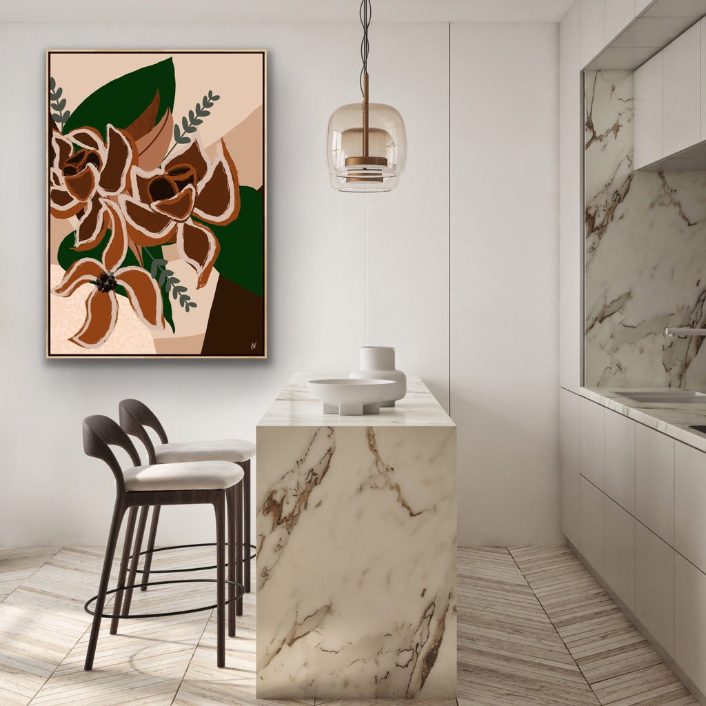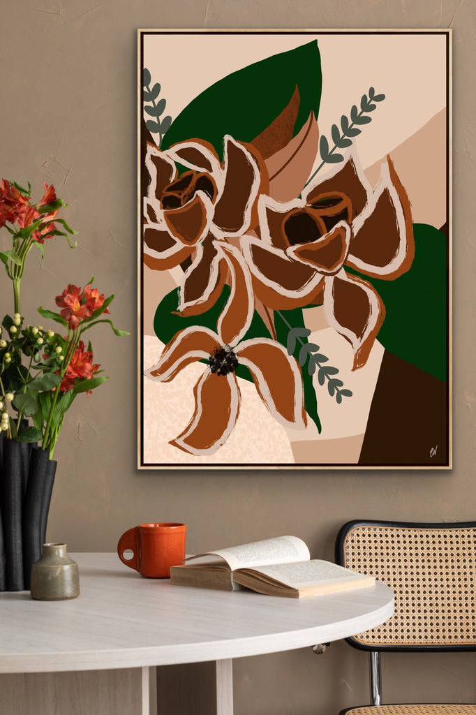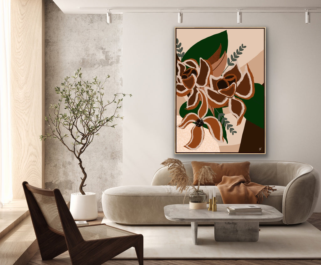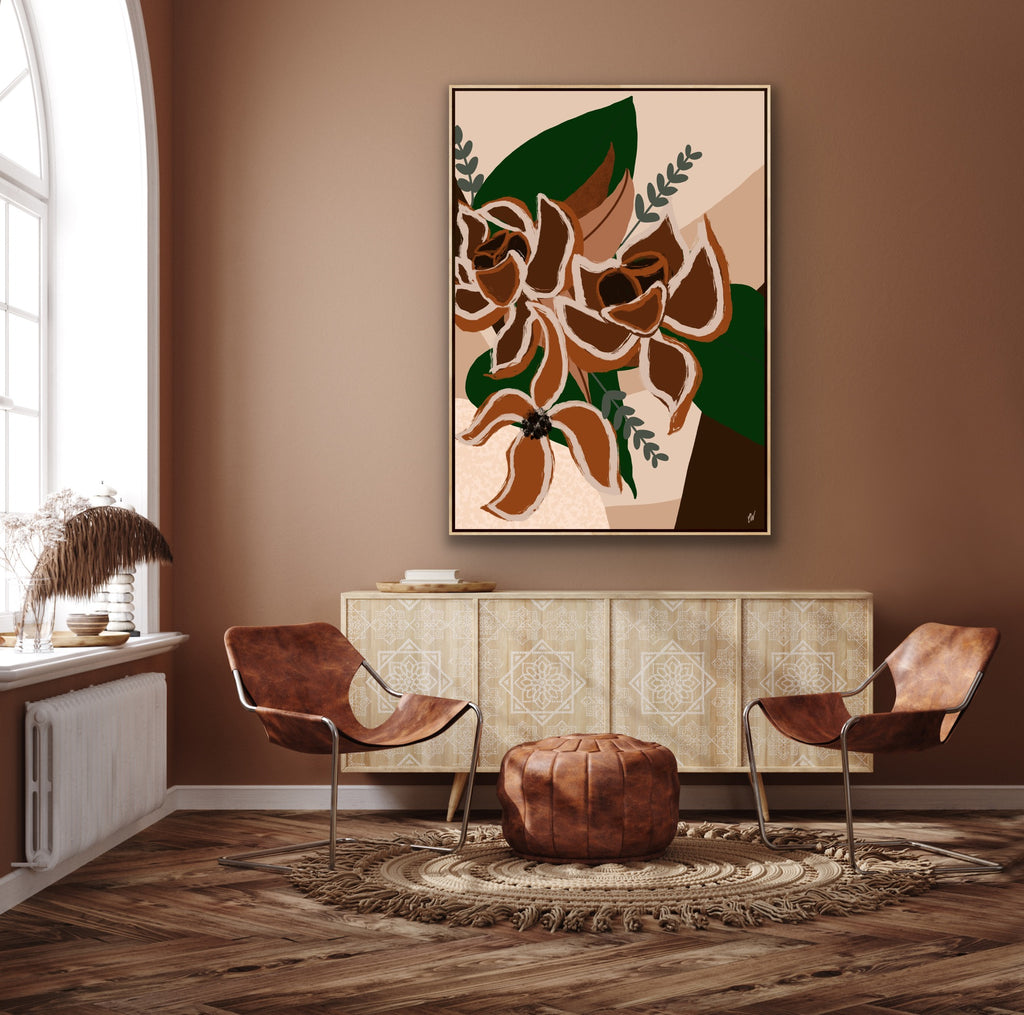 Float framed in premium 1cm wide x 5.5cm deep Tasmanian Oak, Matte White or Matte Black Frame, with a 5mm ‘shadow’ line between frame and canvas. Ready to hang.
