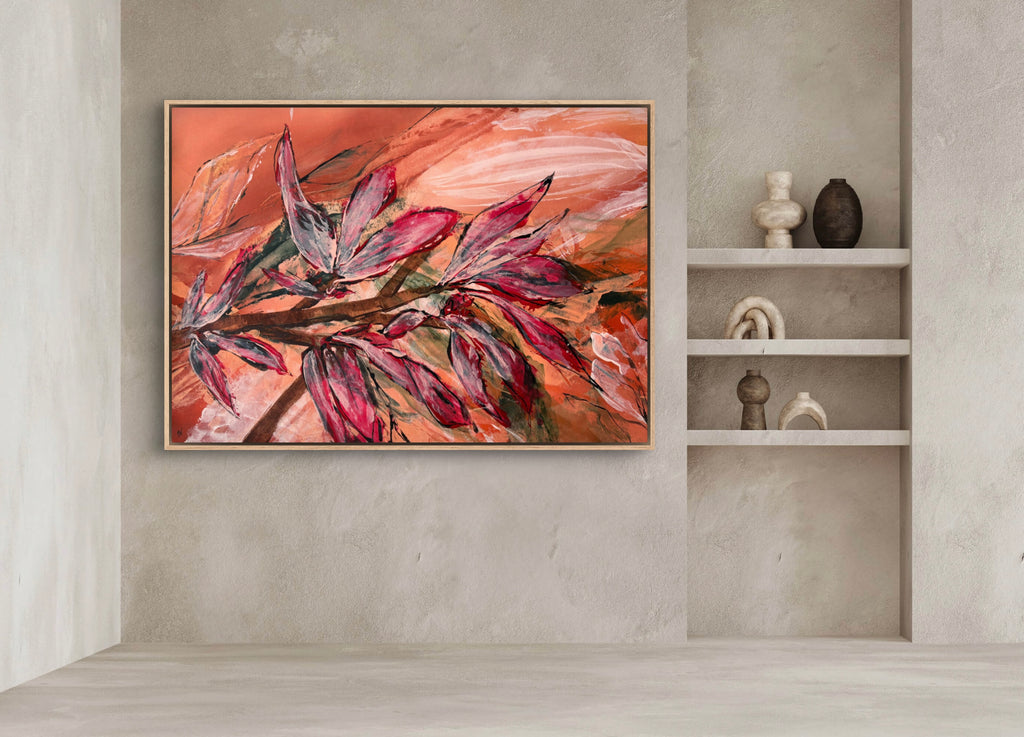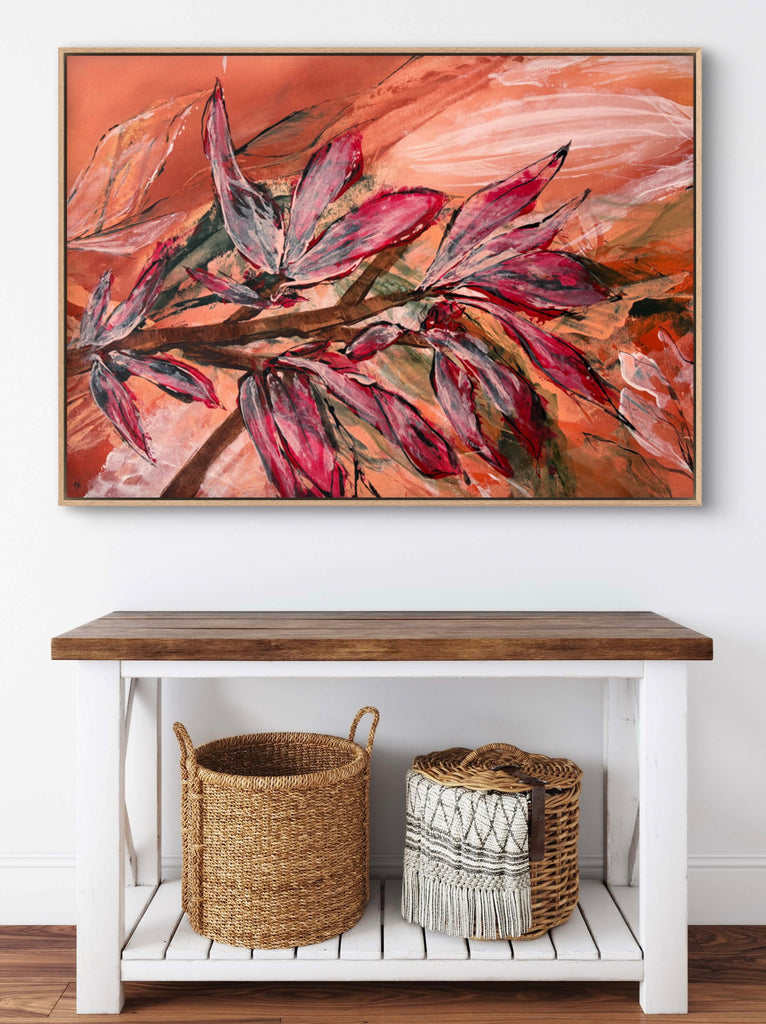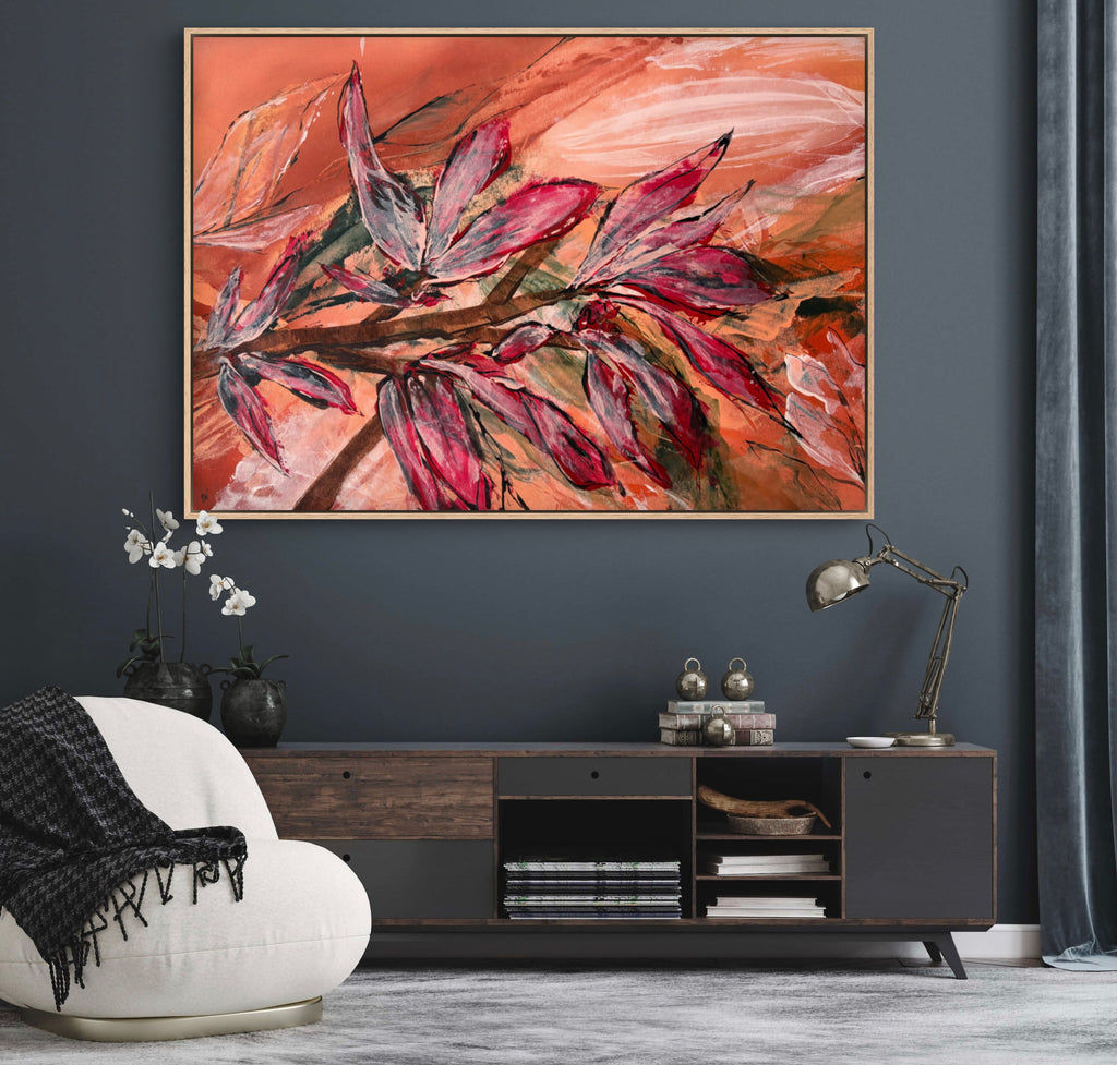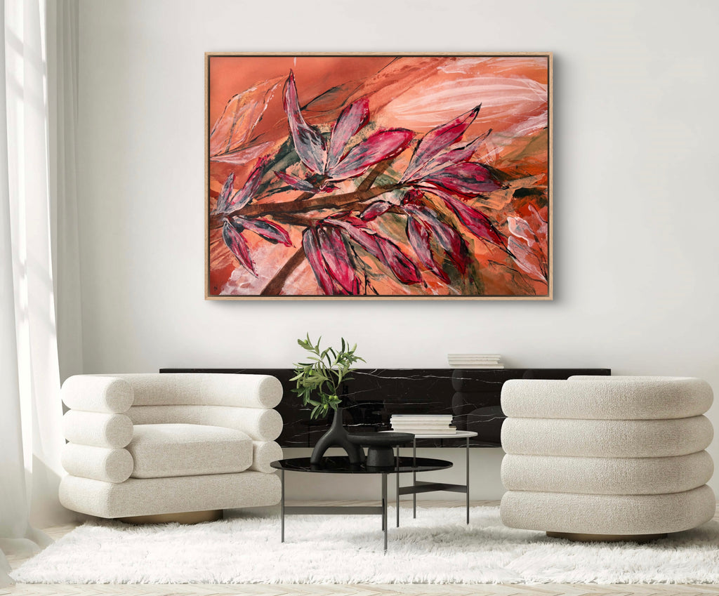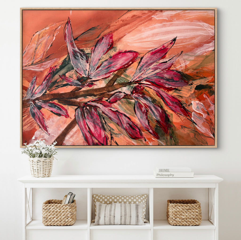Float framed in premium 1cm wide x 5.5cm deep Tasmanian Oak, Matte White or Matte Black Frame, with a 5mm ‘shadow’ line between frame and canvas. Ready to hang.