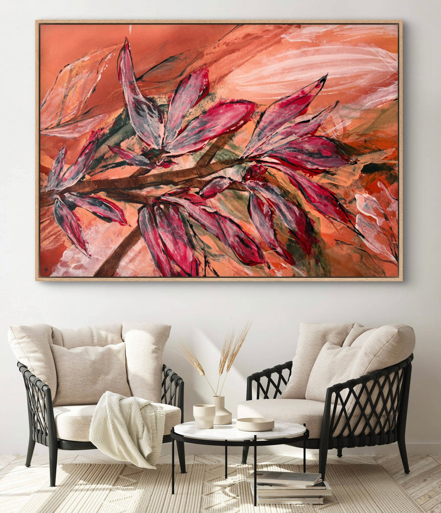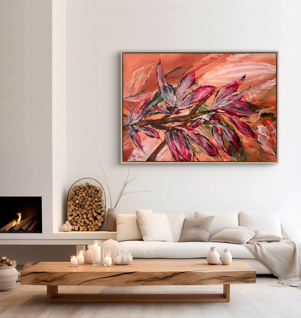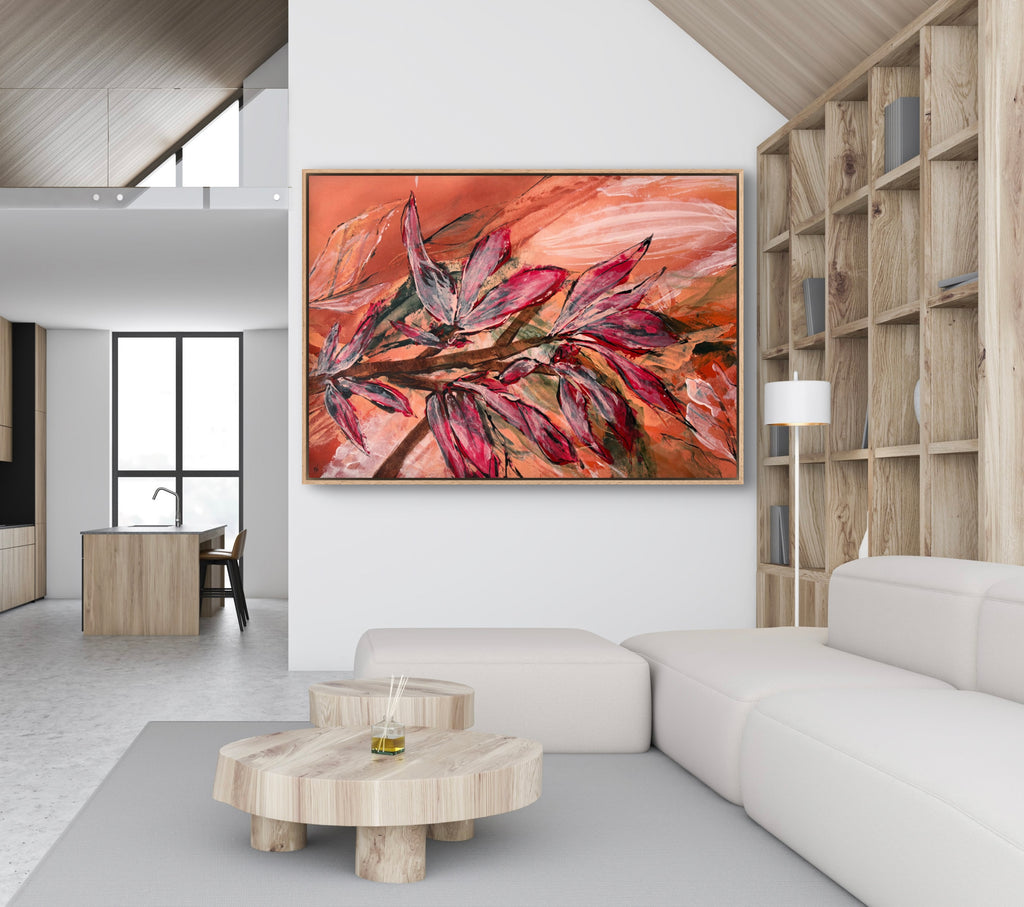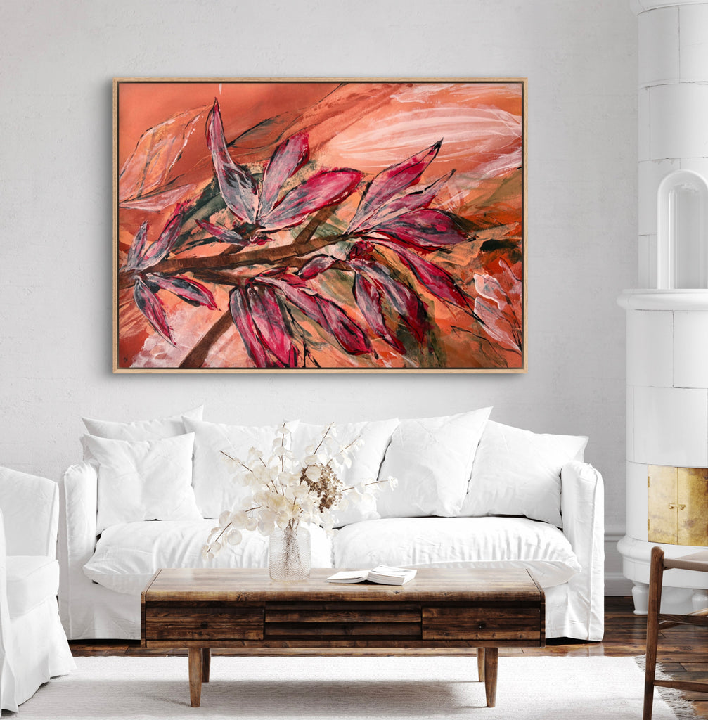 Float framed in premium 1cm wide x 5.5cm deep Tasmanian Oak, Matte White or Matte Black Frame, with a 5mm ‘shadow’ line between frame and canvas. Ready to hang.