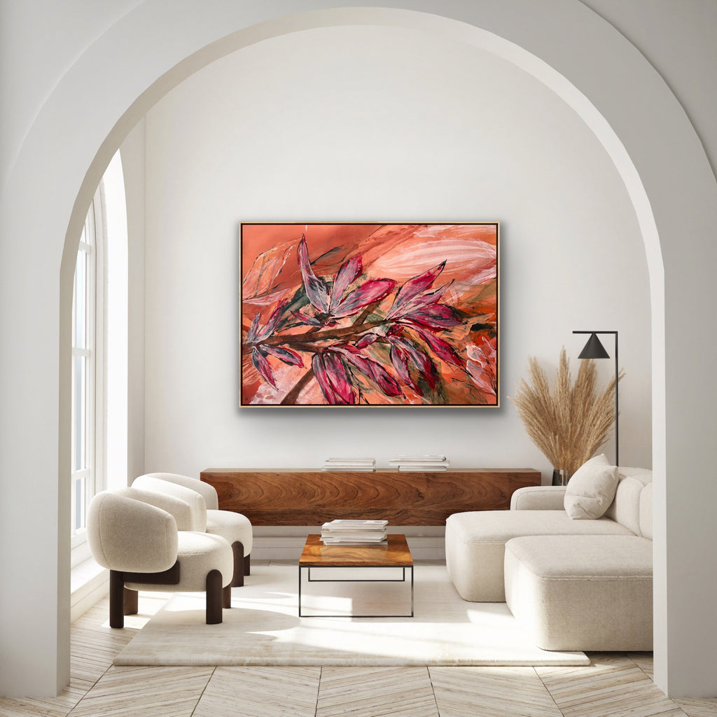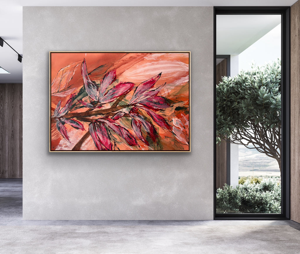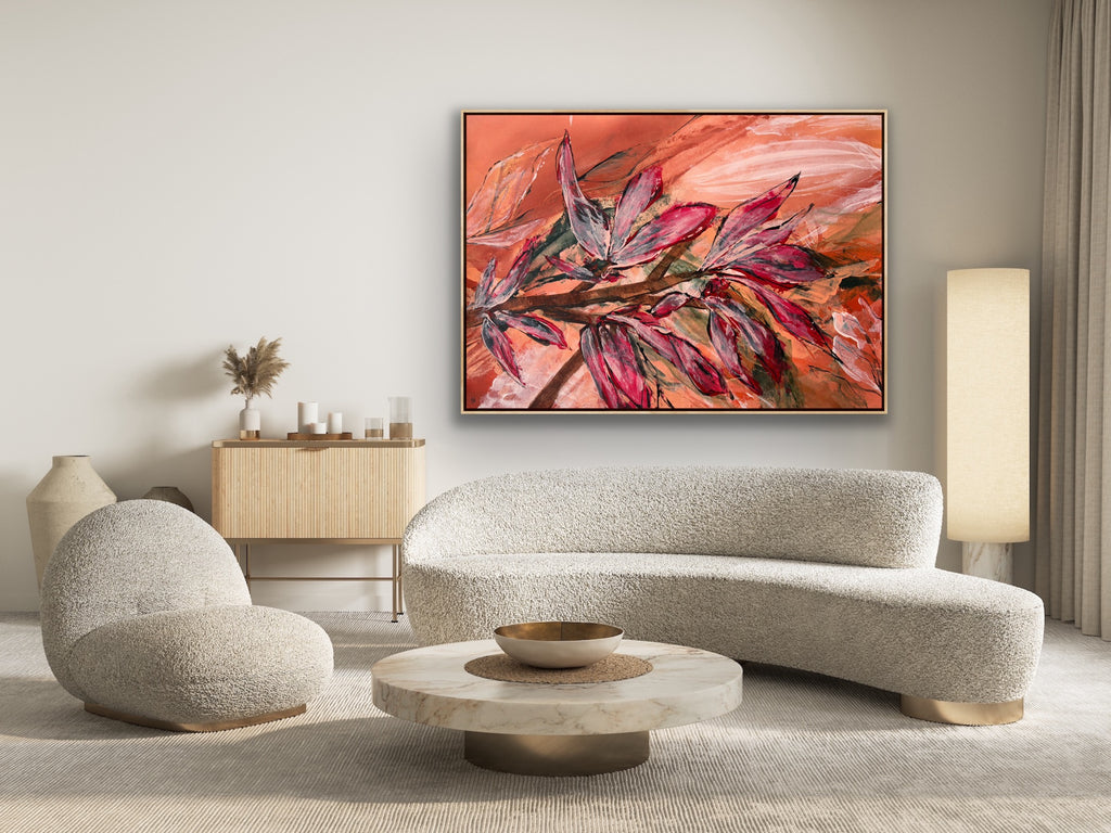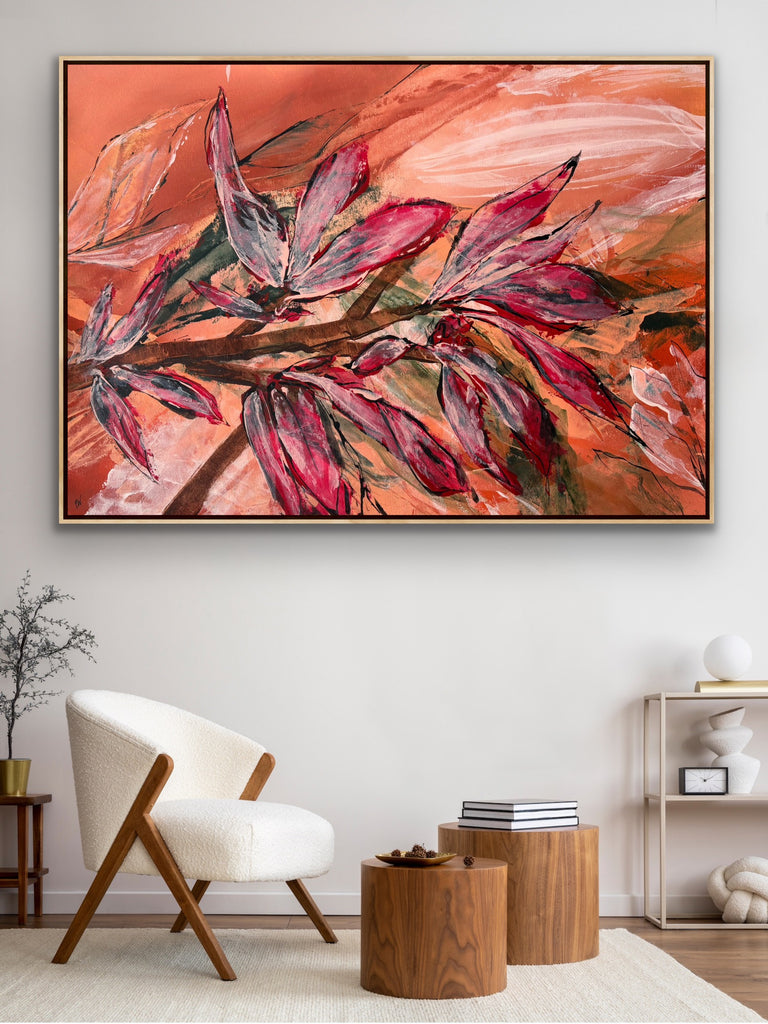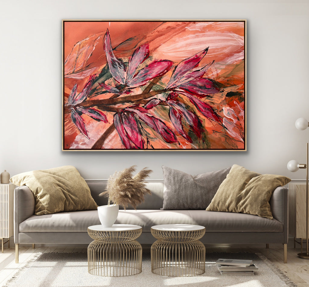 Float framed in premium 1cm wide x 5.5cm deep Tasmanian Oak, Matte White or Matte Black Frame, with a 5mm ‘shadow’ line between frame and canvas. Ready to hang.