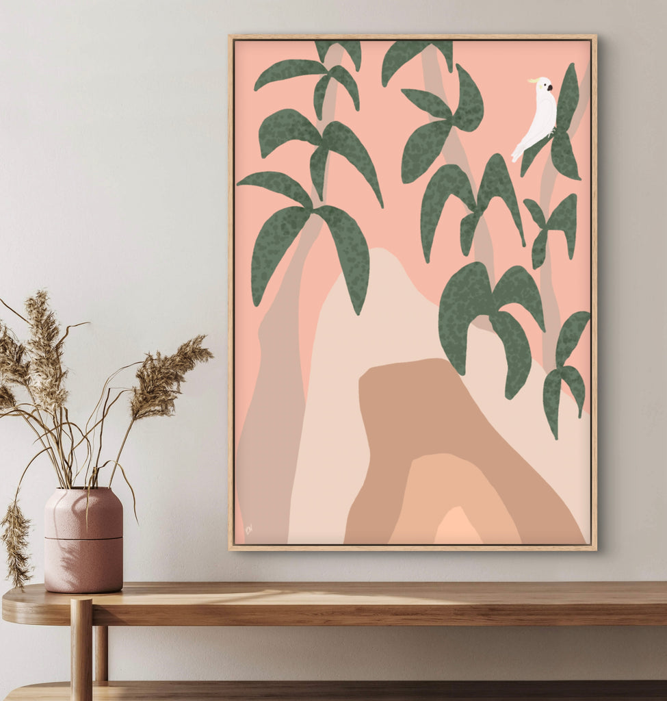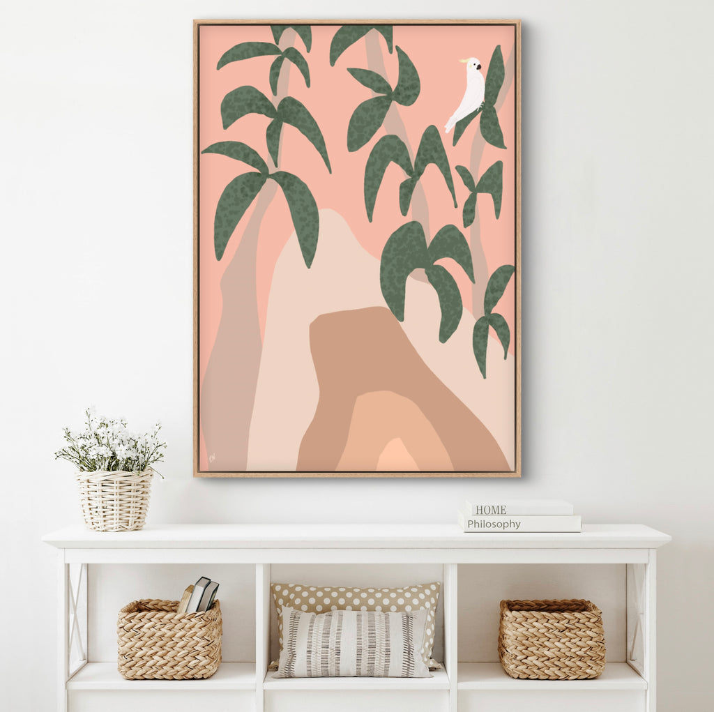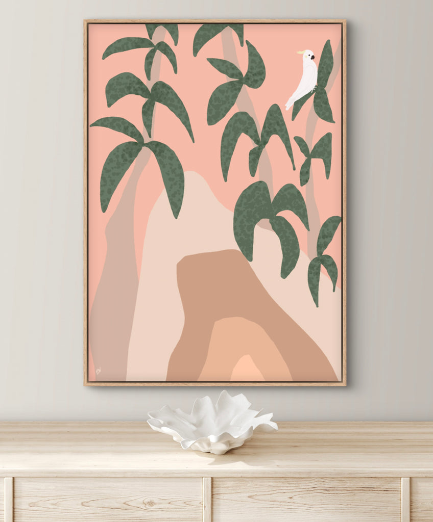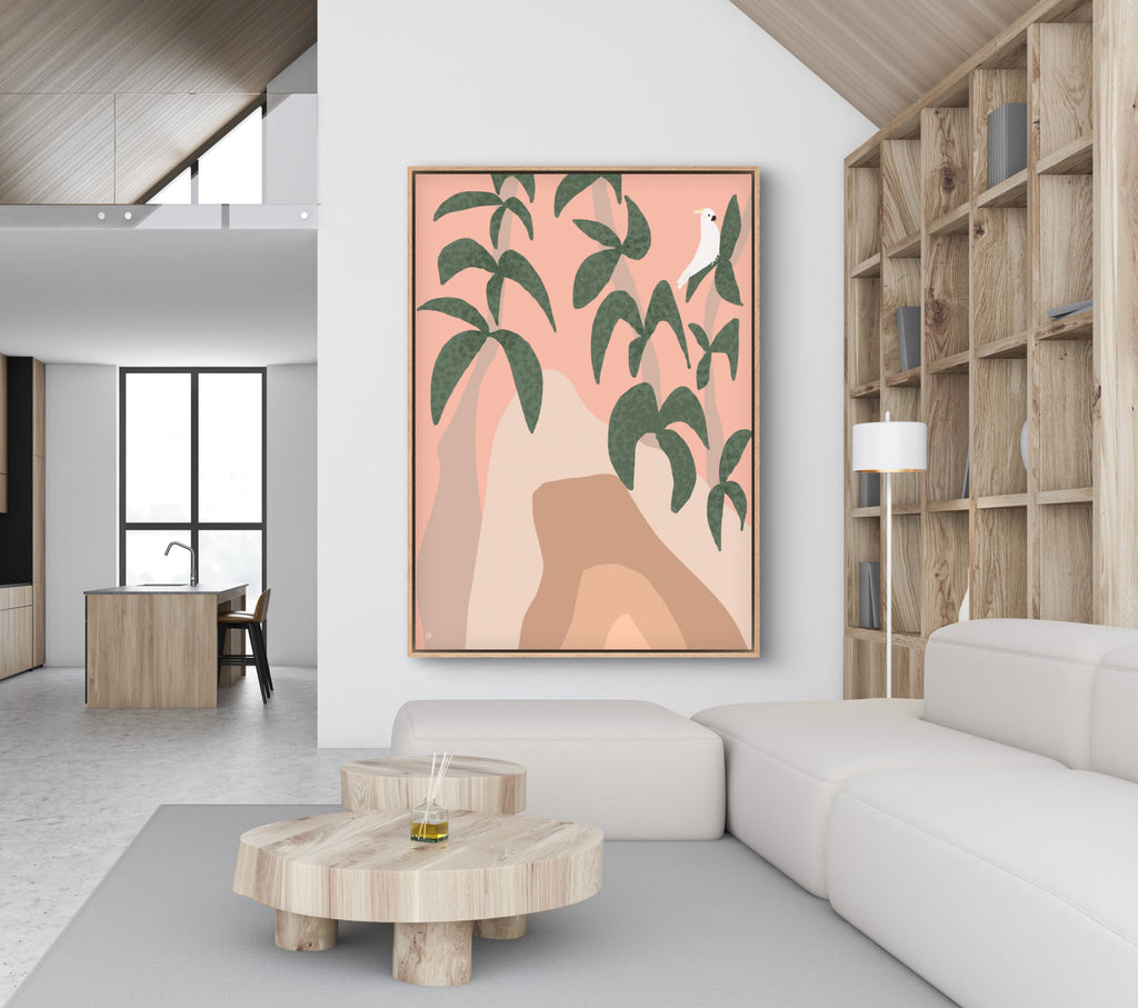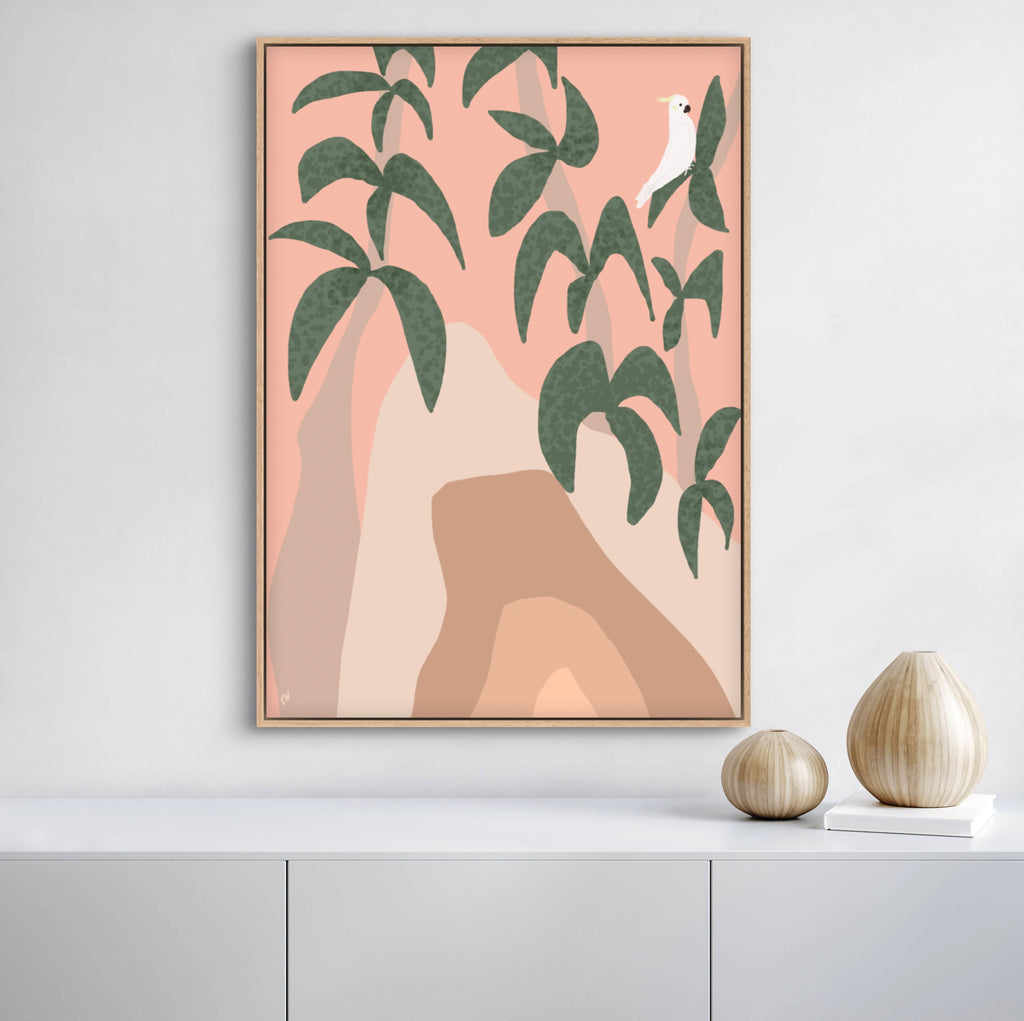 Float framed in premium 1cm wide x 5.5cm deep Tasmanian Oak, Matte White or Matte Black Frame, with a 5mm ‘shadow’ line between frame and canvas. Ready to hang.