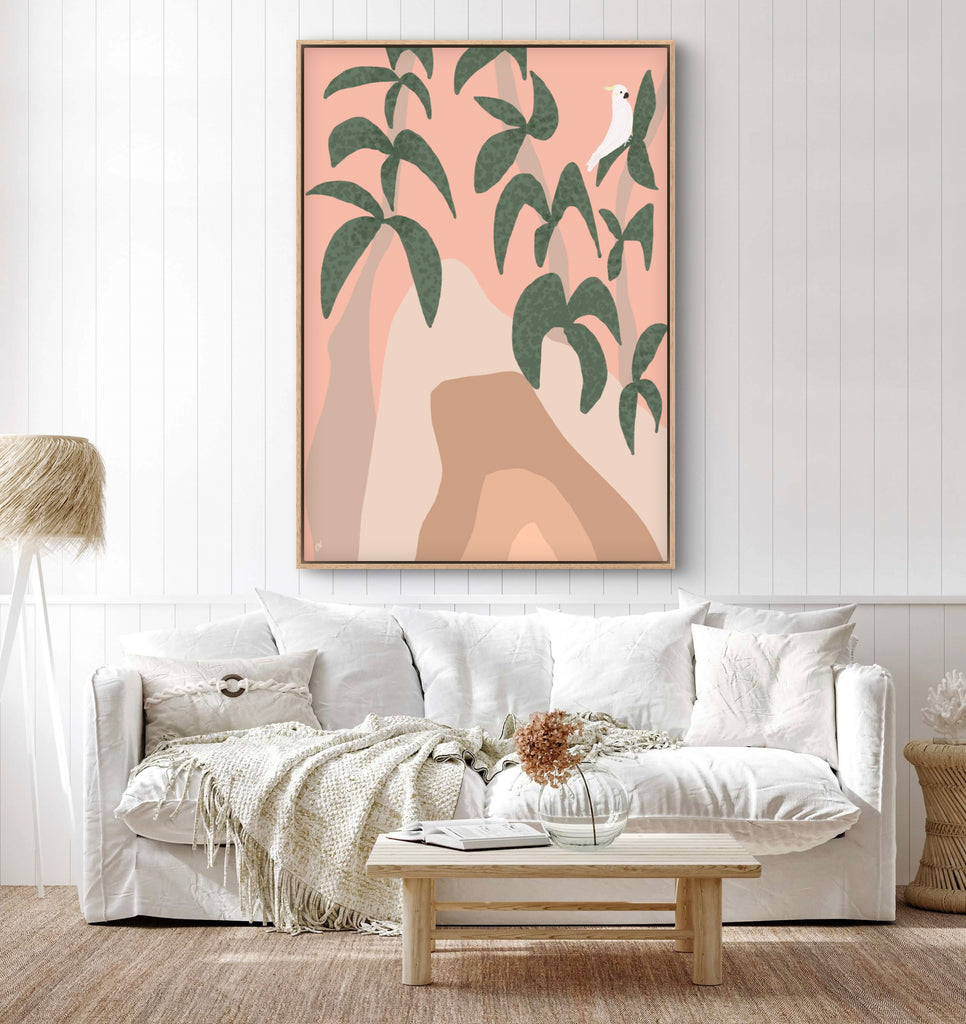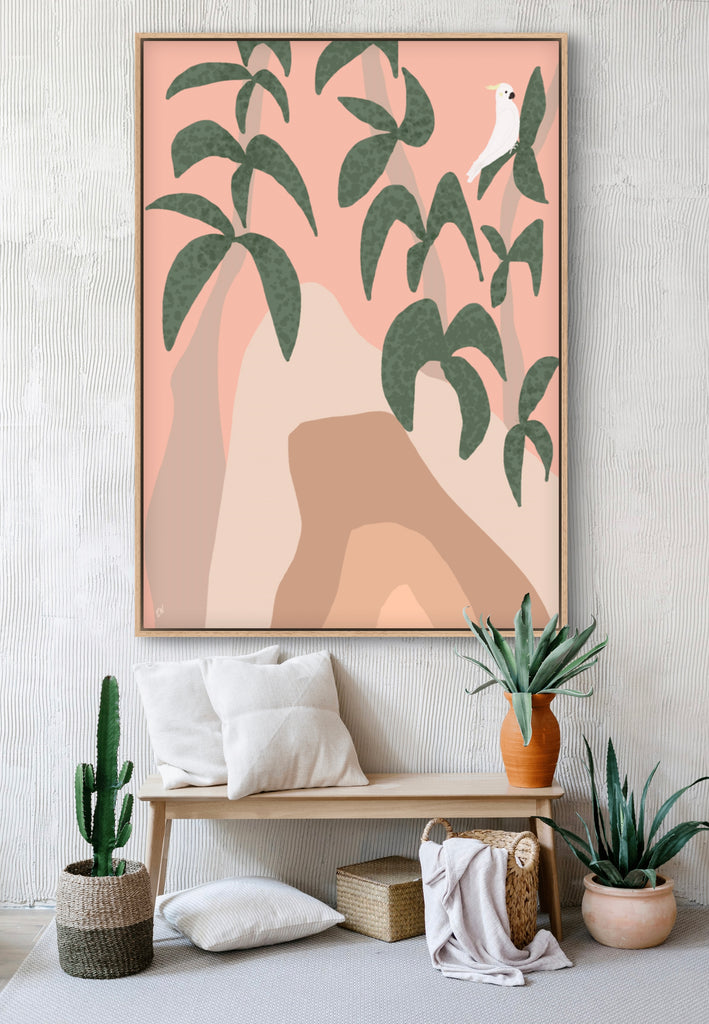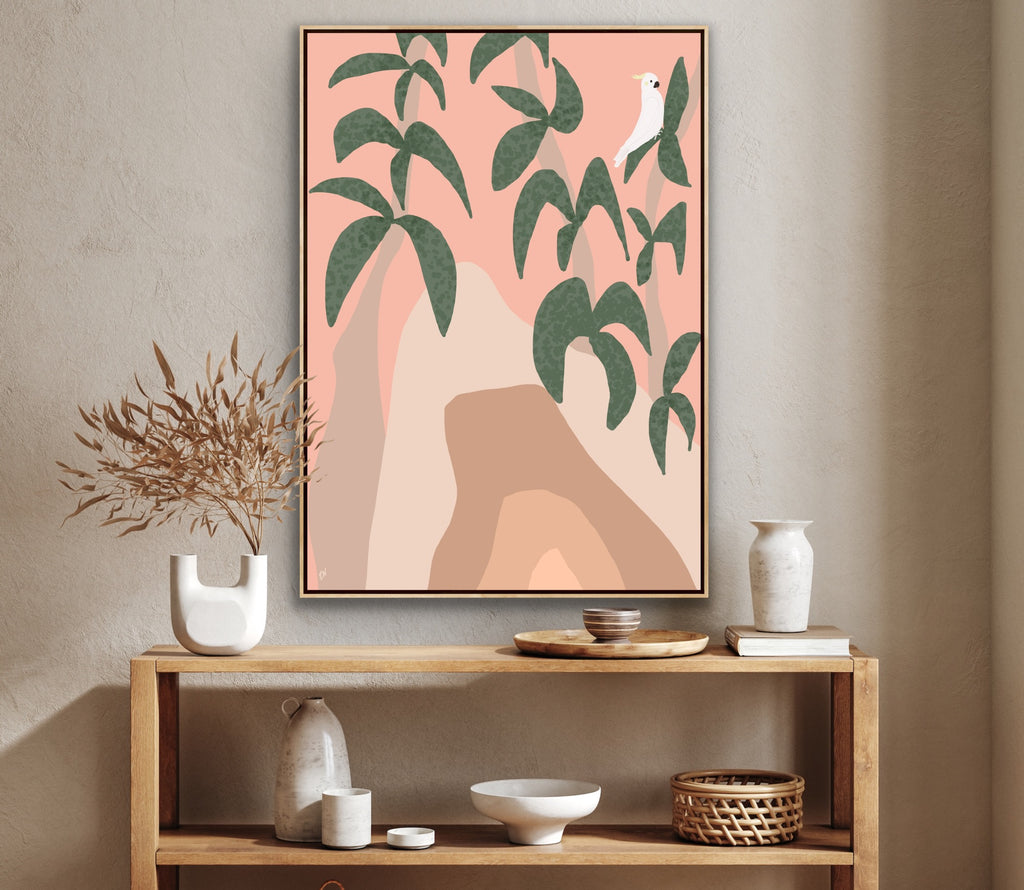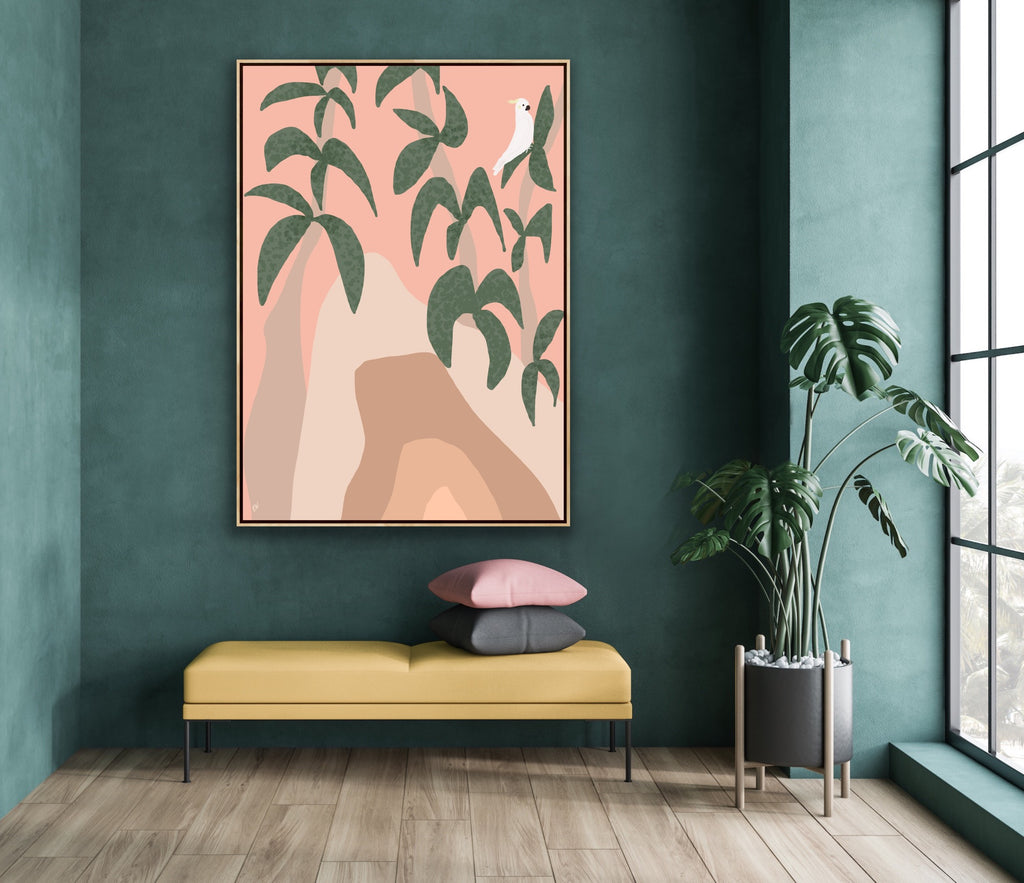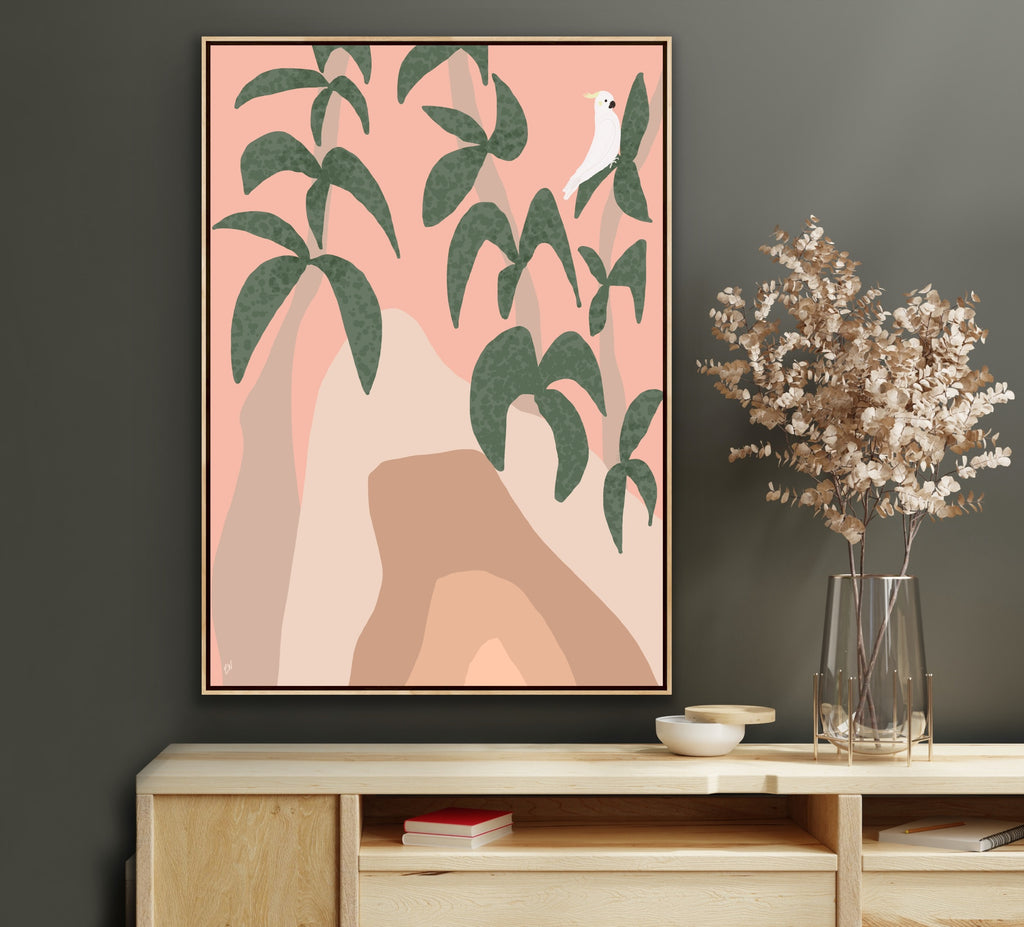 Float framed in premium 1cm wide x 5.5cm deep Tasmanian Oak, Matte White or Matte Black Frame, with a 5mm ‘shadow’ line between frame and canvas. Ready to hang.