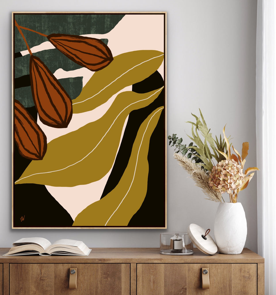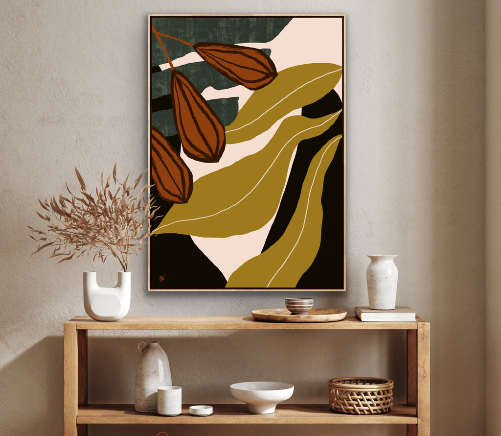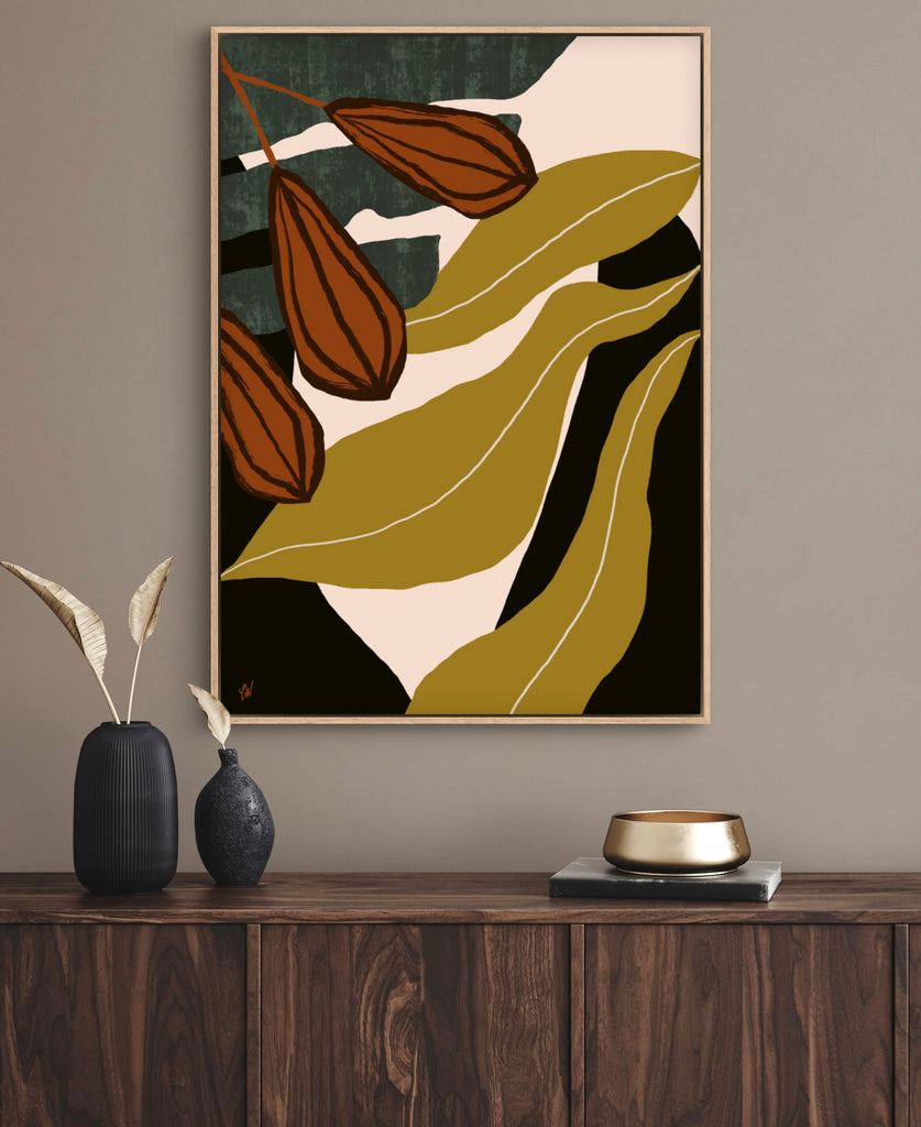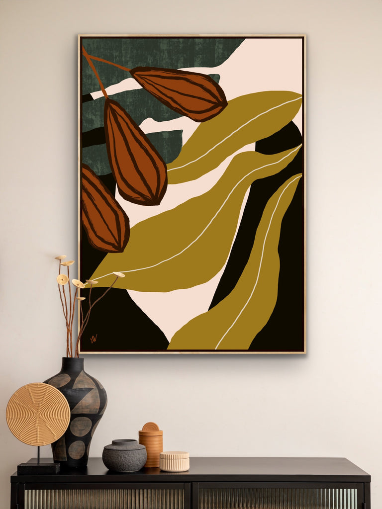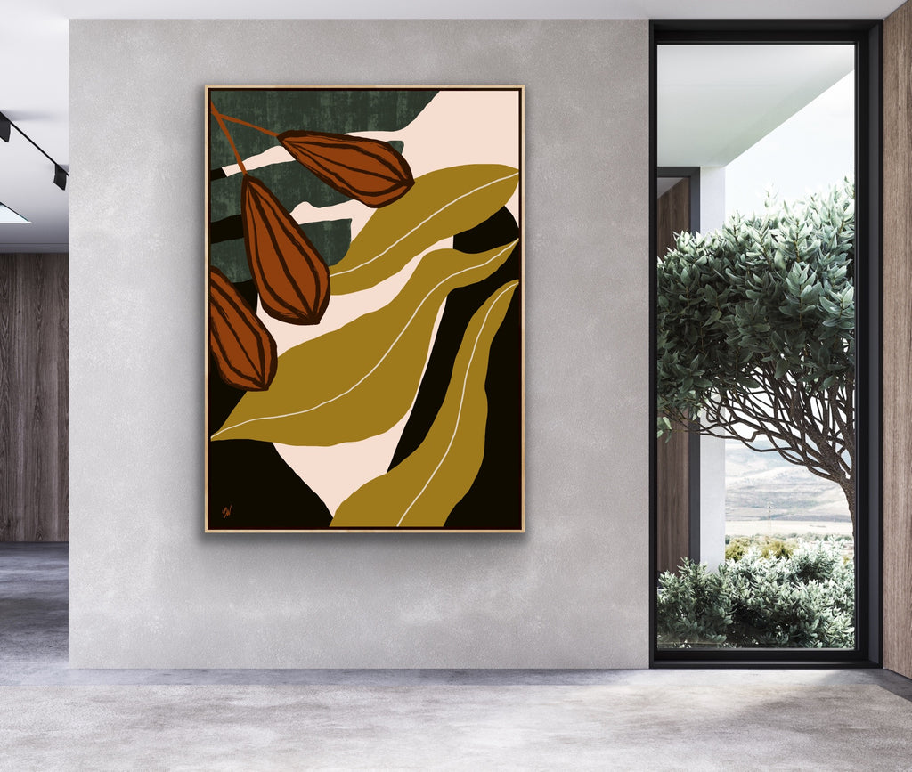 Float framed in premium 1cm wide x 5.5cm deep Tasmanian Oak, Matte White or Matte Black Frame, with a 5mm ‘shadow’ line between frame and canvas. Ready to hang.