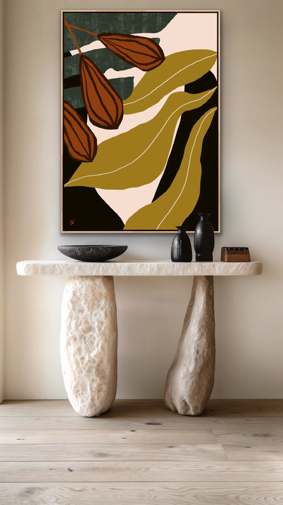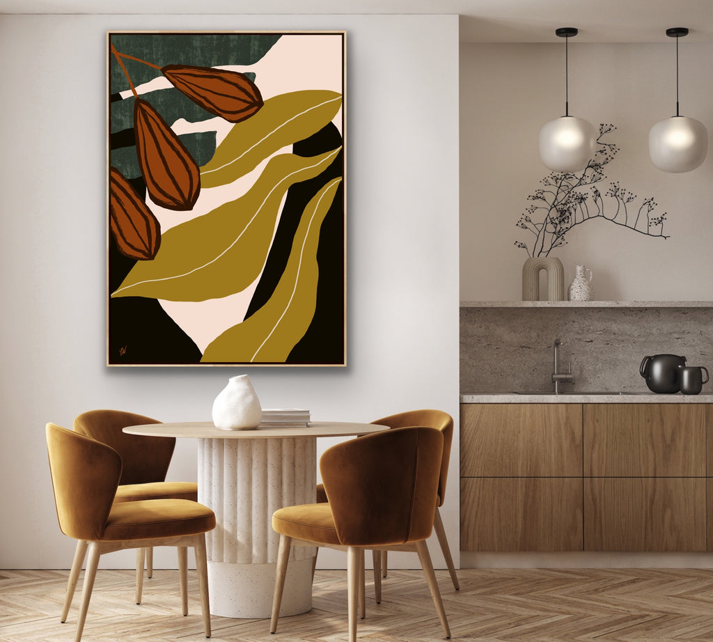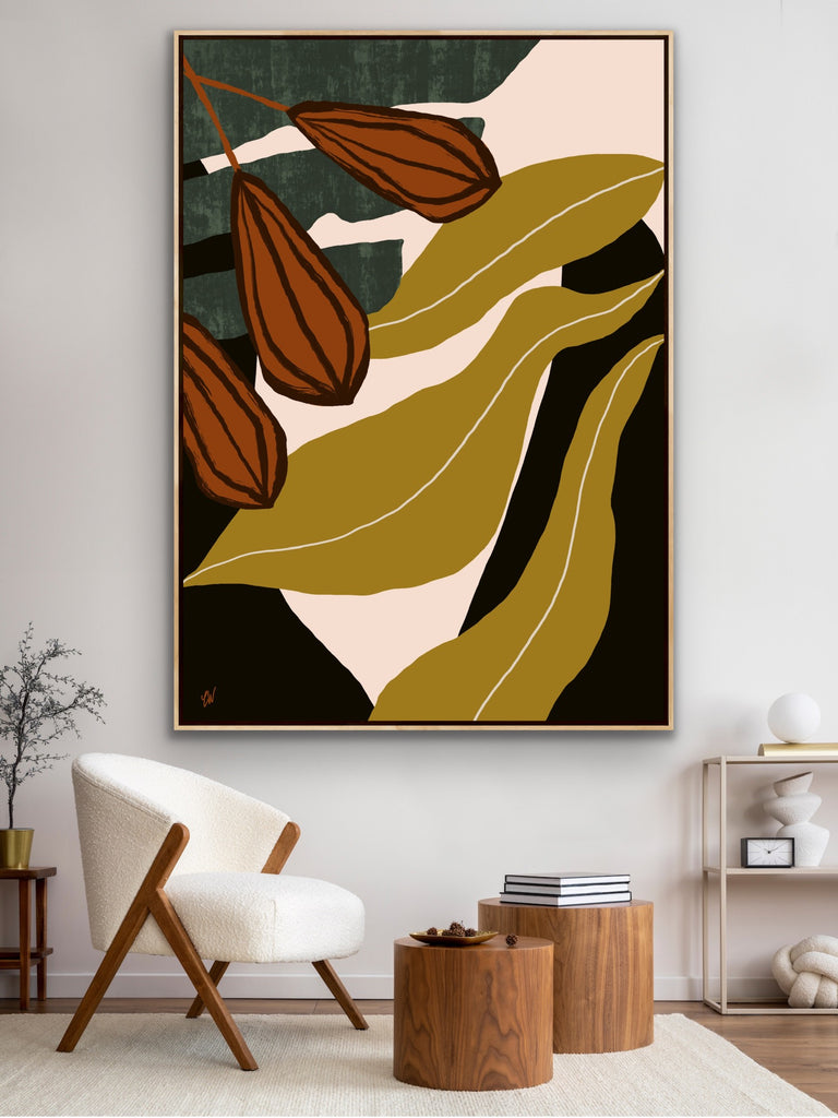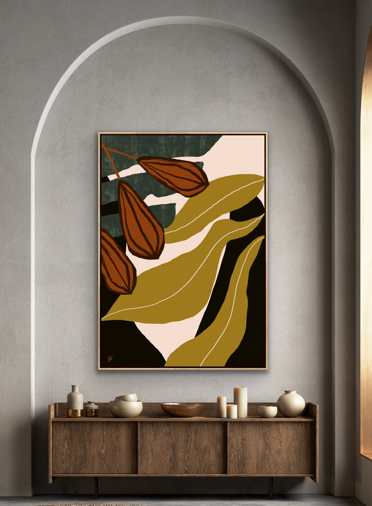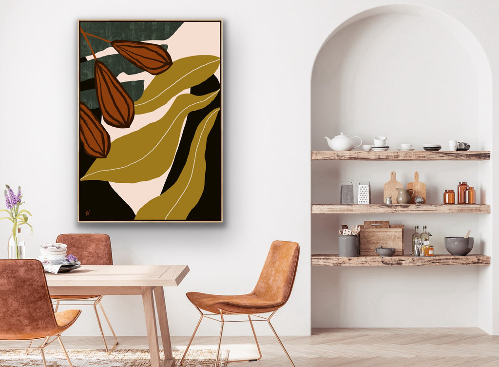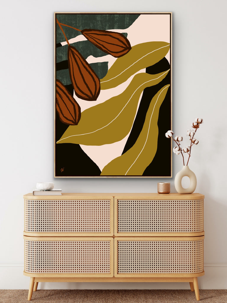 Float framed in premium 1cm wide x 5.5cm deep Tasmanian Oak, Matte White or Matte Black Frame, with a 5mm ‘shadow’ line between frame and canvas. Ready to hang.