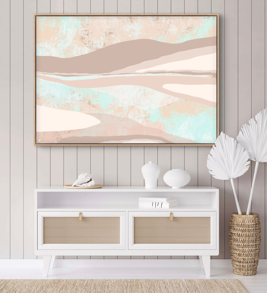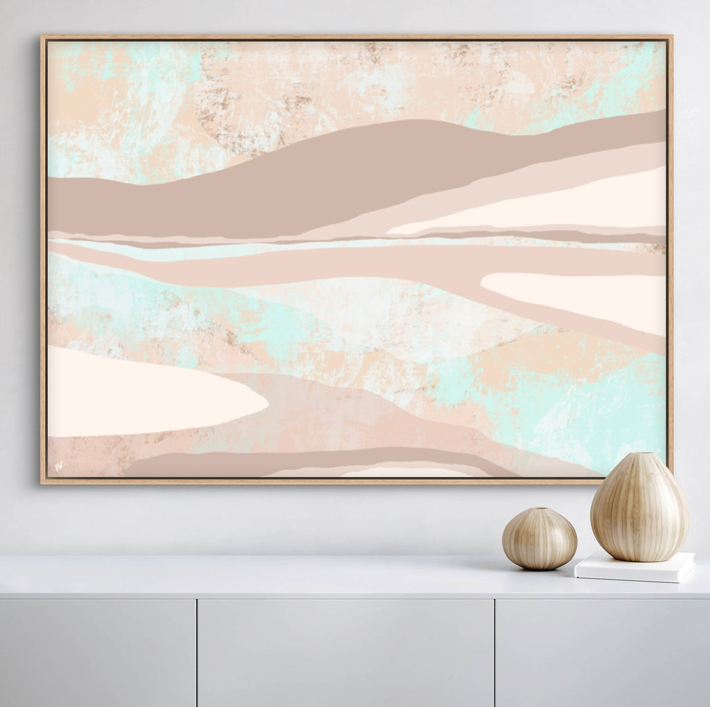 Float framed in premium 1cm wide x 5.5cm deep Tasmanian Oak, Matte White or Matte Black Frame, with a 5mm ‘shadow’ line between frame and canvas. Ready to hang.