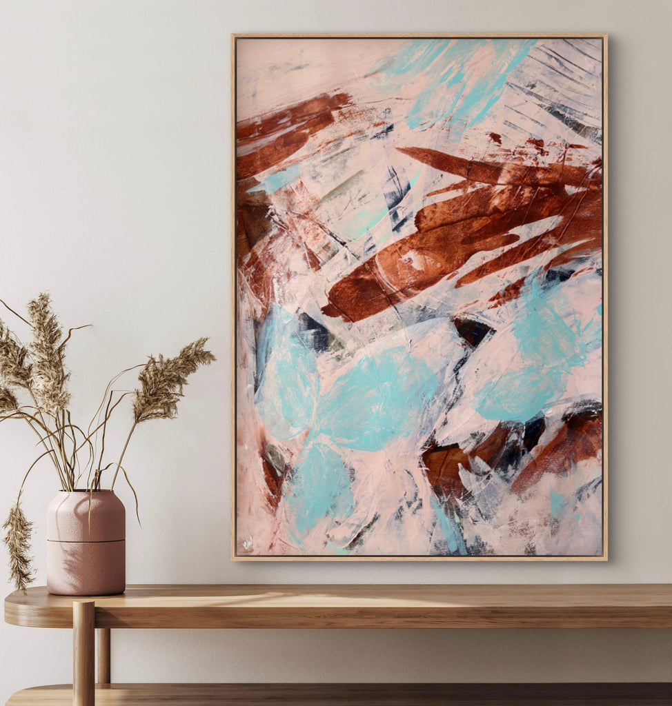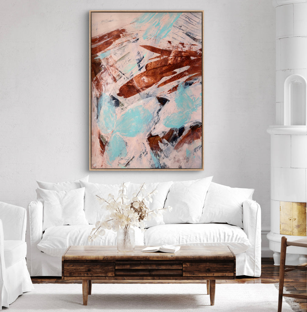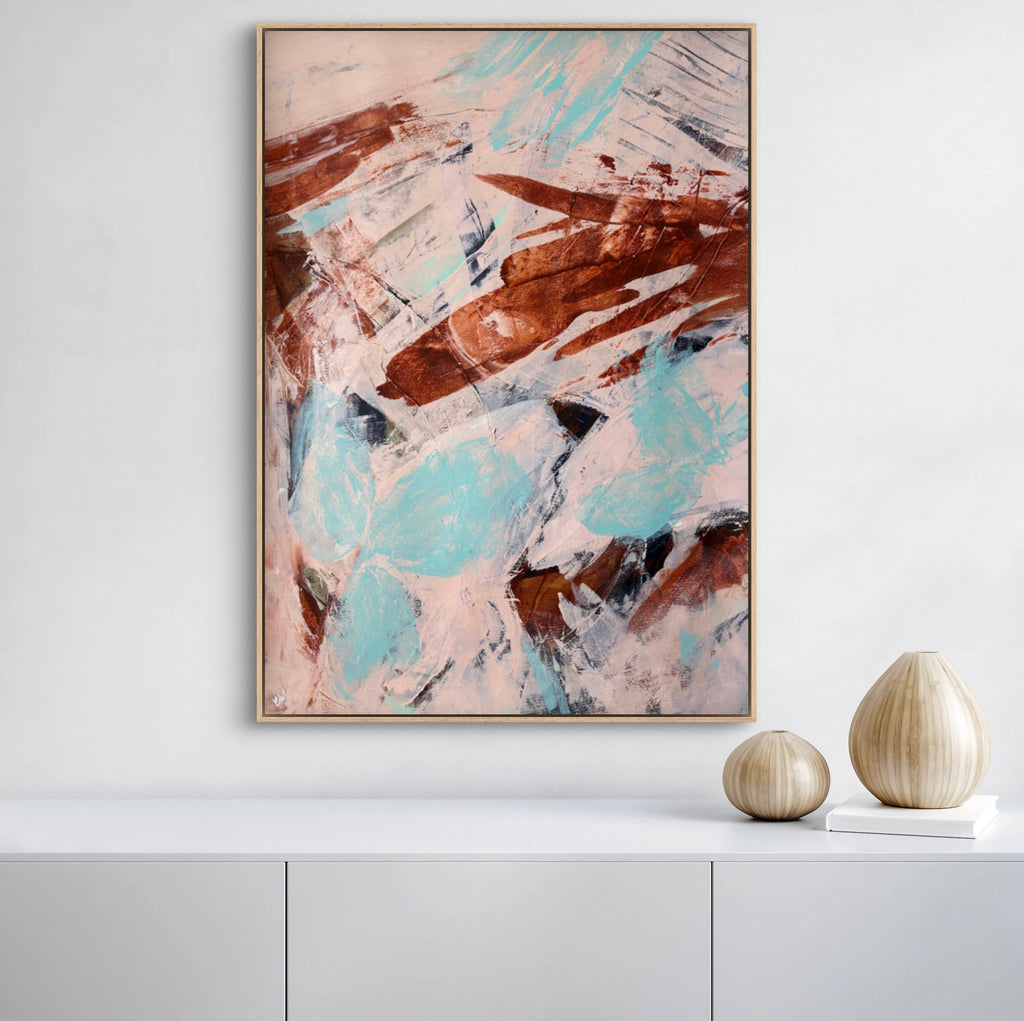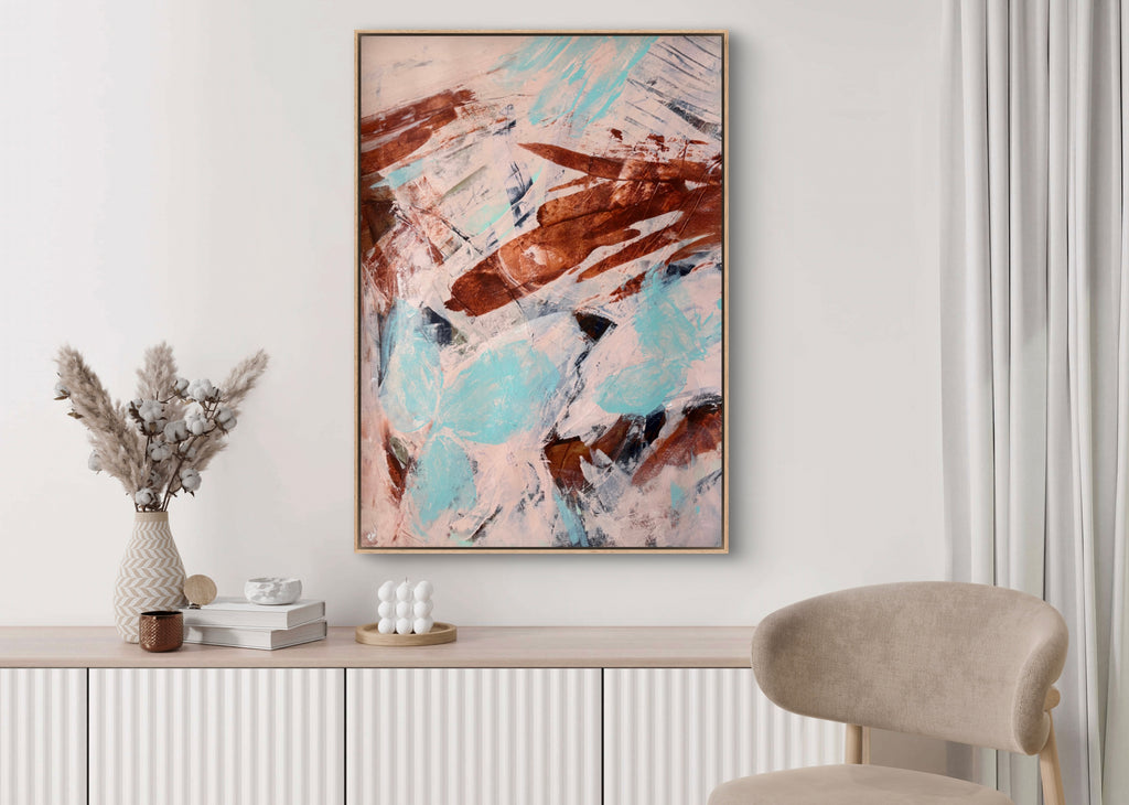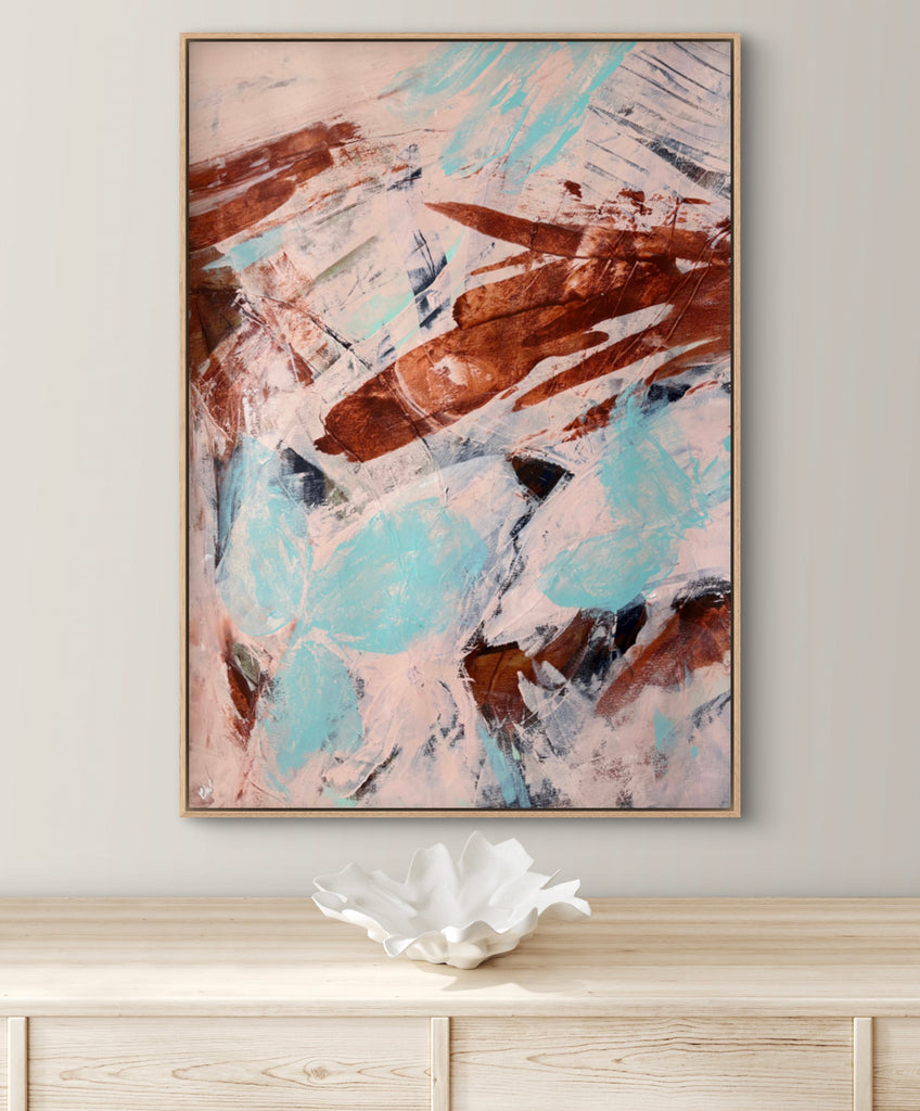 Float framed in premium 1cm wide x 5.5cm deep Tasmanian Oak, Matte White or Matte Black Frame, with a 5mm ‘shadow’ line between frame and canvas. Ready to hang.
