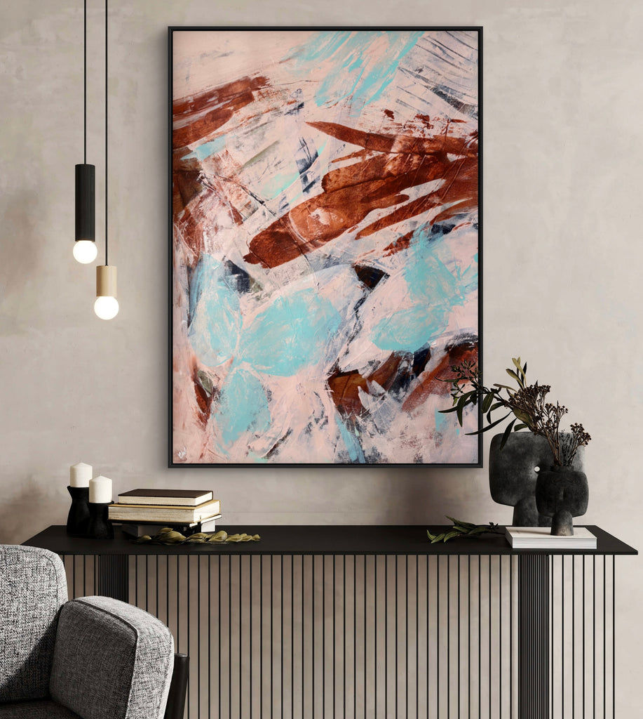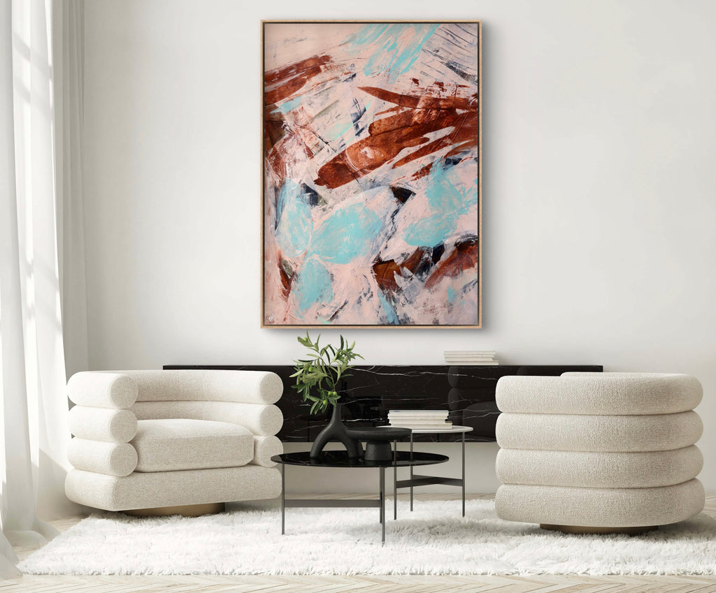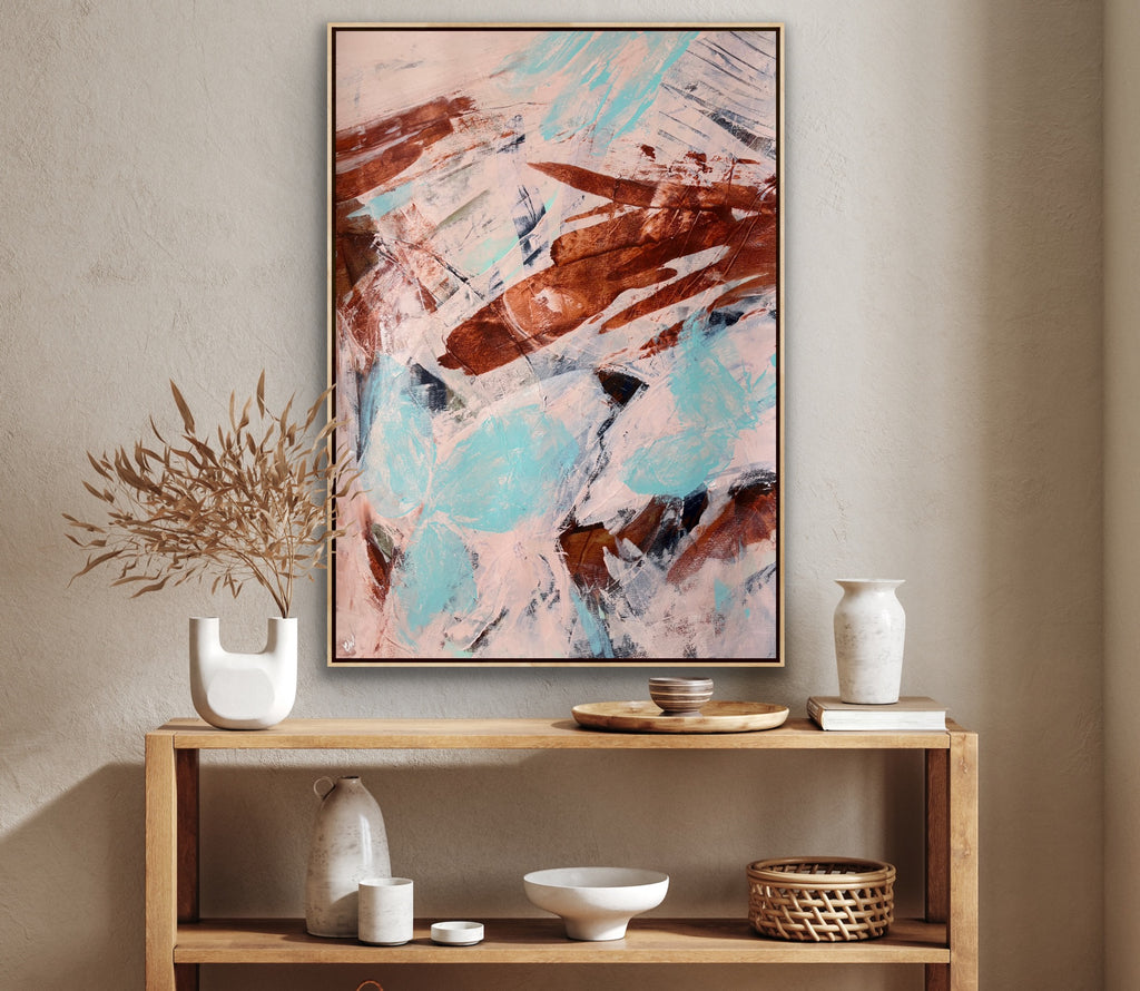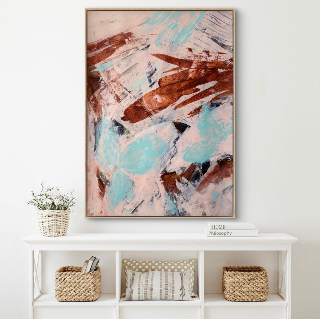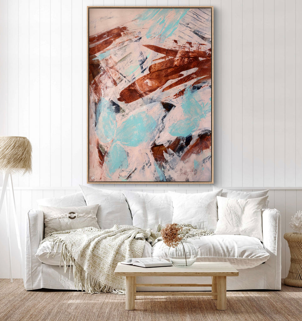 Float framed in premium 1cm wide x 5.5cm deep Tasmanian Oak, Matte White or Matte Black Frame, with a 5mm ‘shadow’ line between frame and canvas. Ready to hang.