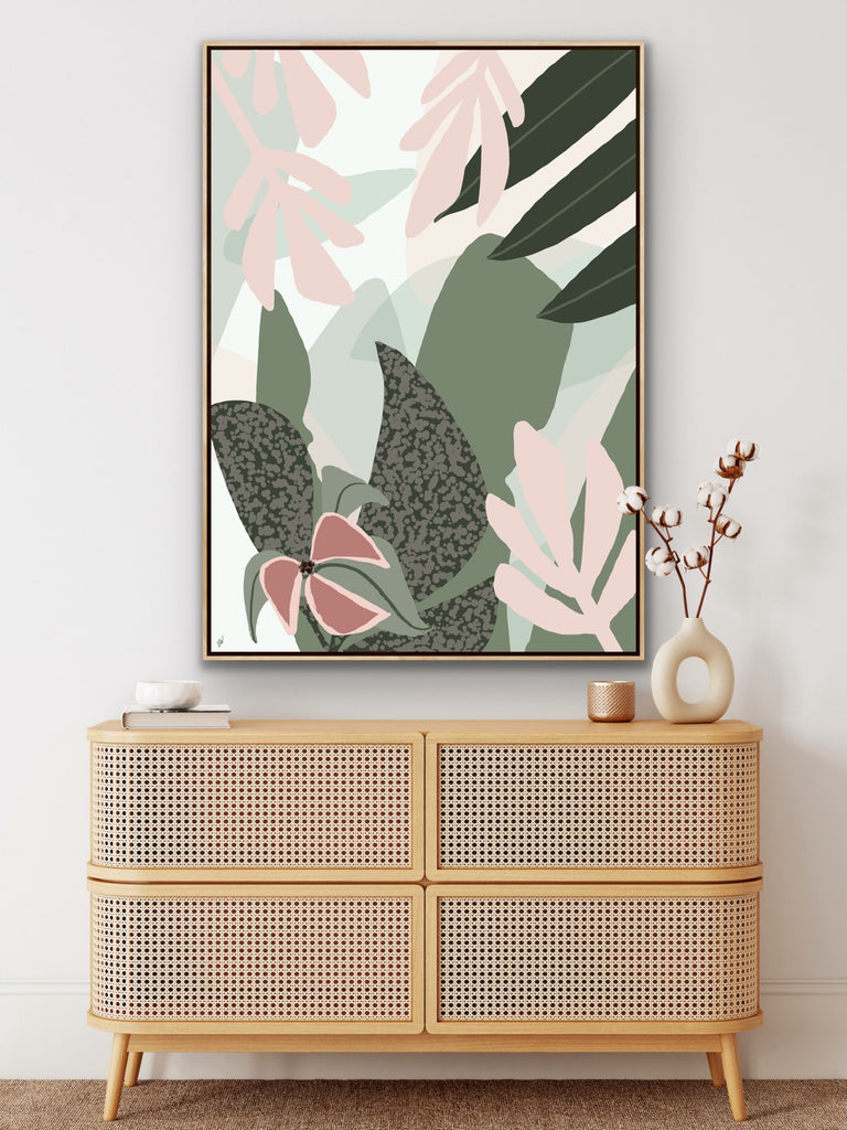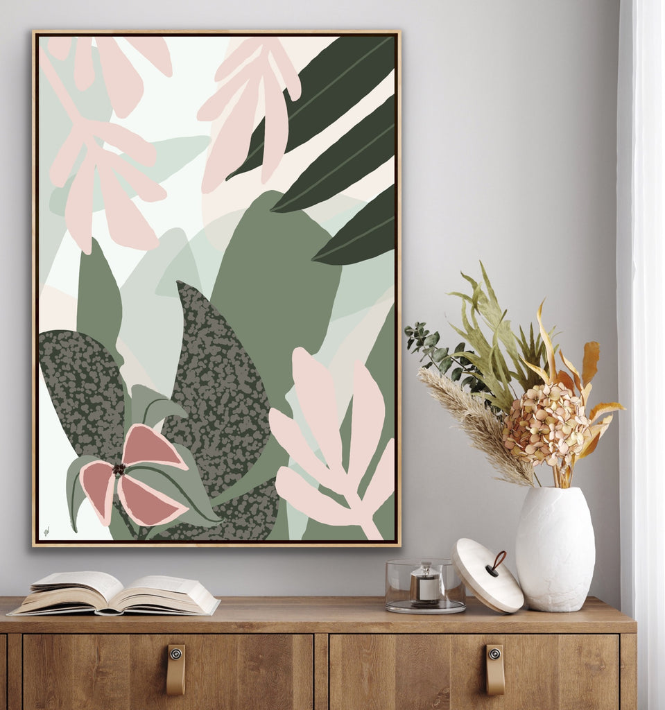 Float framed in premium 1cm wide x 5.5cm deep Tasmanian Oak, Matte White or Matte Black Frame, with a 5mm ‘shadow’ line between frame and canvas. Ready to hang.