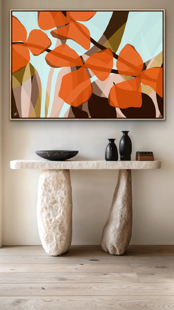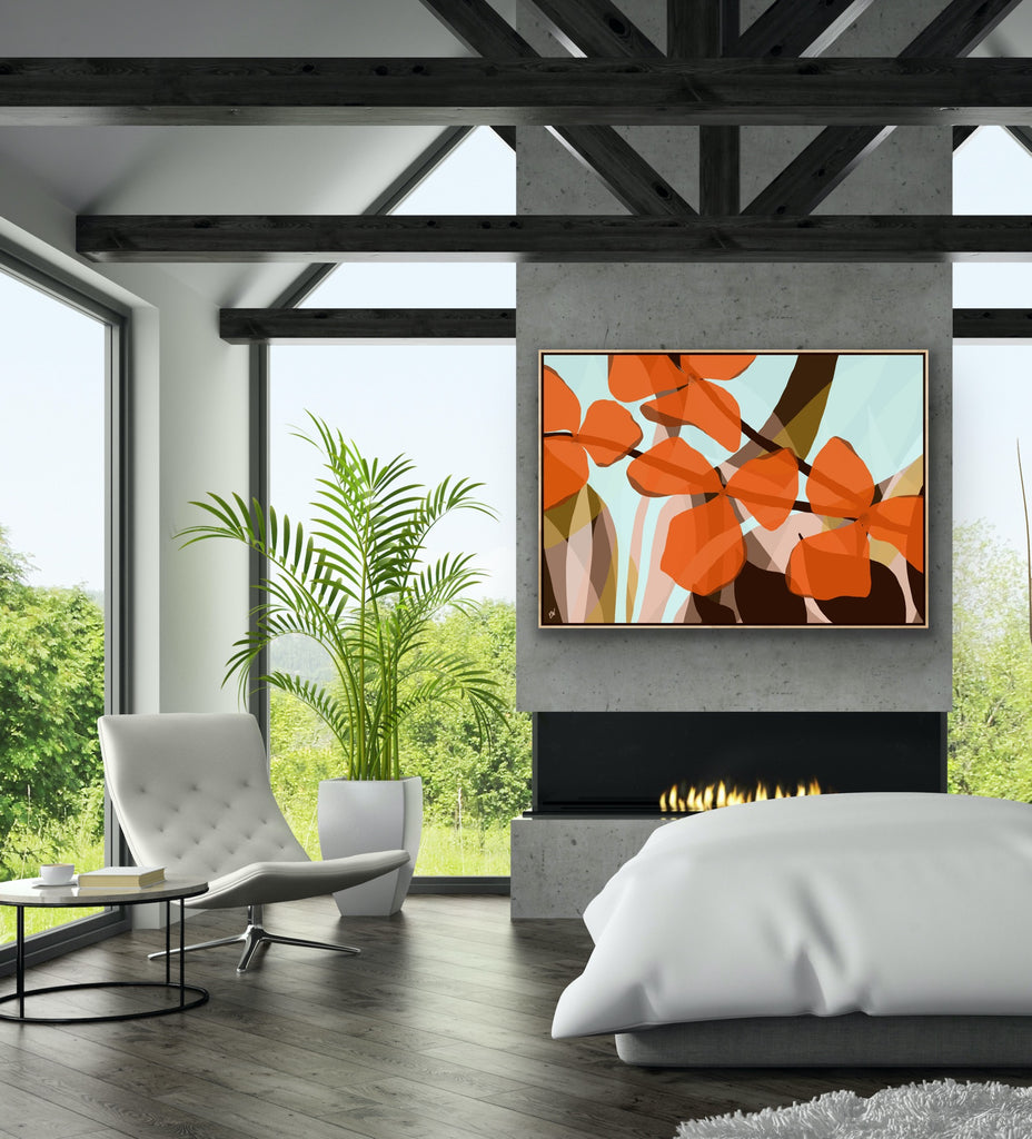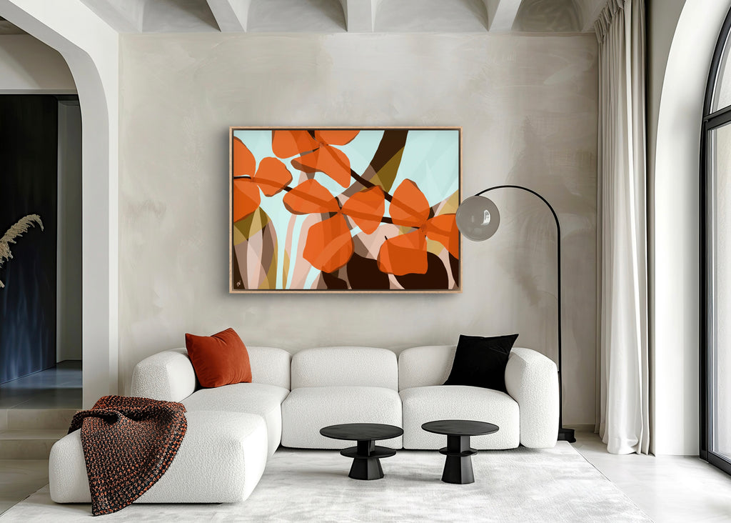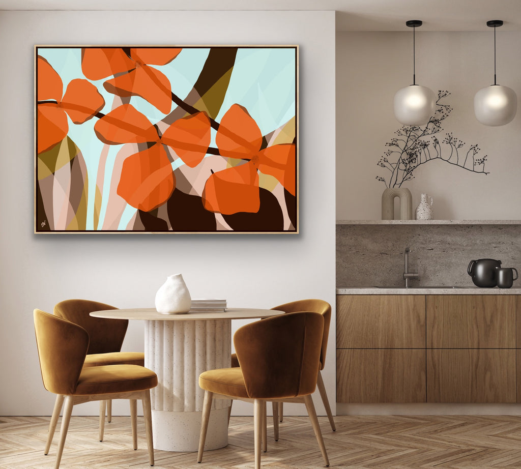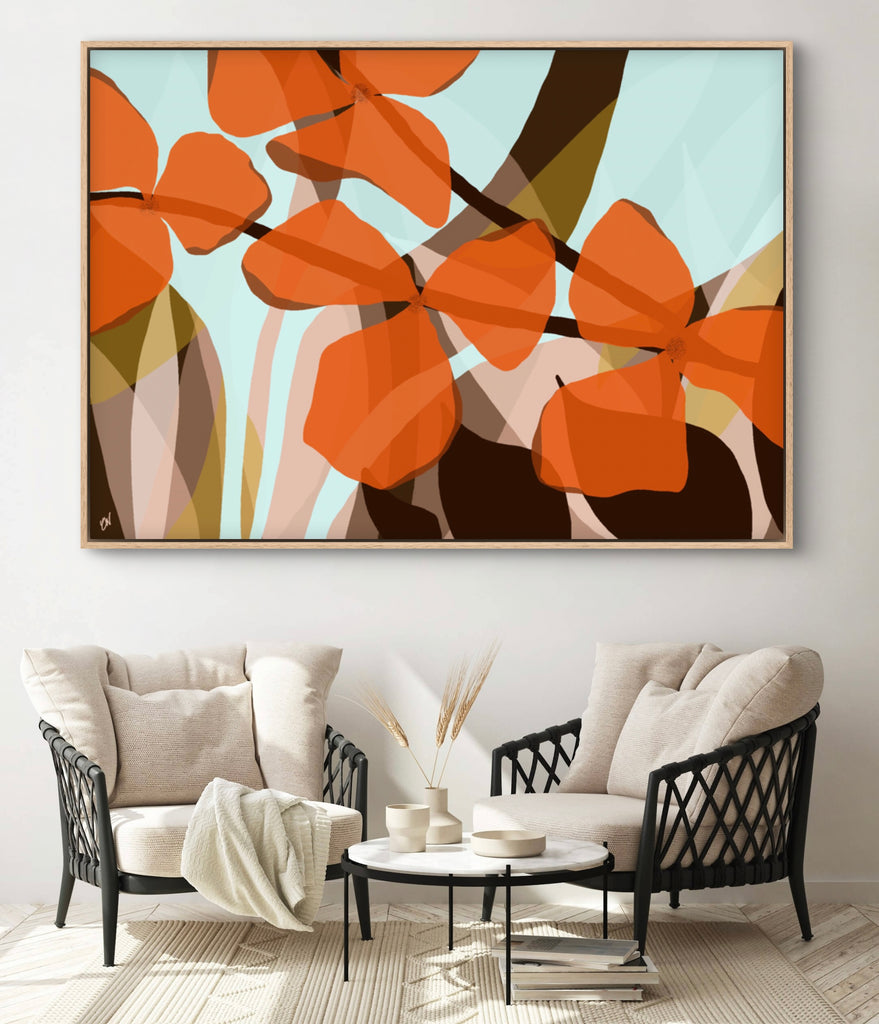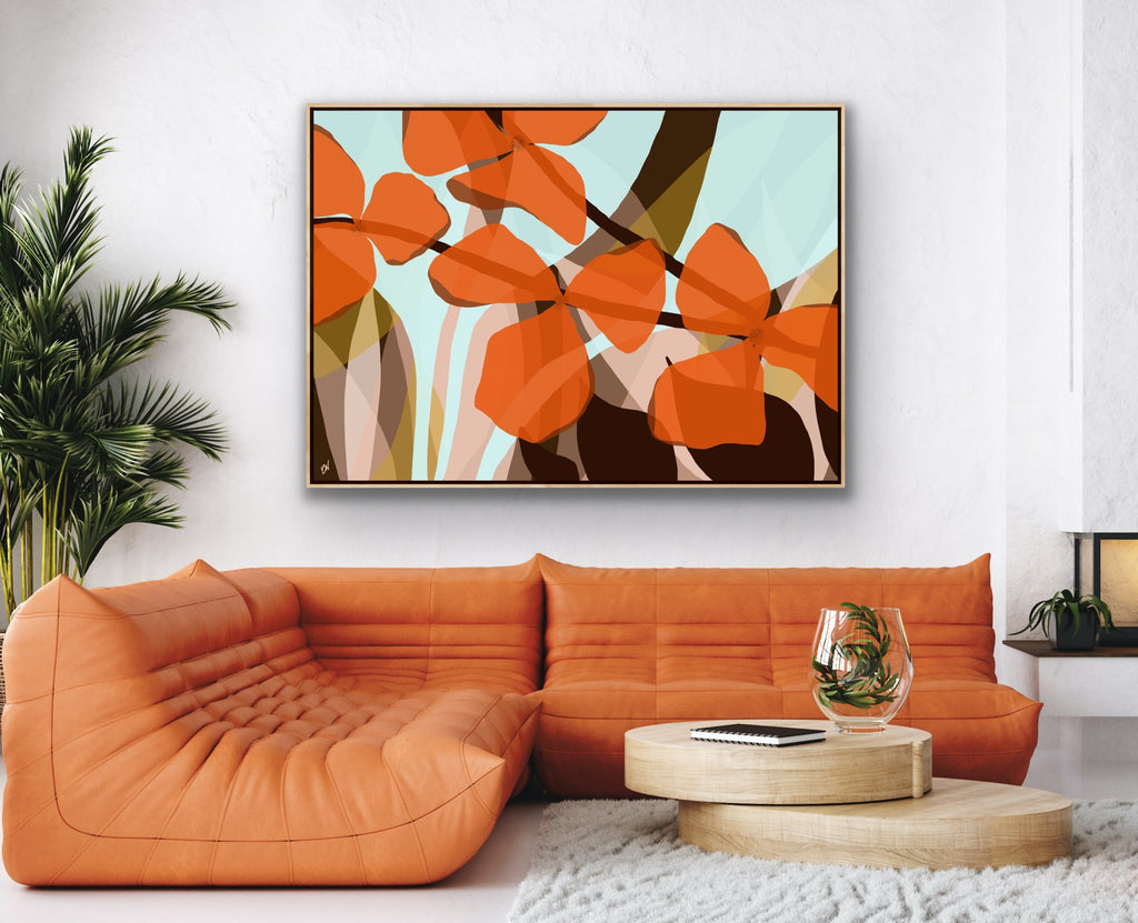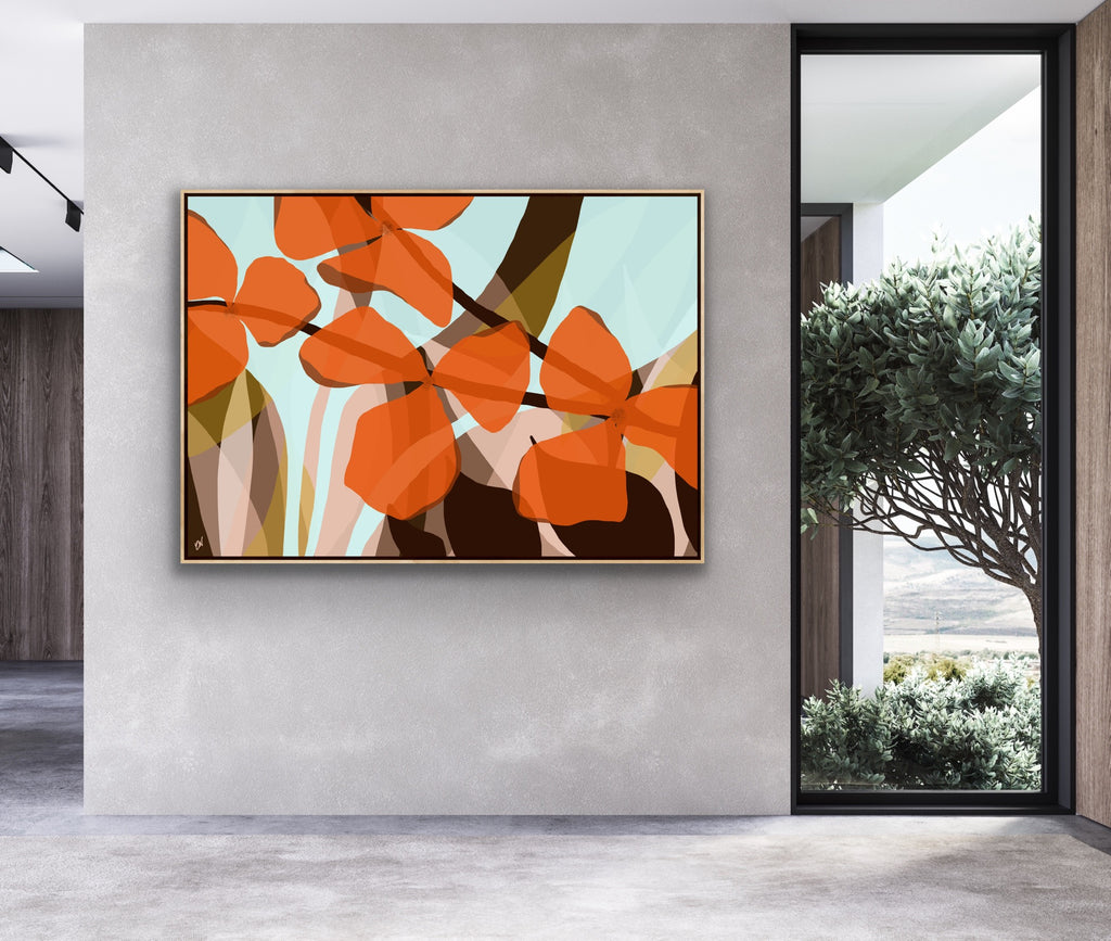 Float framed in premium 1cm wide x 5.5cm deep Tasmanian Oak, Matte White or Matte Black Frame, with a 5mm ‘shadow’ line between frame and canvas. Ready to hang.
