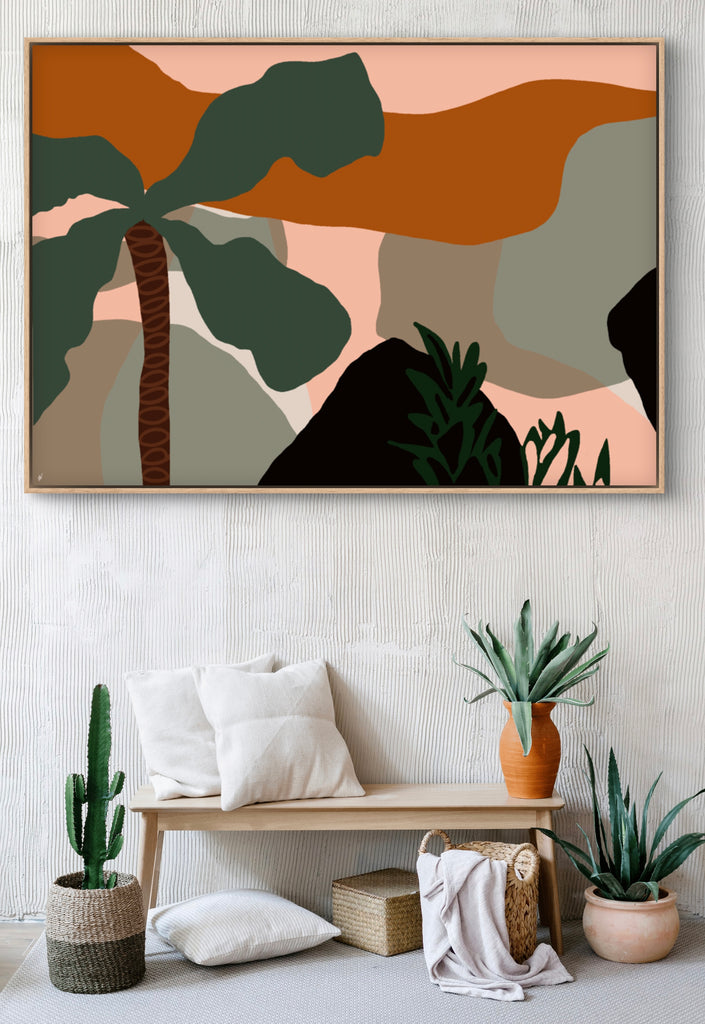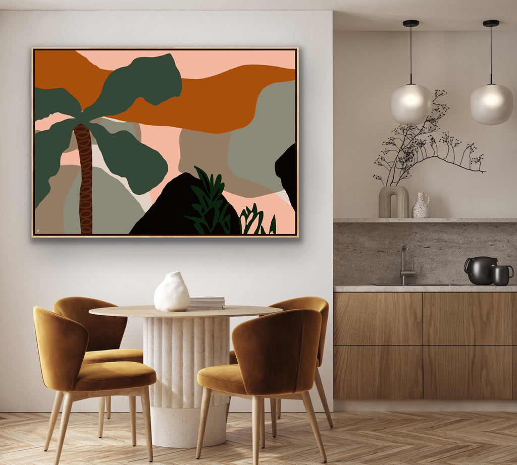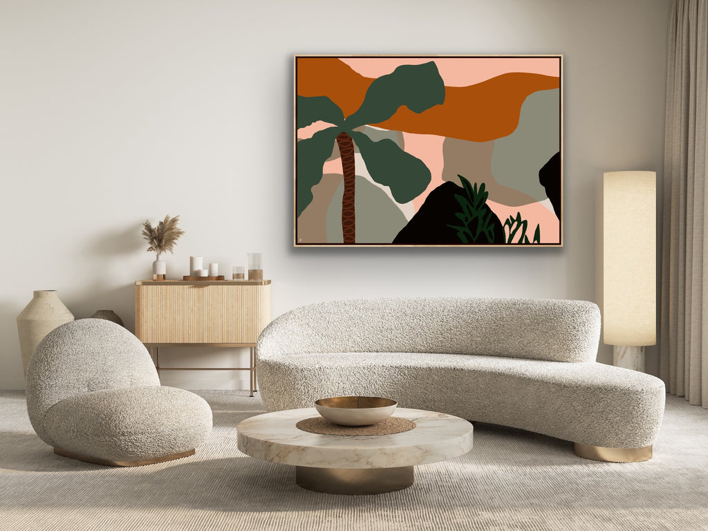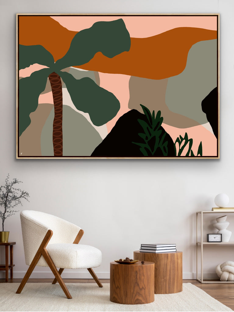 Float framed in premium 1cm wide x 5.5cm deep Tasmanian Oak, Matte White or Matte Black Frame, with a 5mm ‘shadow’ line between frame and canvas. Ready to hang.