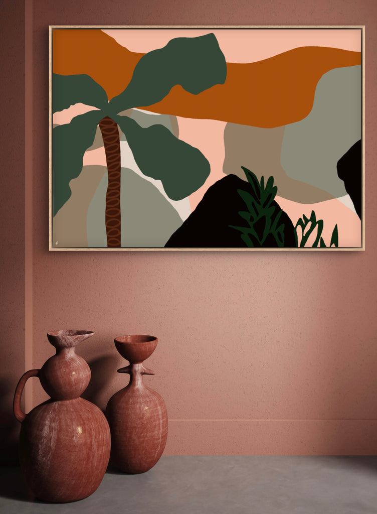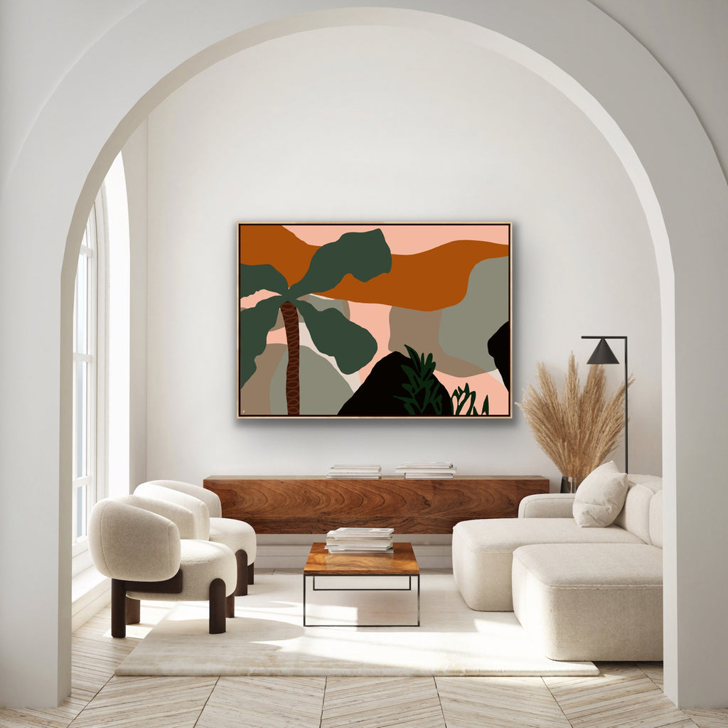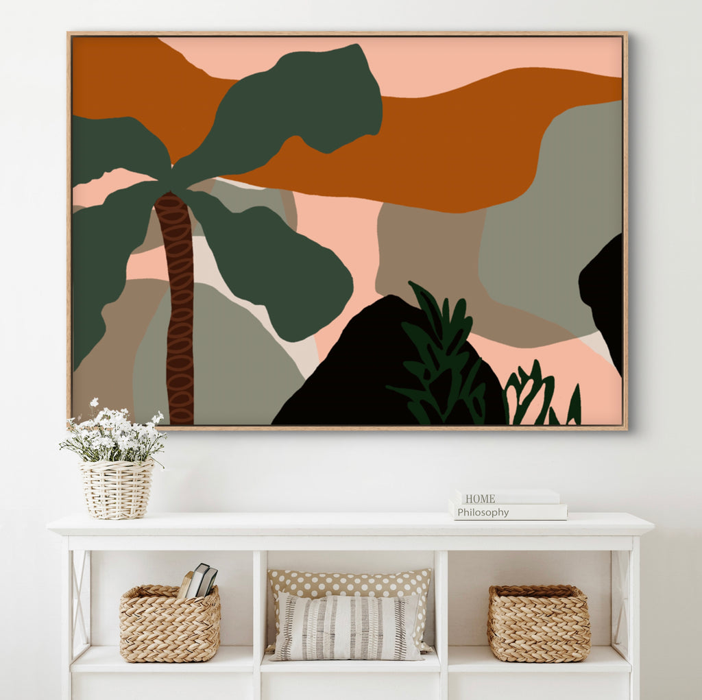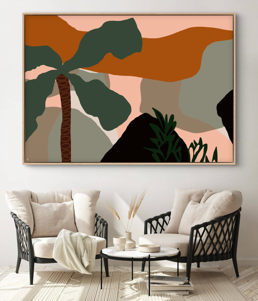 Float framed in premium 1cm wide x 5.5cm deep Tasmanian Oak, Matte White or Matte Black Frame, with a 5mm ‘shadow’ line between frame and canvas. Ready to hang.