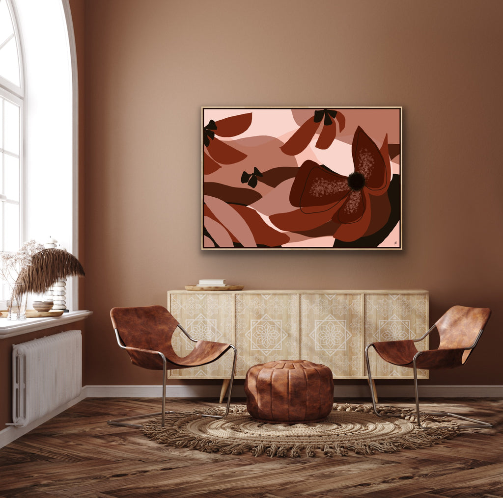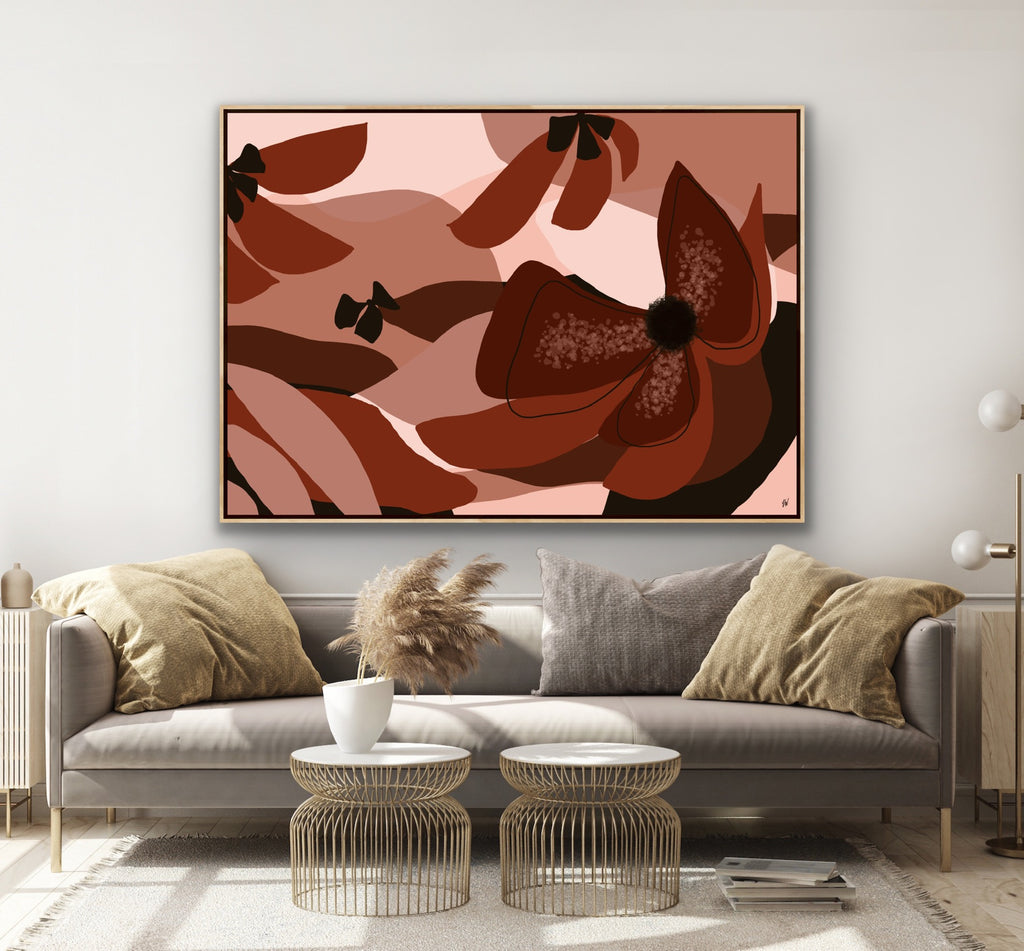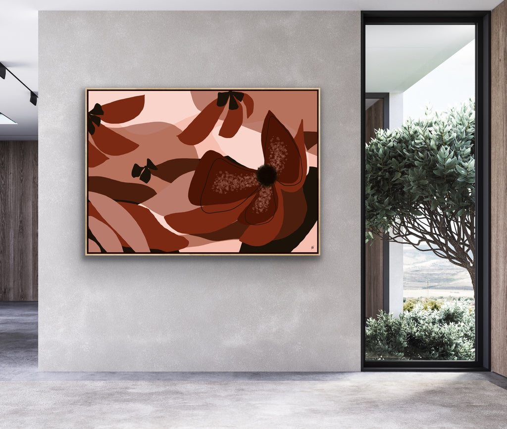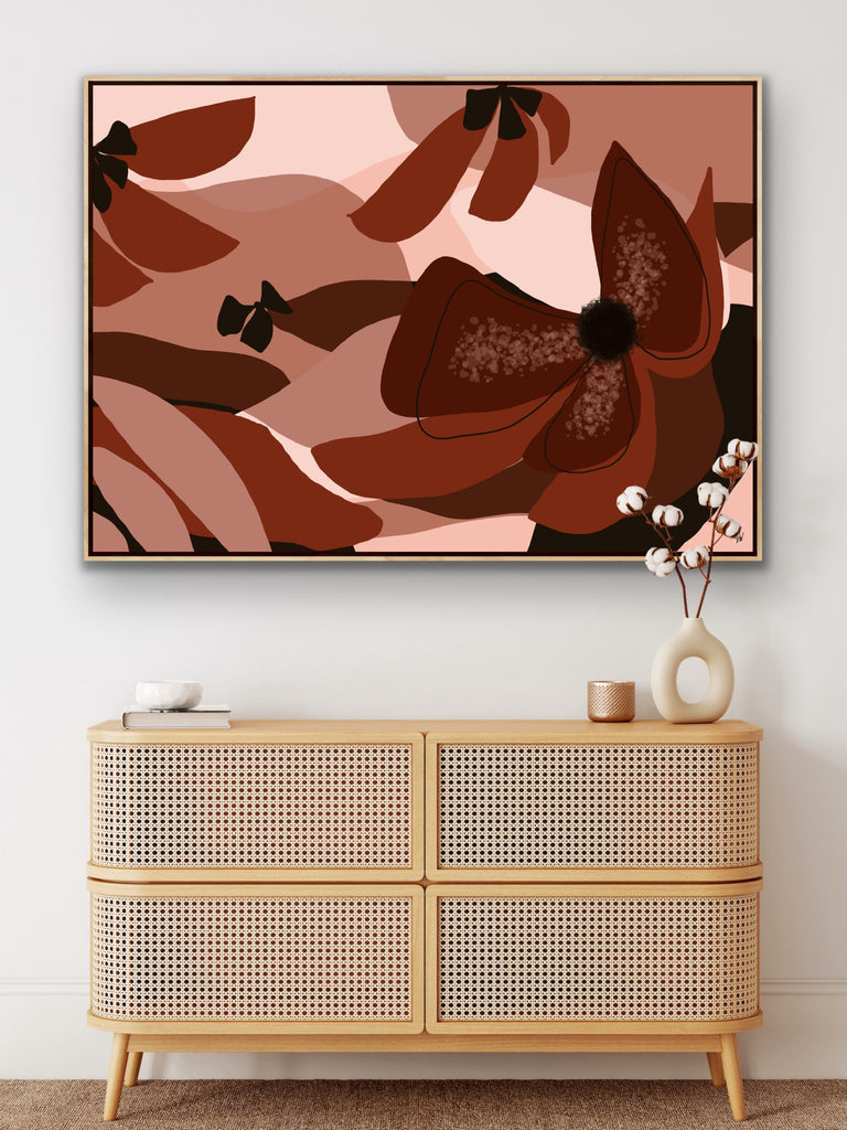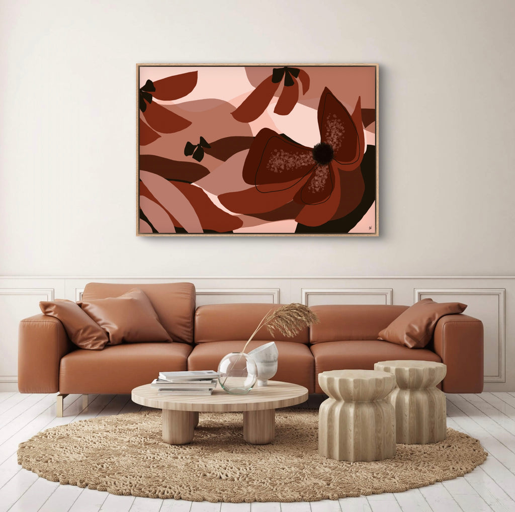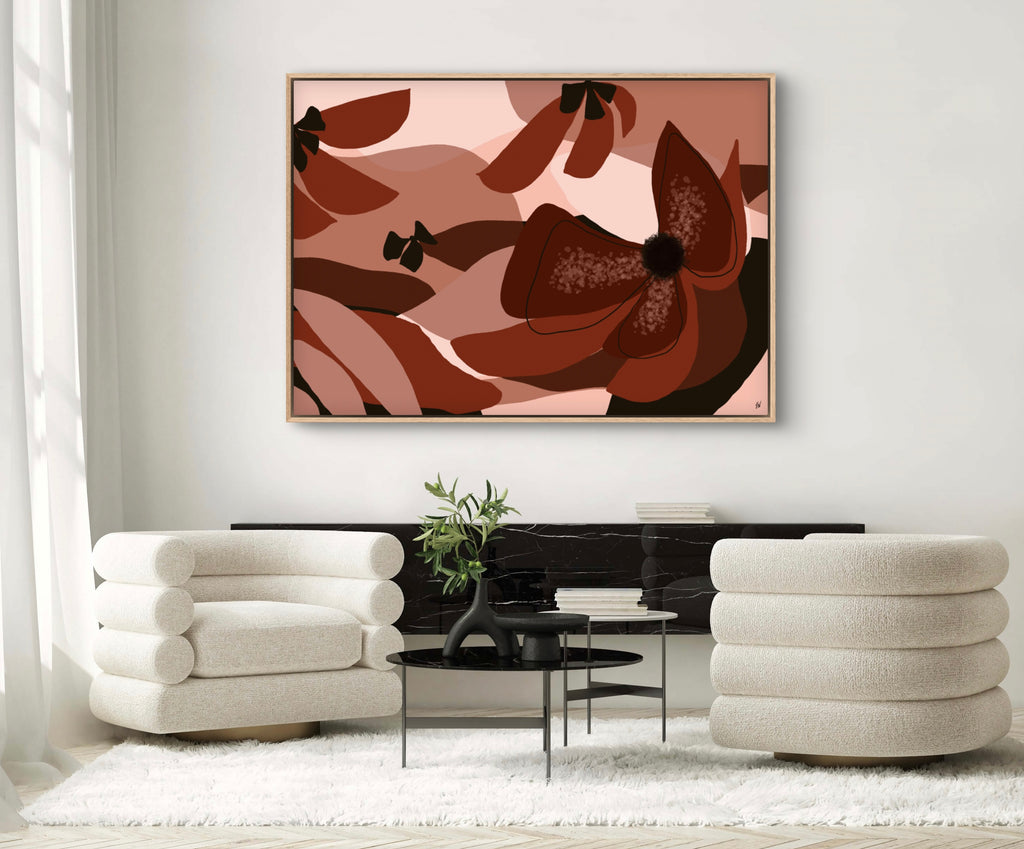 Float framed in premium 1cm wide x 5.5cm deep Tasmanian Oak, Matte White or Matte Black Frame, with a 5mm ‘shadow’ line between frame and canvas. Ready to hang.
