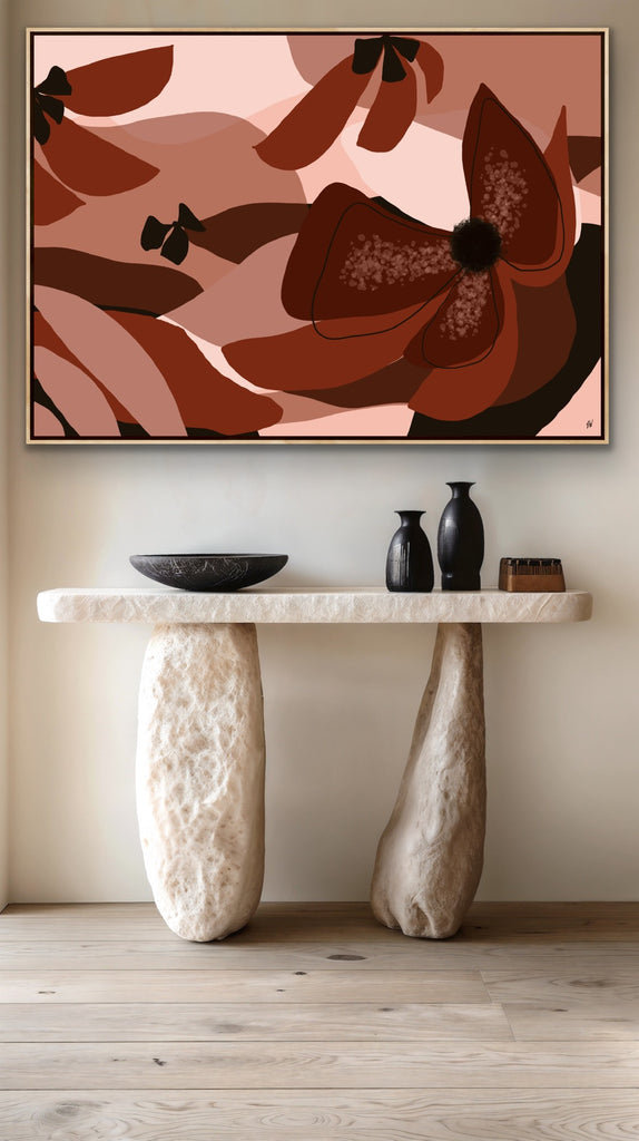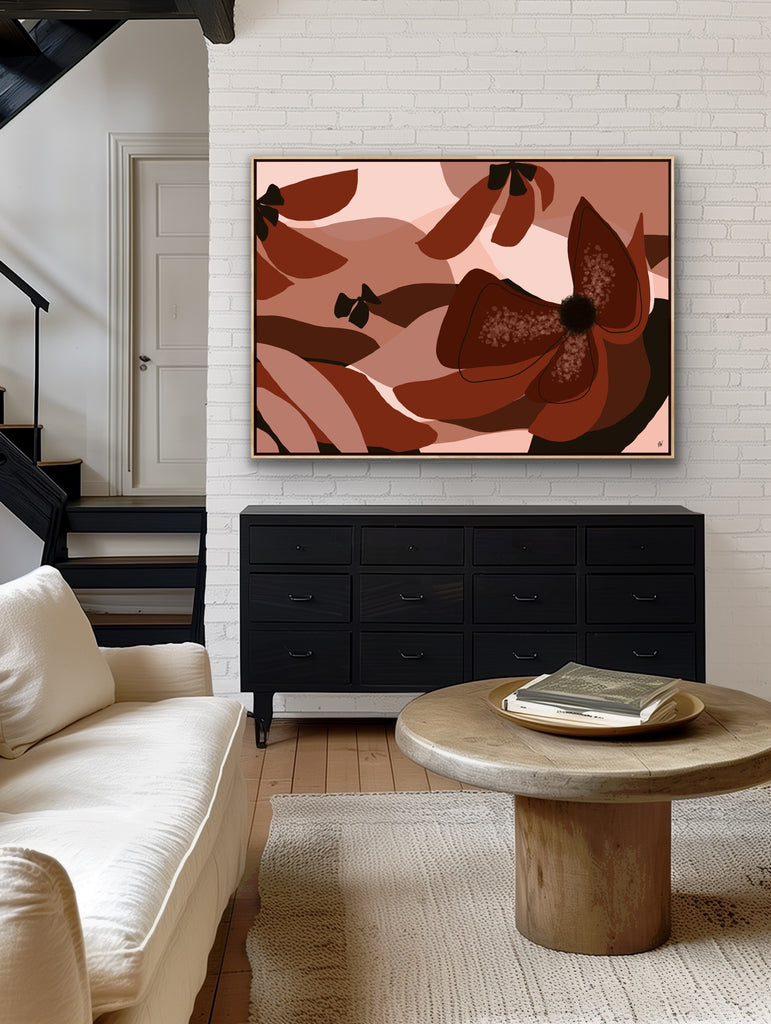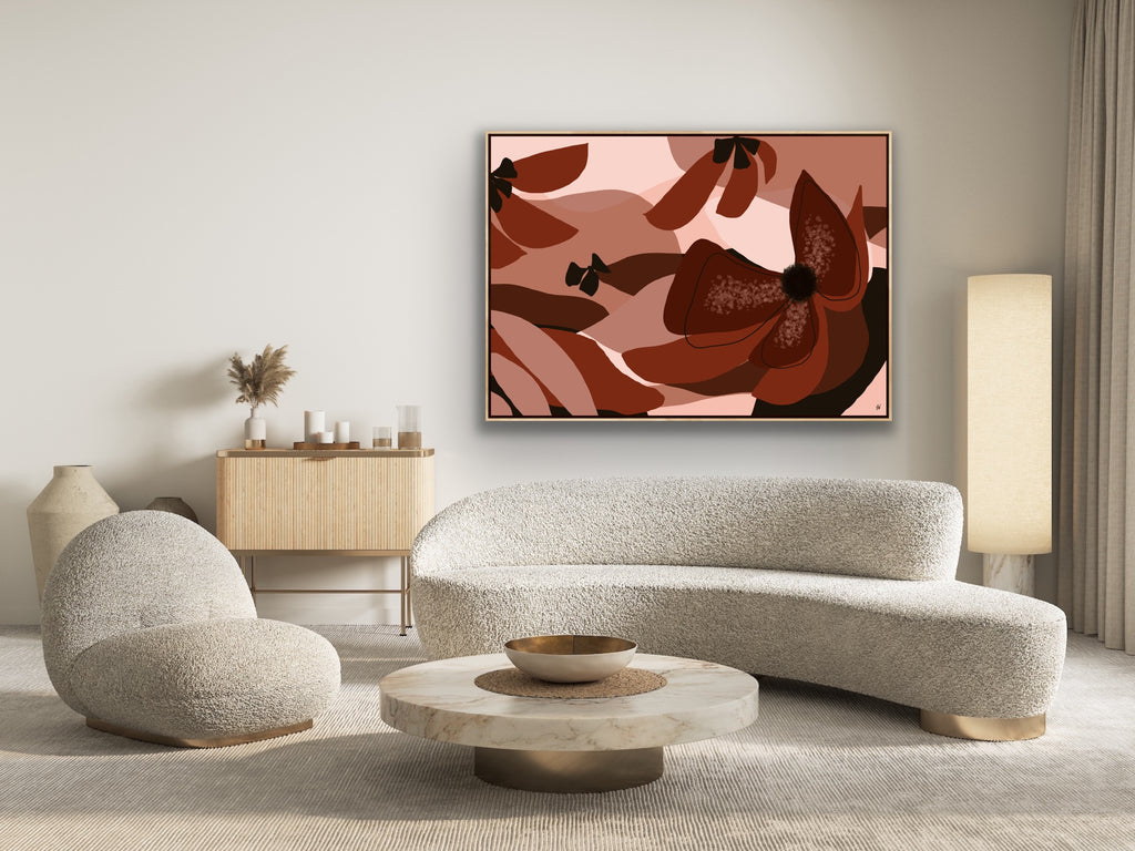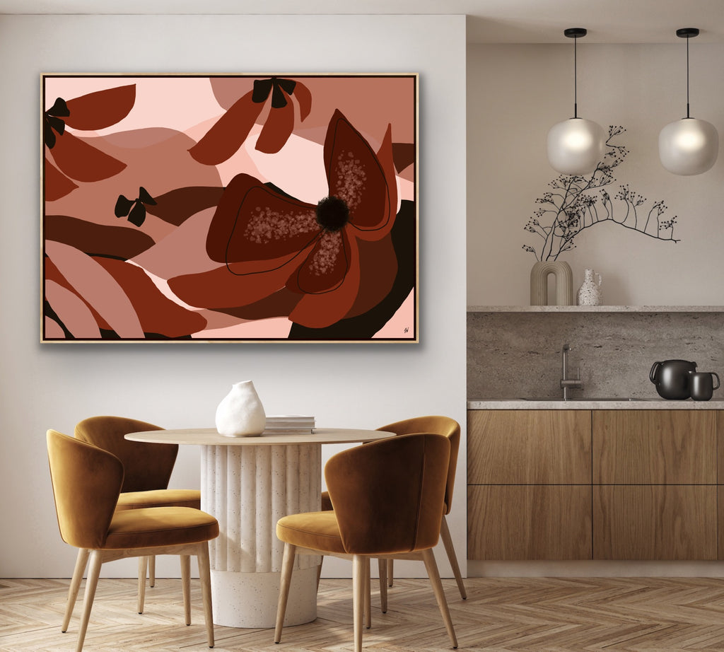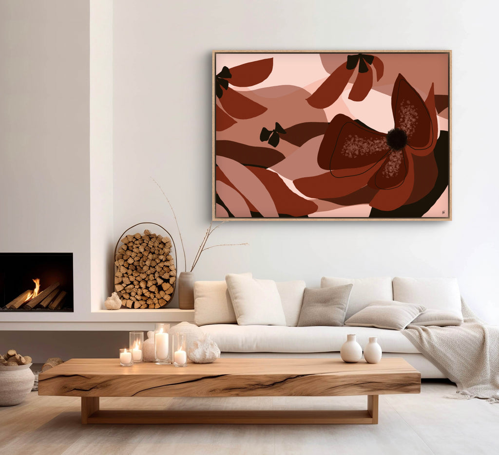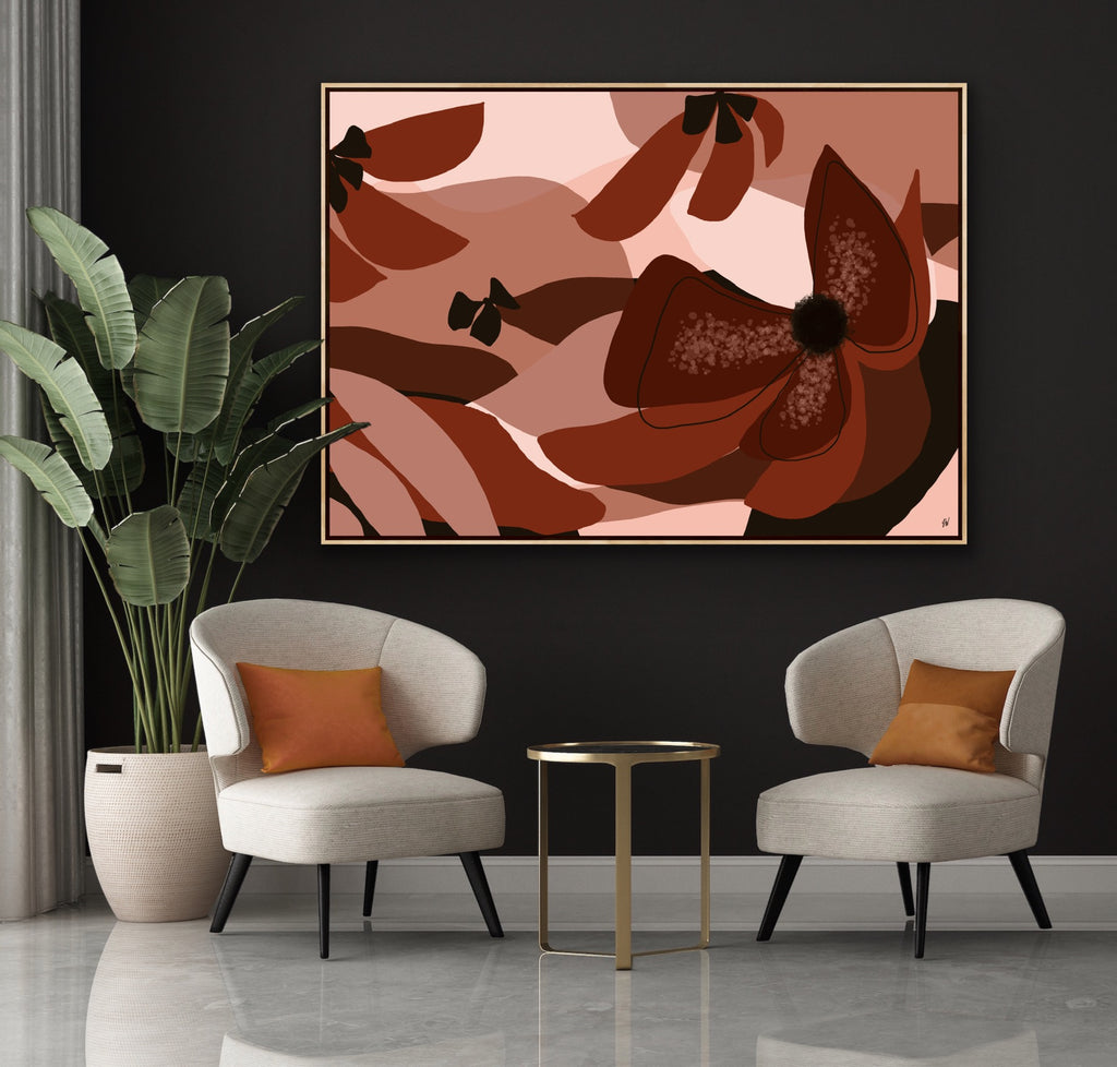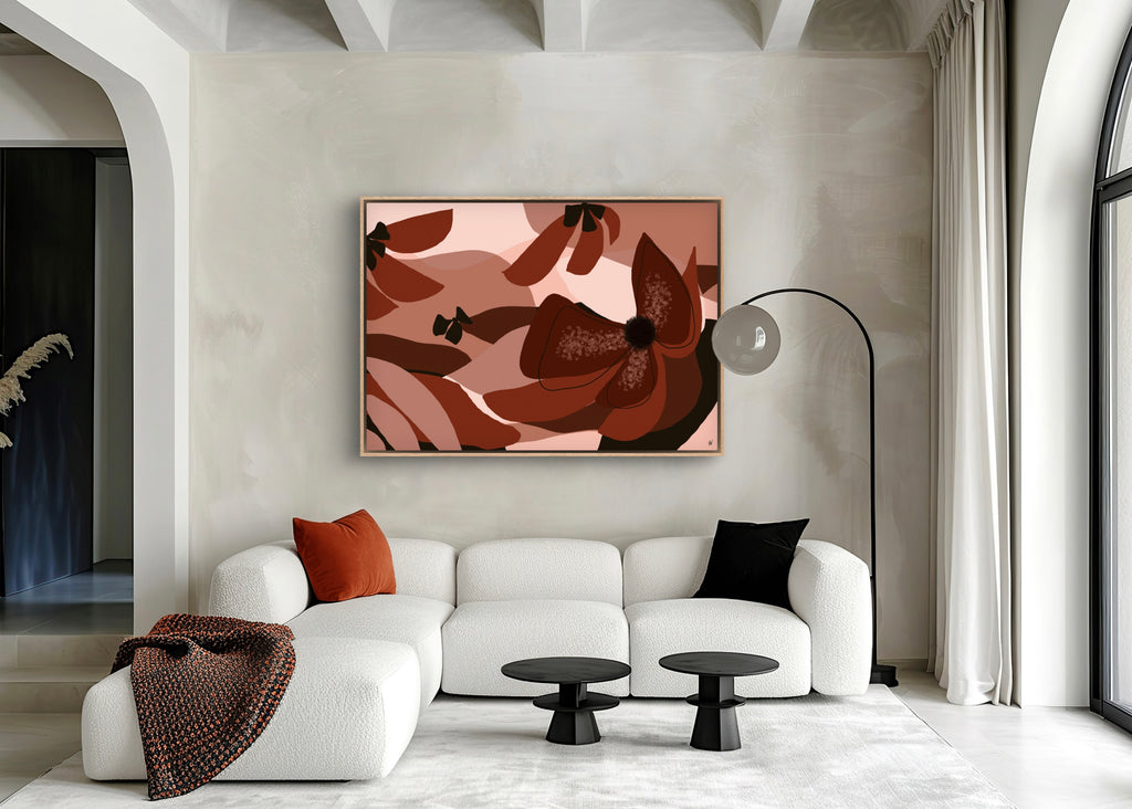 Float framed in premium 1cm wide x 5.5cm deep Tasmanian Oak, Matte White or Matte Black Frame, with a 5mm ‘shadow’ line between frame and canvas. Ready to hang.