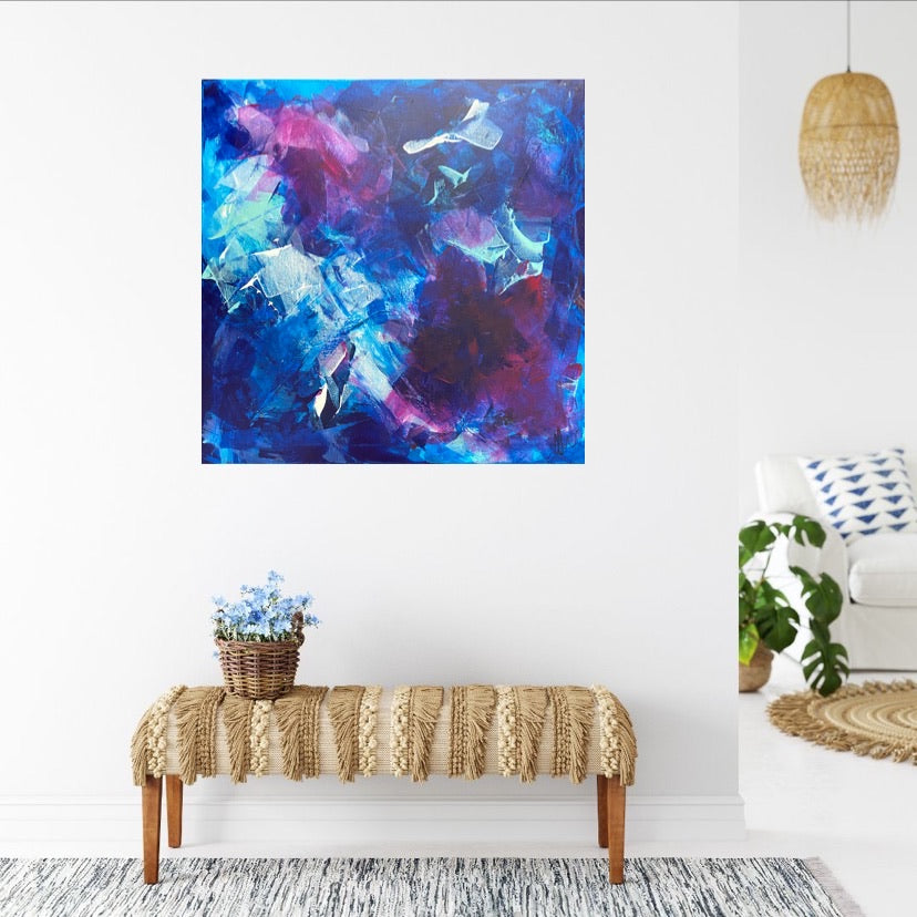 A Beautiful Mess is organised chaos that turns into something beautiful. A wonderful colourful addition to any home. 50.8 x 50.8 x 2cm. Acrylic on canvas, ready to hang. No returns on original artworks so please choose carefully.