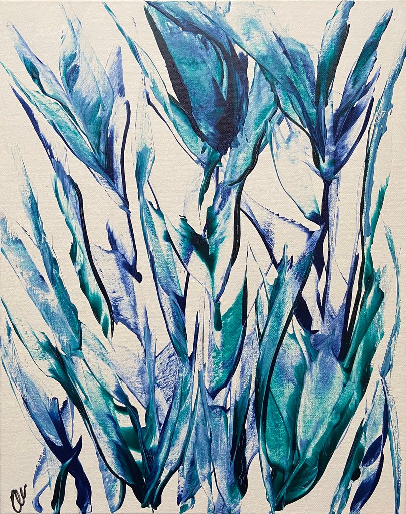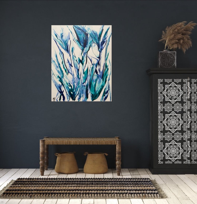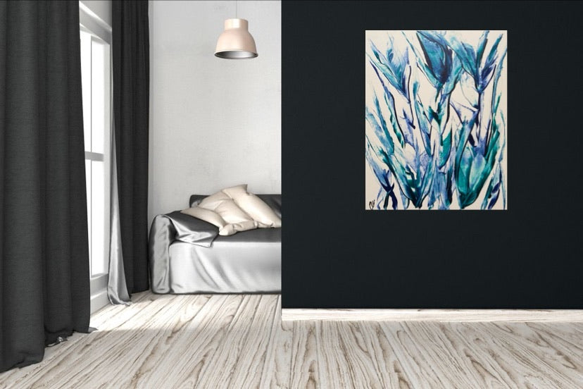 Aquamarine Dream is a beautiful tranquil piece that would suit any room in your home. 50.8 x 40.6 x 2 cm. Acrylic on canvas, ready to hang. No returns on original artworks so please choose carefully.