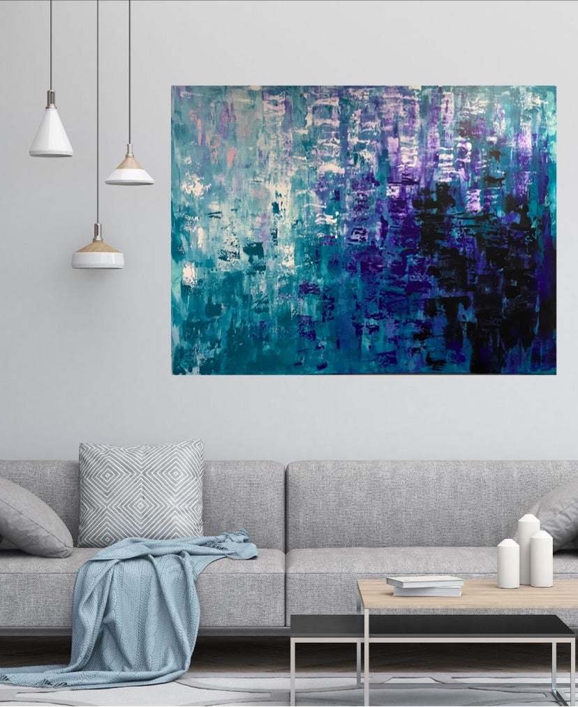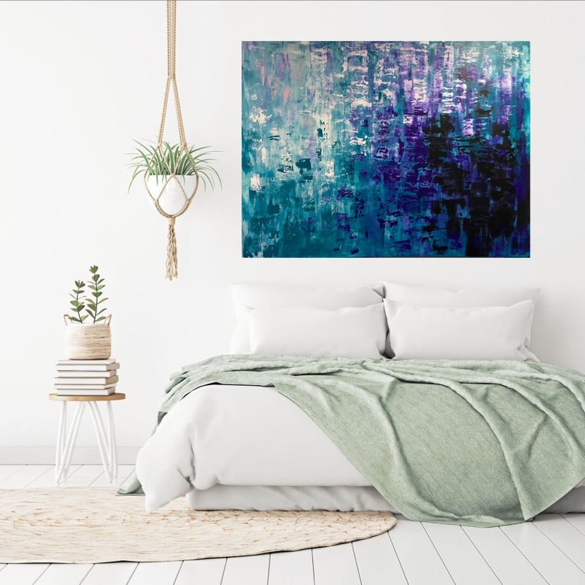 Arise is an acrylic painting that has beautiful colour variation, light to dark. This piece will look great in any room in your home. 121.9 x 91.4 x 2 cm. Acrylic on canvas, ready to hang. No returns on original artworks so please choose carefully.