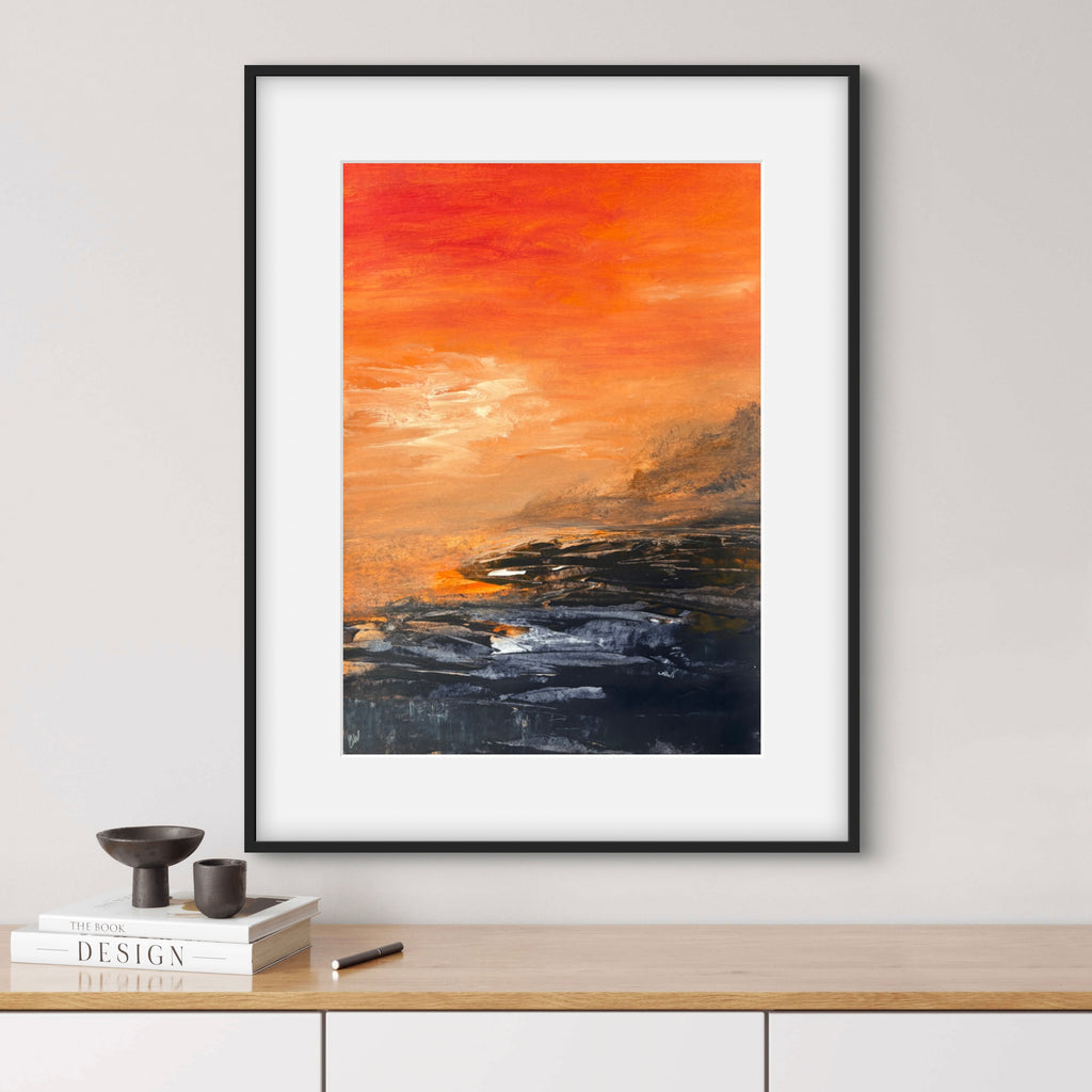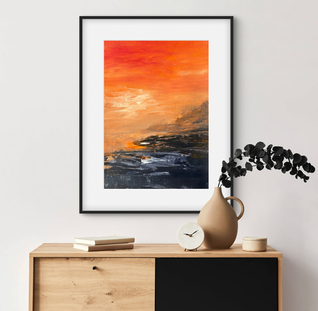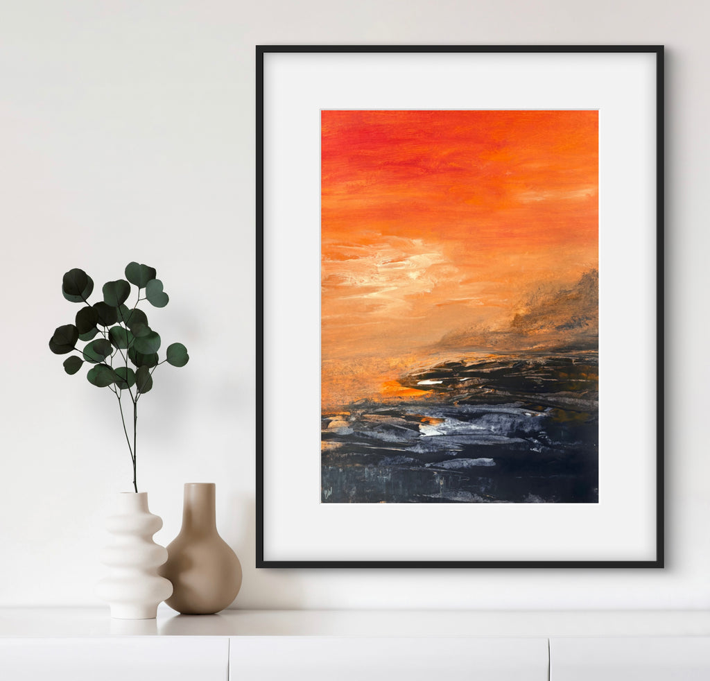 Beneath The Last Light is a beautiful abstract seascape painting. 59.4 x 42 cm (A2 size). Acrylic on paper. Frame not included. Requires framing. No returns on original artworks for change of mind so please choose carefully.