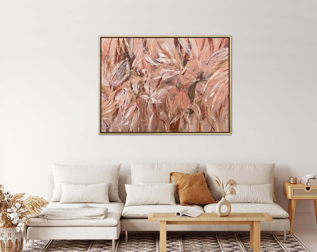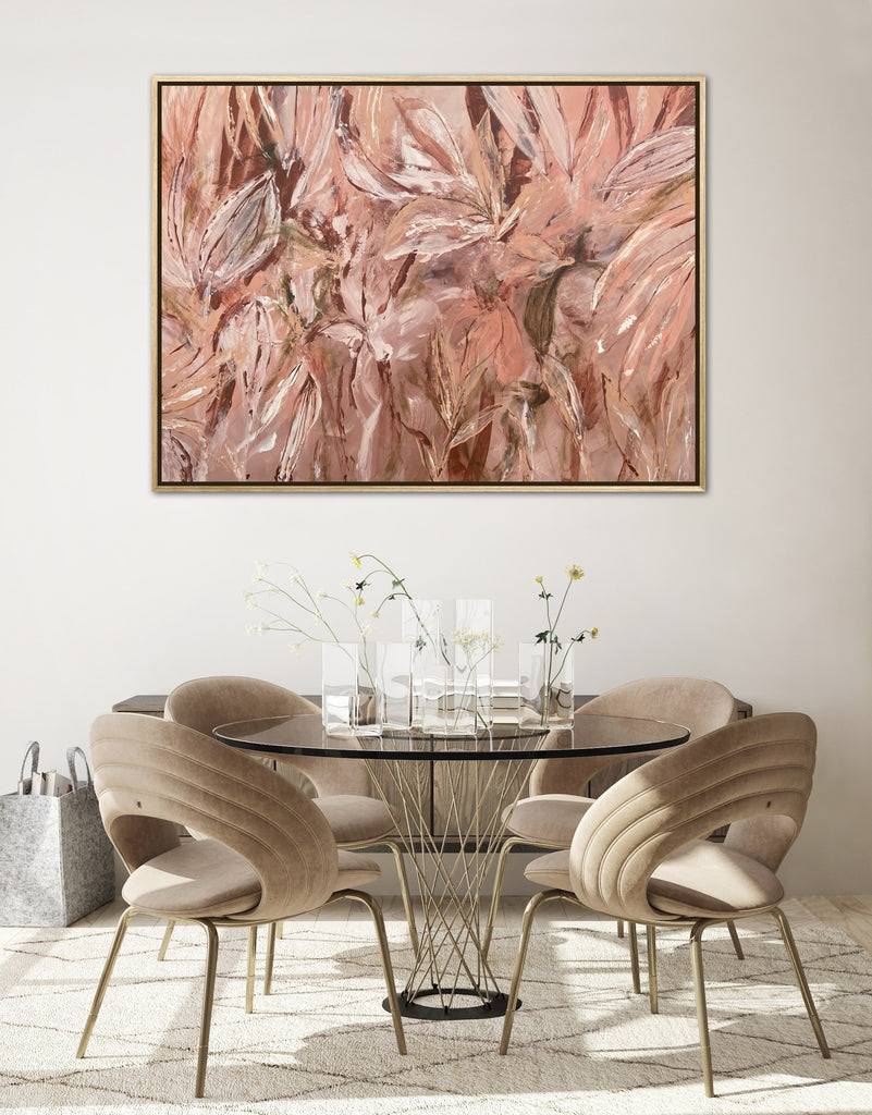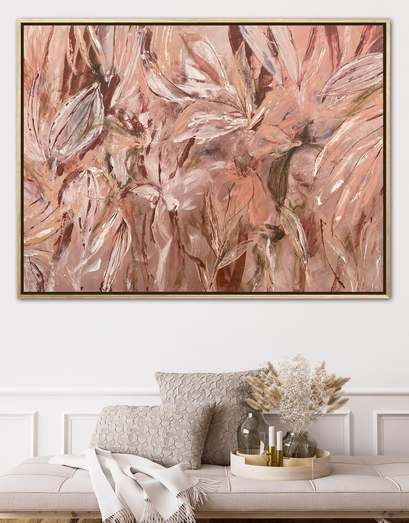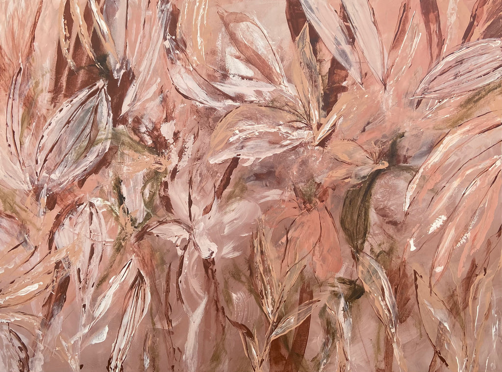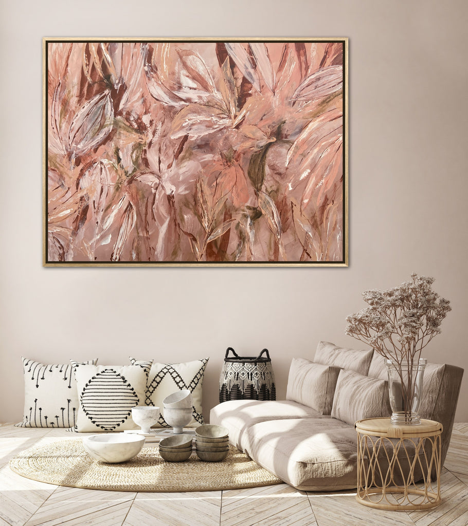 Blush Tropics is a beautiful abstract botanical painting. 121.9 x 91.4 x 2 cm. Acrylic on canvas, ready to hang. Frame not included. No returns on original artworks so please choose carefully.