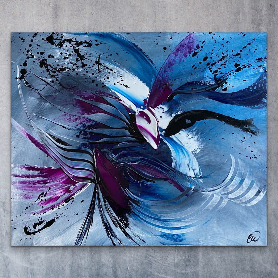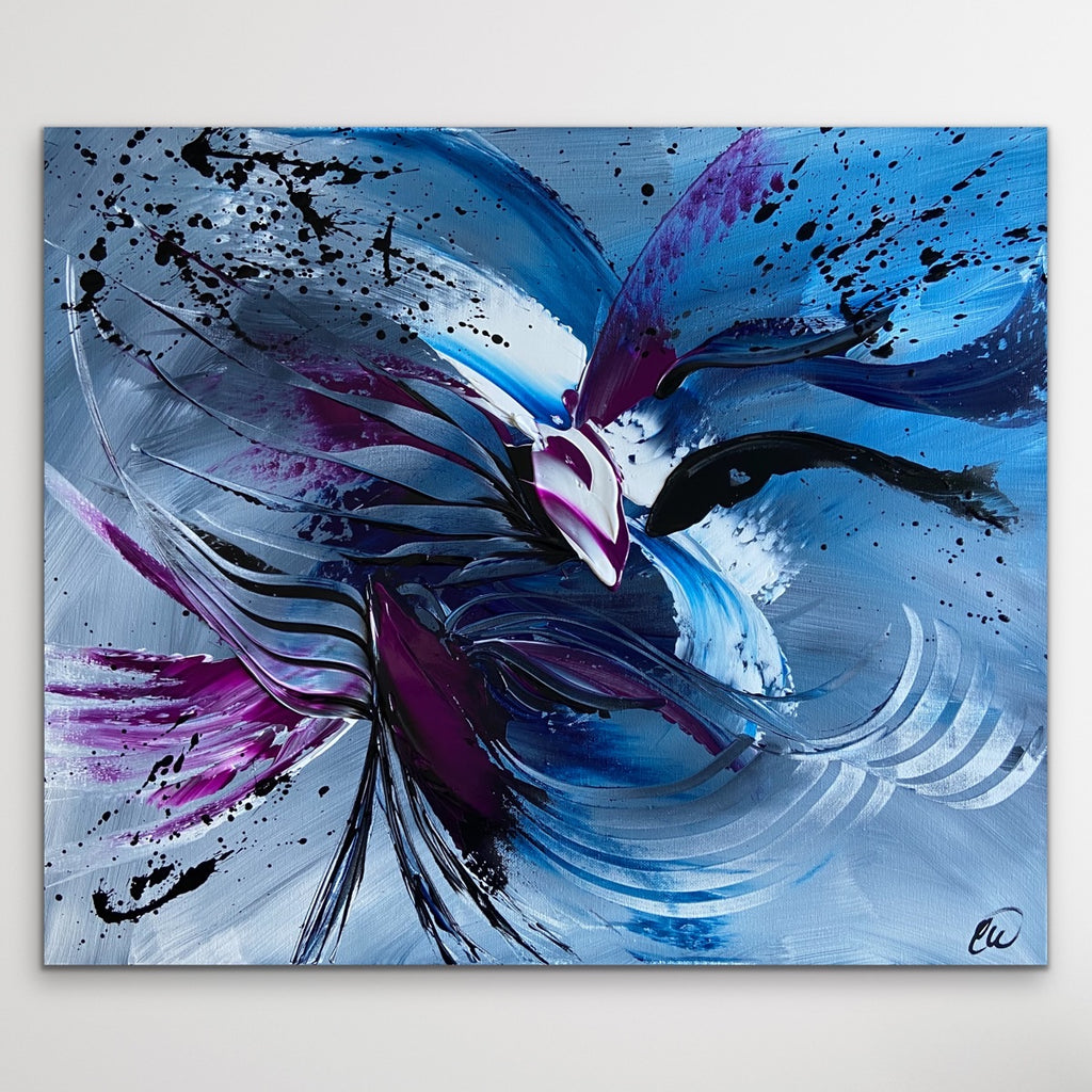 Break The Rules is a beautiful abstract! A stunning colour combination has been used, including greys, white, black, blues and violet. This piece has lots of life and will lift any room. 50 x 60 cm. Acrylic on canvas, ready to hang. Watch how this painting was made on my YouTube! Link to my YouTube is on the home page. No returns on original artworks so please choose carefully.