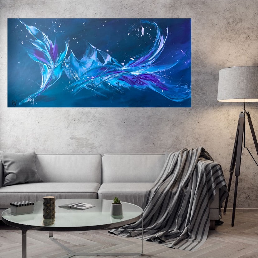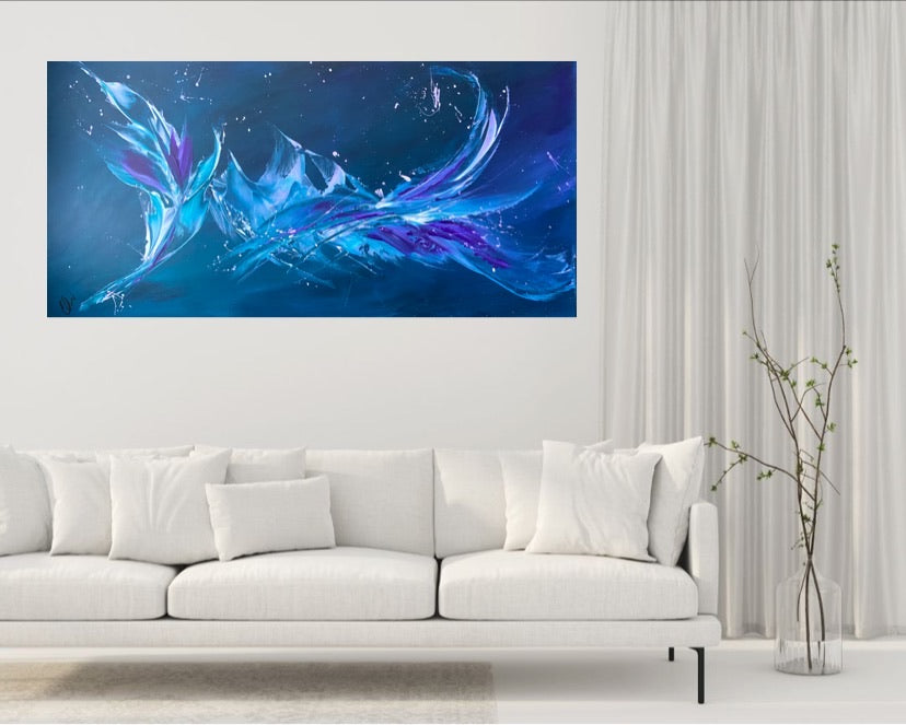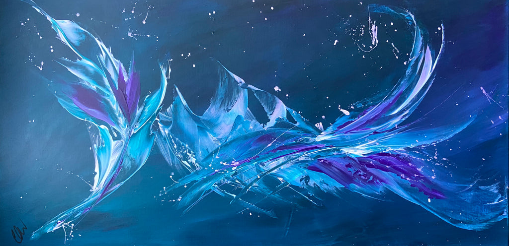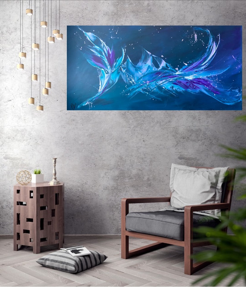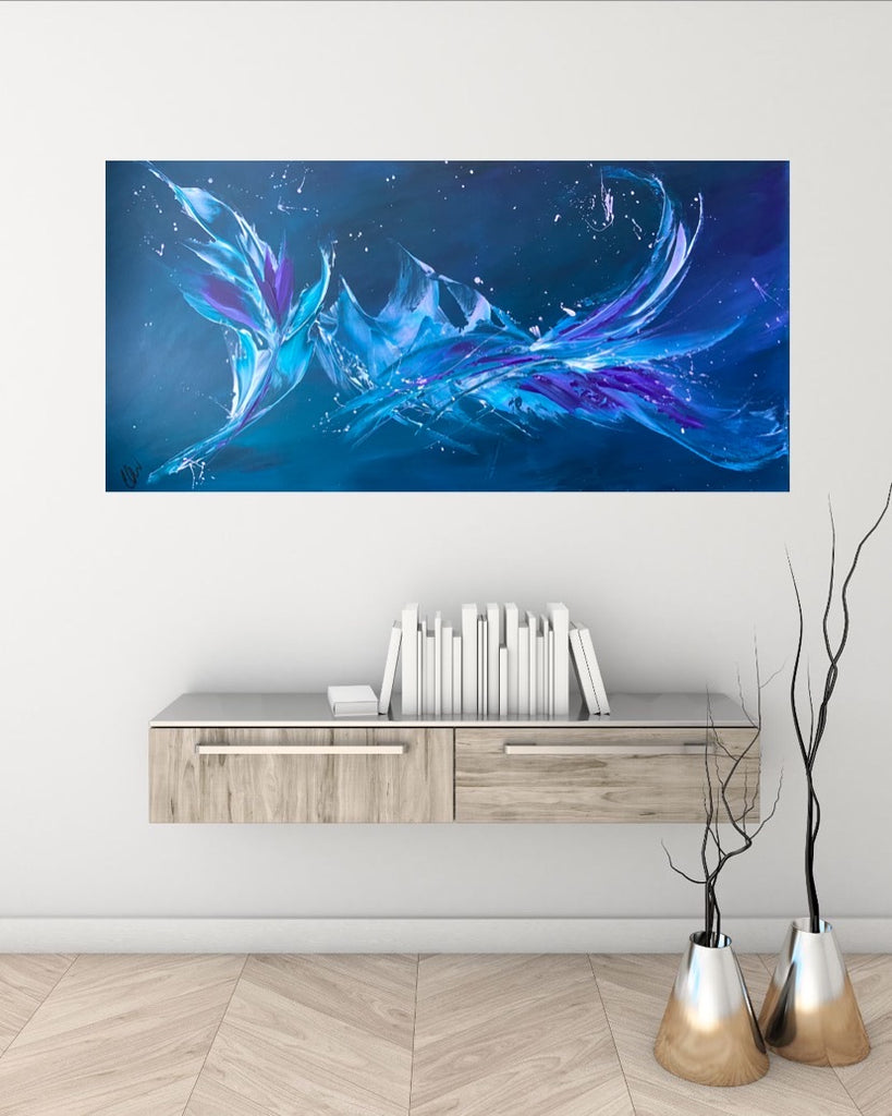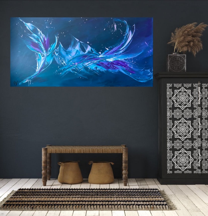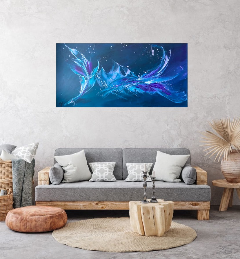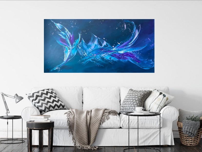 Breakthrough is a beautiful abstract painting that has deep colours and lots of movement in it. This will bring life any room in your home. Acrylic on canvas. Ready to hang. 50.8 x 101.6 x 2cm. No returns on original artworks so please choose carefully.