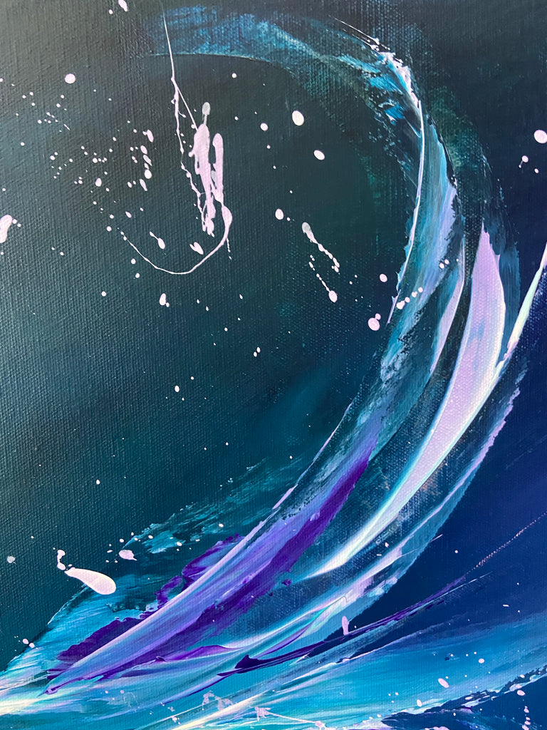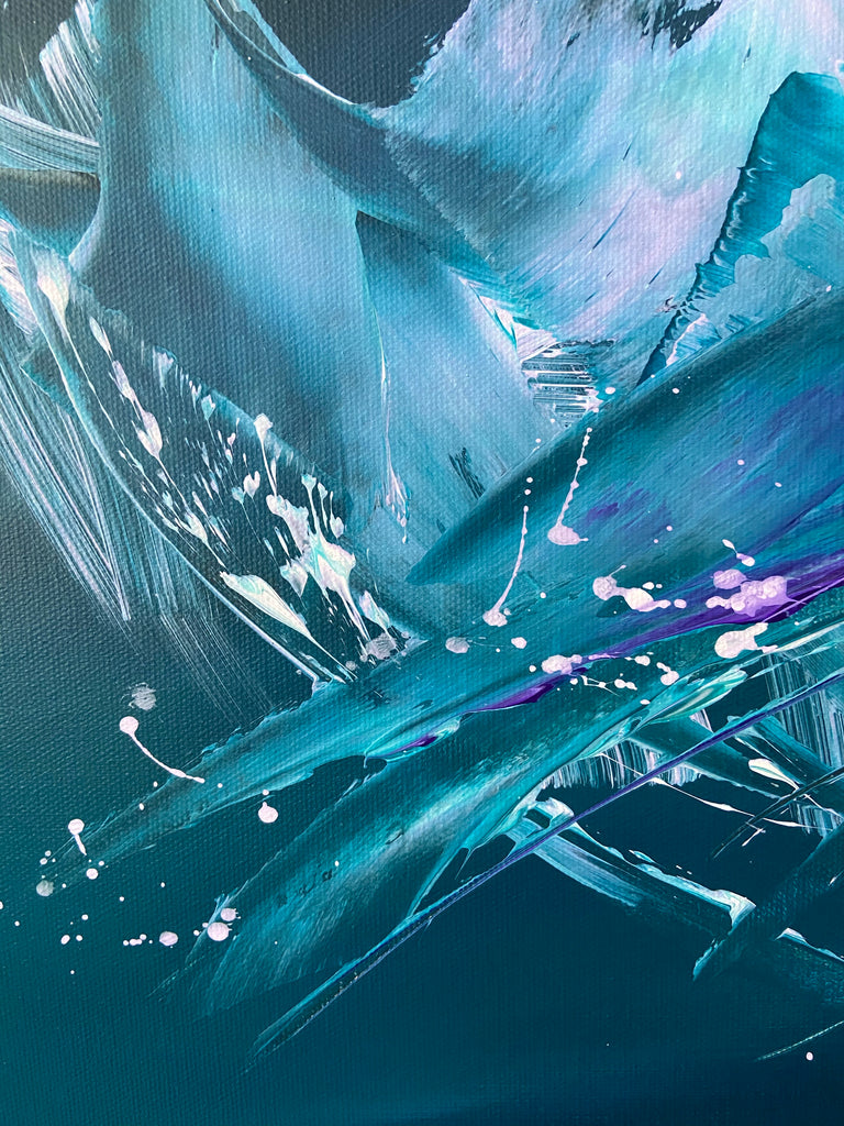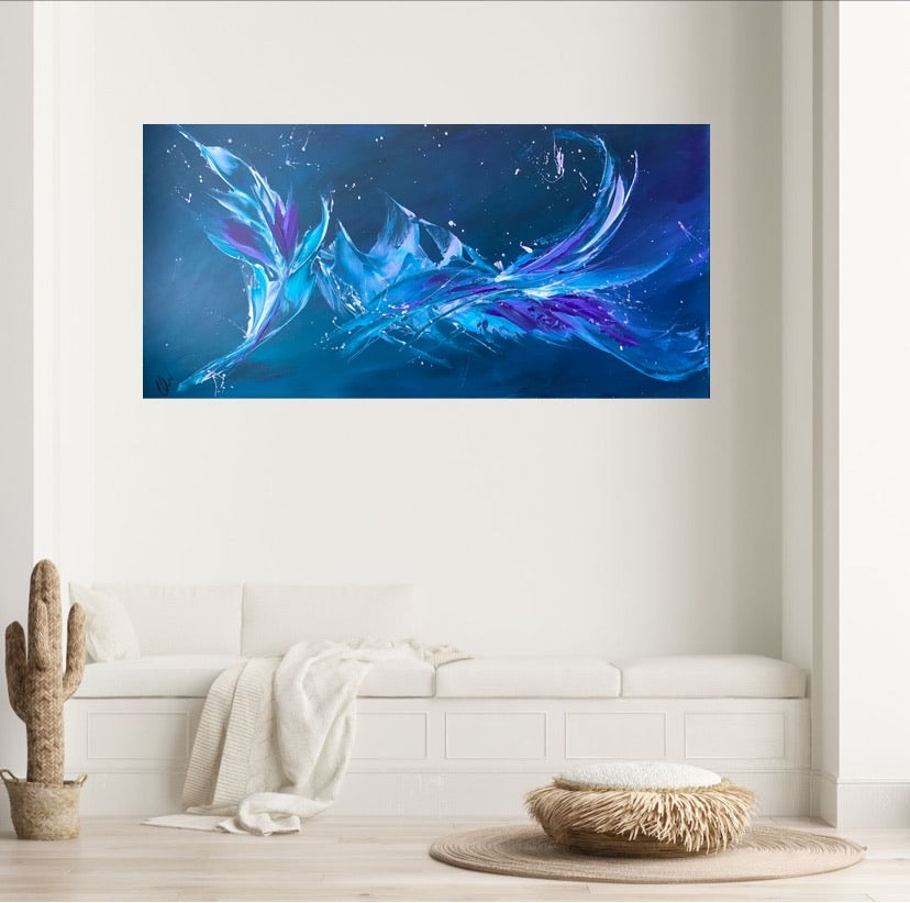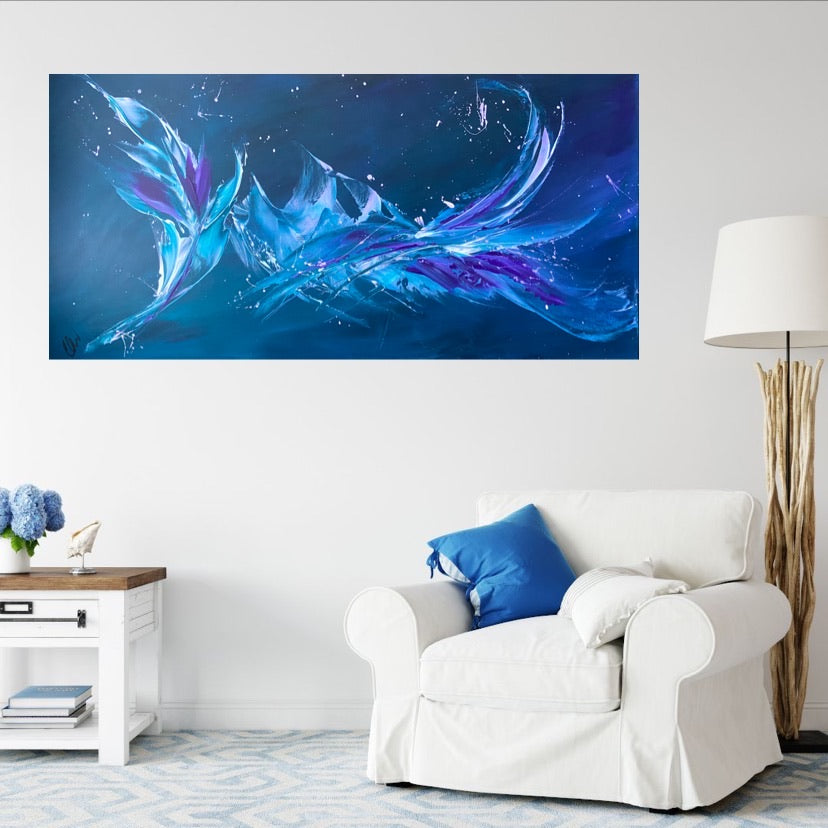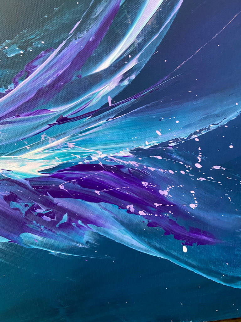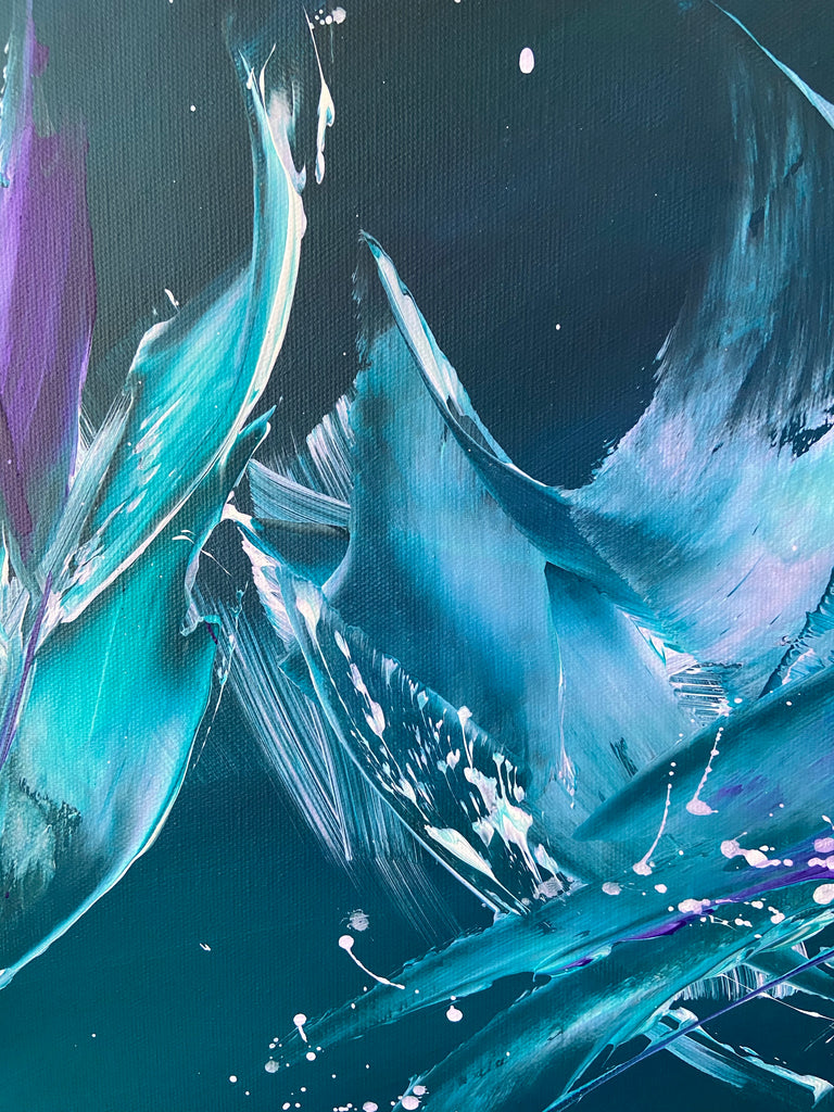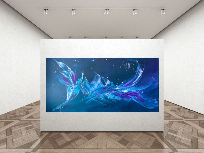 Breakthrough is a beautiful abstract painting that has deep colours and lots of movement in it. This will bring life any room in your home. Acrylic on canvas. Ready to hang. 50.8 x 101.6 x 2cm. No returns on original artworks so please choose carefully.