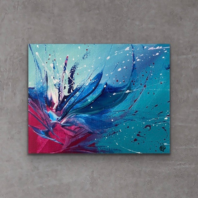 Daydream by Carrie Welsh is a beautiful abstract piece with lovely colours and movement. If you would like to see how this painting was made take a look at my YouTube channel, link is on my homepage. 28 x 35 x 2 cm. Acrylic on canvas, ready to hang. No returns on original artworks so please choose carefully.
