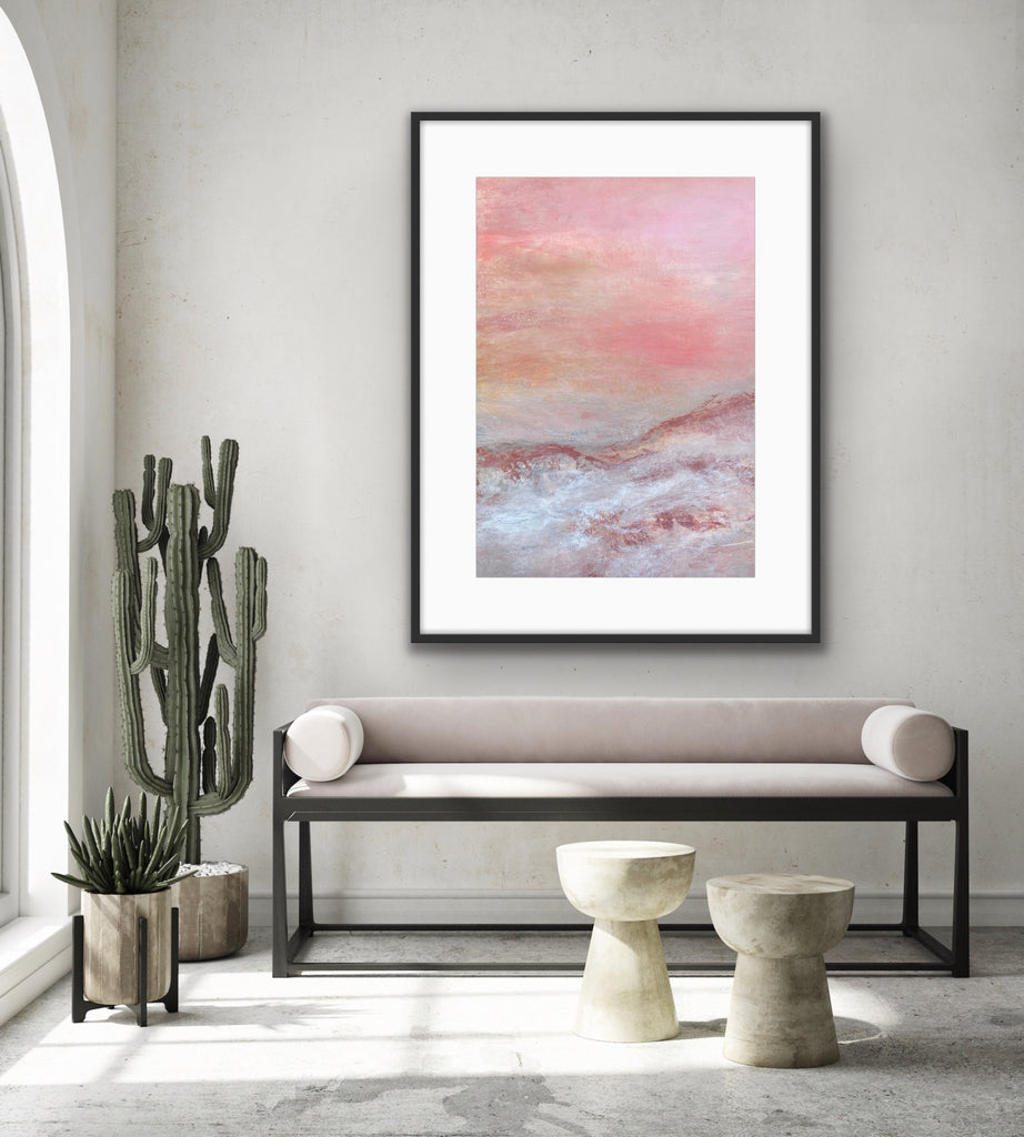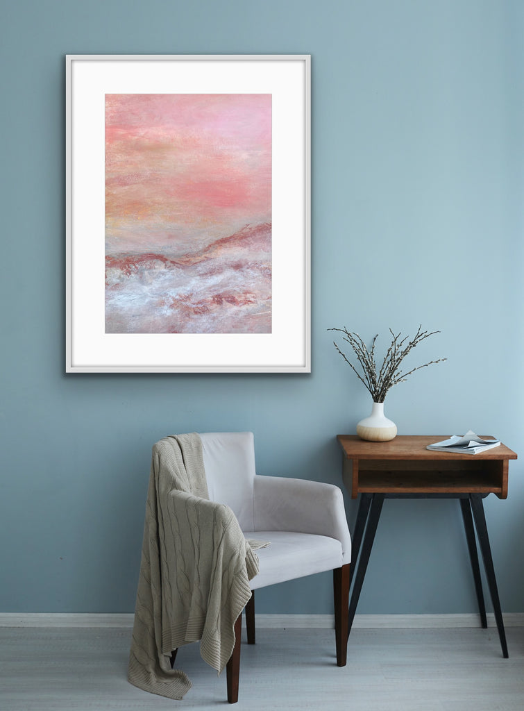Dreamstate is a beautiful abstract landscape painting that has dreamy soft tones. 59.4 x 42 cm (A2 size). Acrylic on paper. Frame not included. Requires framing. No returns on original artworks so please choose carefully.