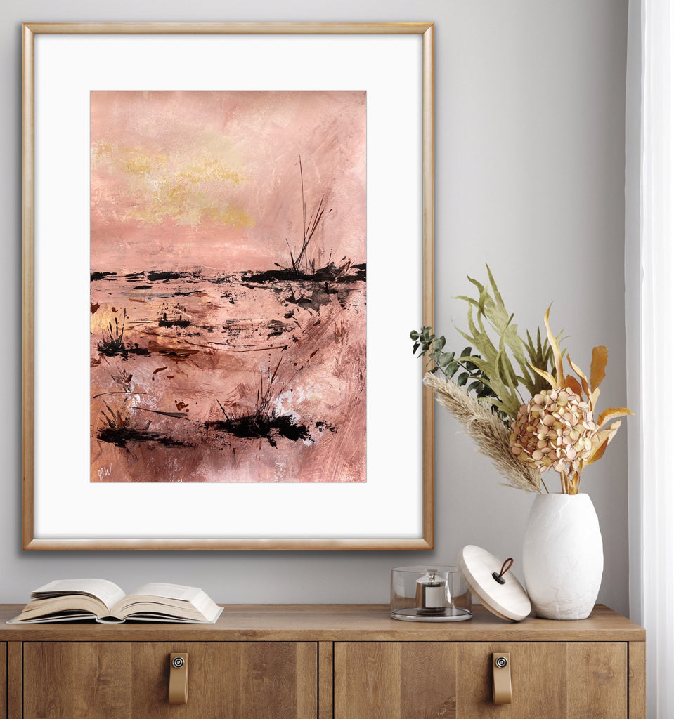 Dusk Dreaming is a beautiful abstract landscape painting. 59.4 x 42 cm (A2 size). Acrylic on paper. Frame not included. Requires framing. No returns on original artworks so please choose carefully.
