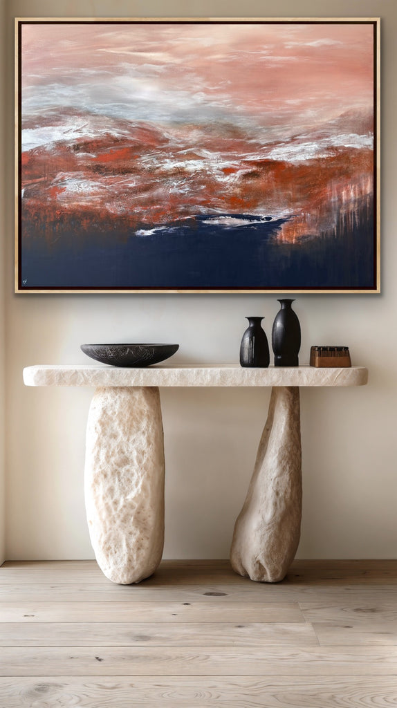 Dusk Horizons is a beautifully textured abstract landscape/seascape. 121.8 x 91.4 x 4 cm. Acrylic on canvas, ready to hang. Frame not included. No returns on original artworks for change of mind so please choose carefully.
