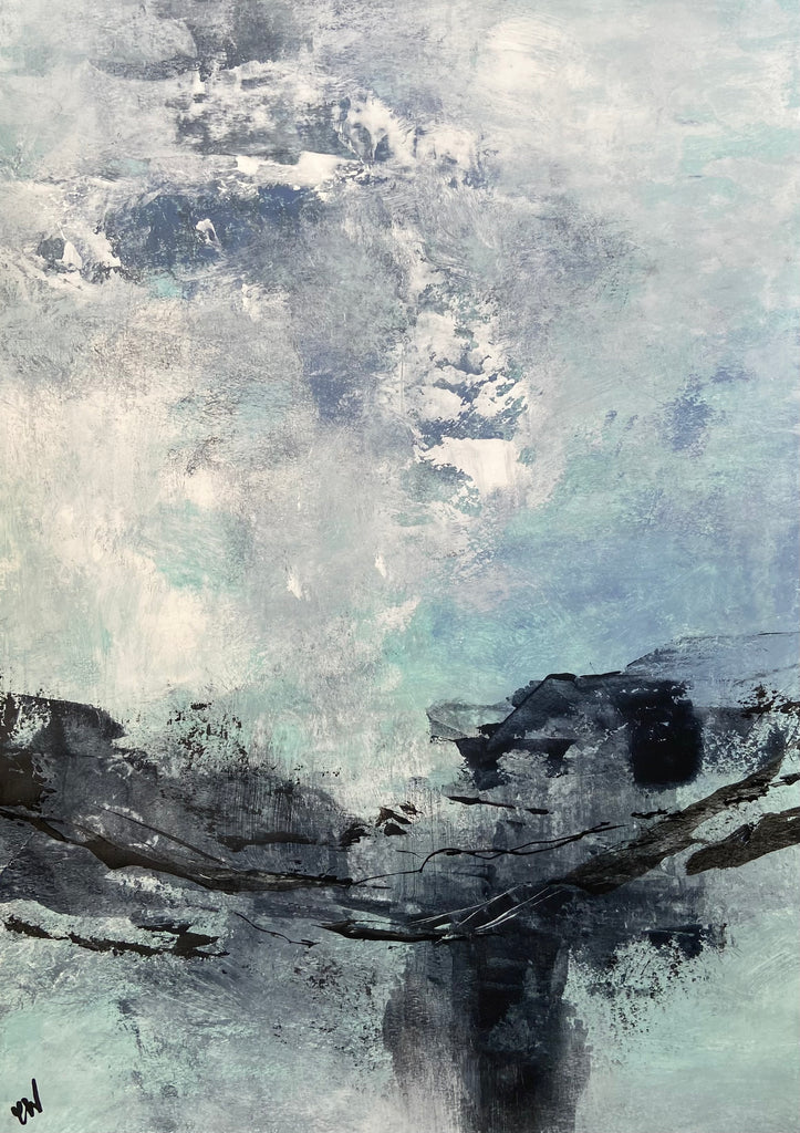 Edge Of A Breakthrough is a beautiful abstract landscape. 59.4 x 42 cm (A2 size). Acrylic on paper. Frame not included . Requires framing. No returns on original artworks so please choose carefully.