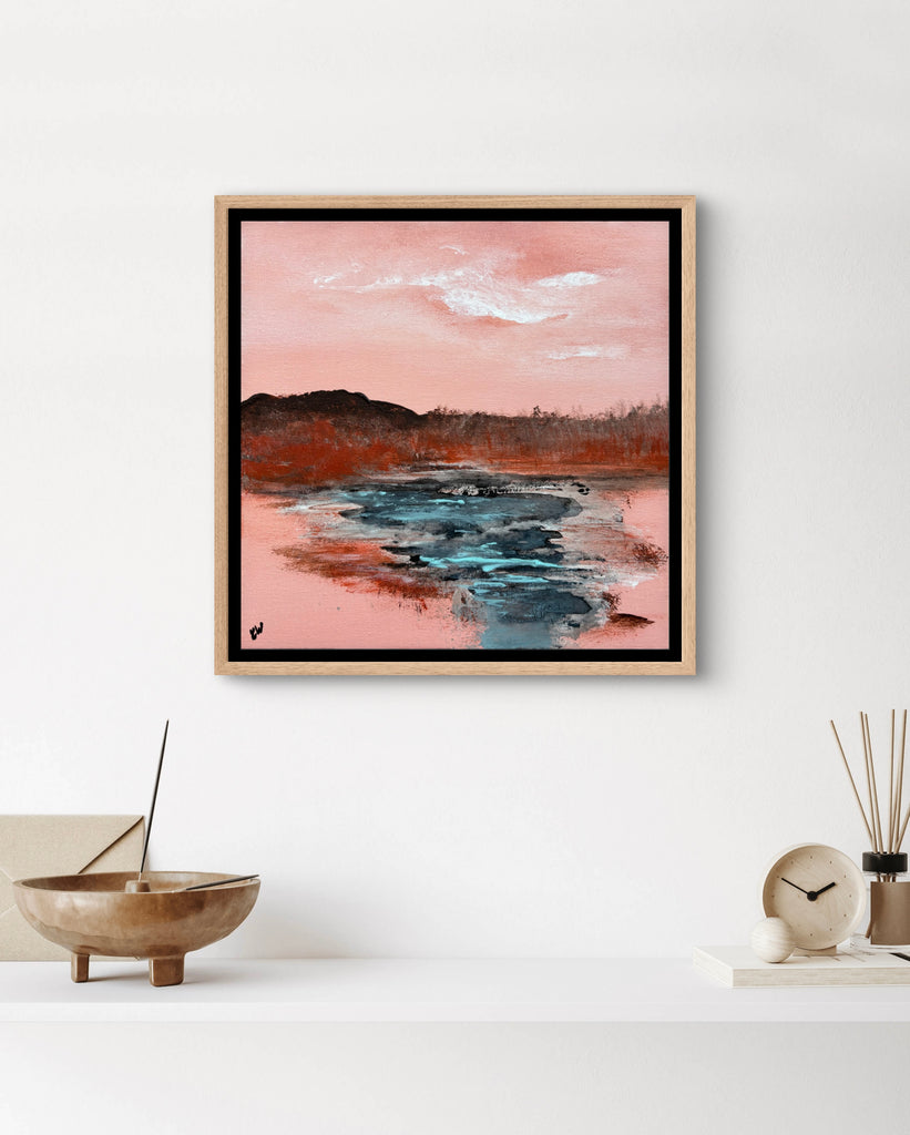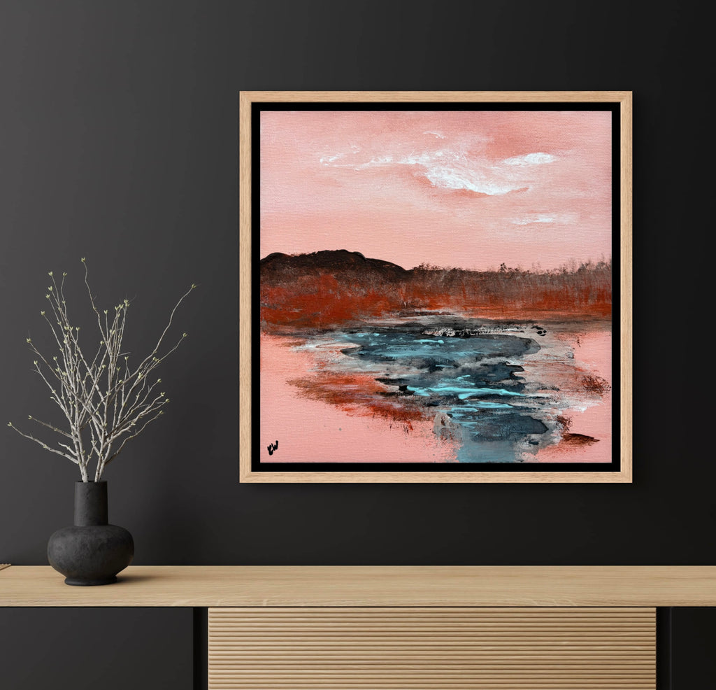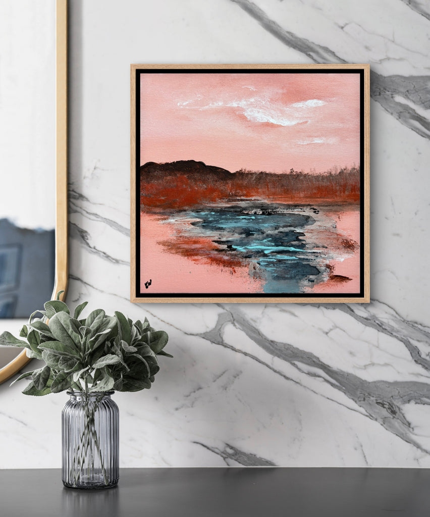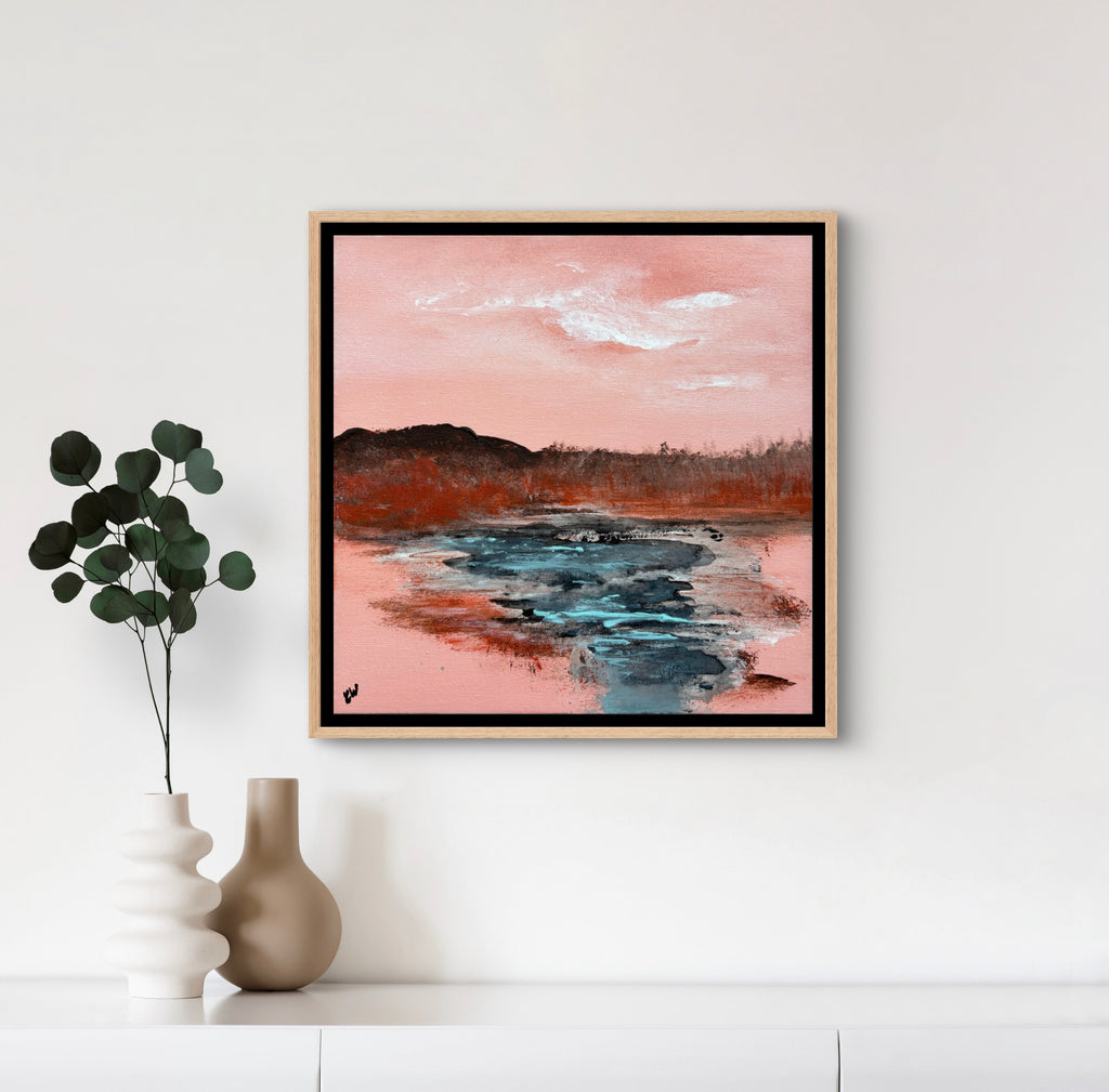 Elemental Drift is a beautiful abstract landscape/seascape.  25 x 25 cm. Acrylic on canvas, ready to hang. Frame not included. No returns on original artworks for change of mind so please choose carefully.