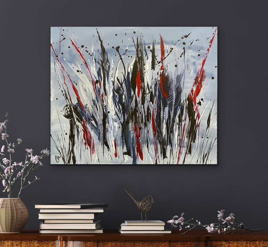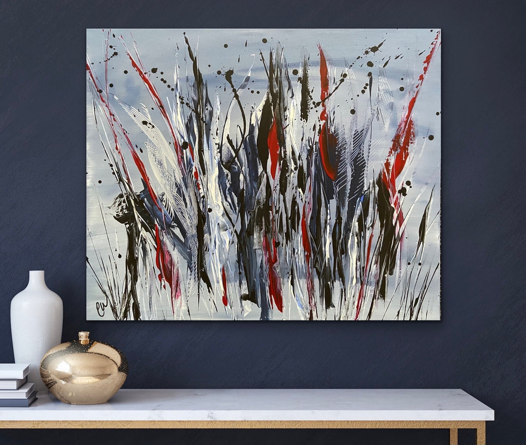 Entwined is a beautiful abstract piece that will liven up any space.  50 x 60 cm. Acrylic on canvas, ready to hang. Watch how this painting was made on my YouTube! Link to my YouTube is on the home page. No returns on original artworks so please choose carefully.