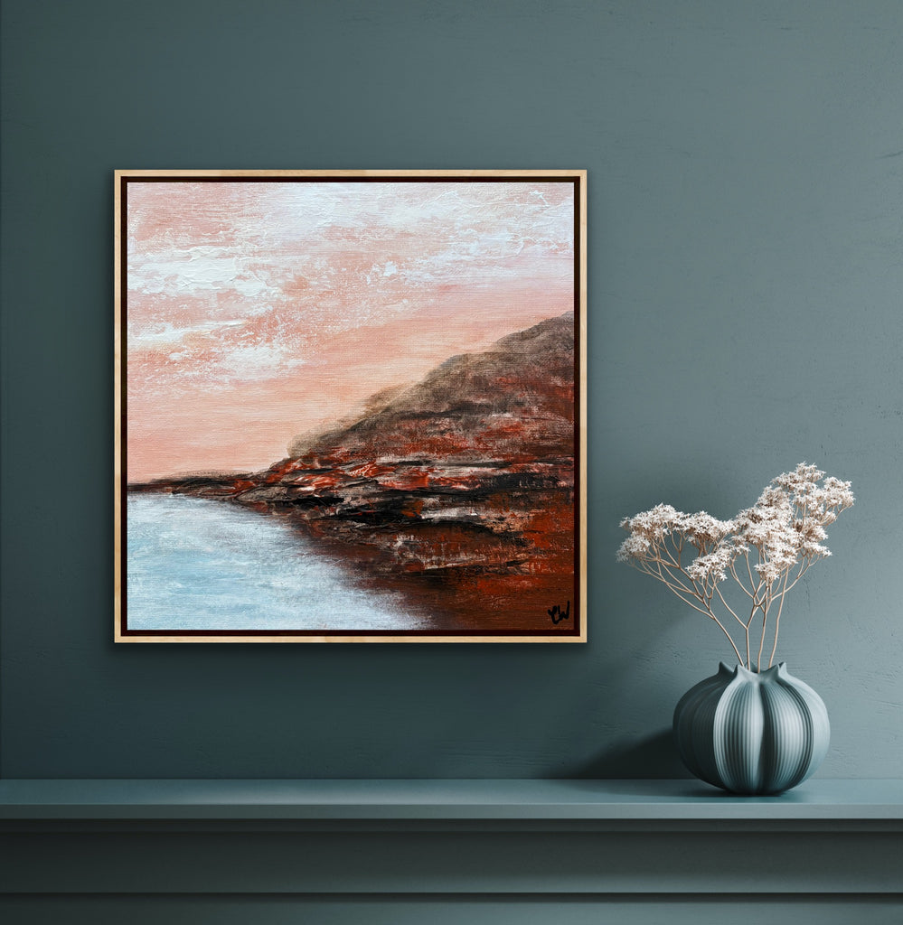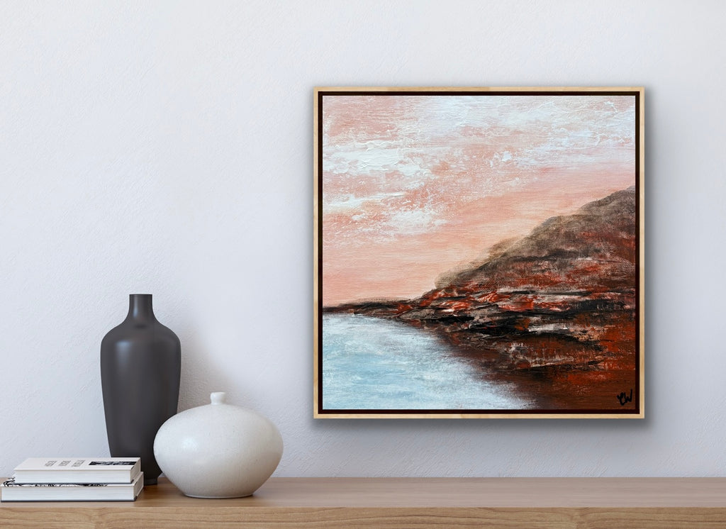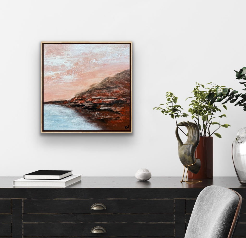 Fading Tides is a beautifully textured abstract seascape.  25 x 25 cm. Acrylic on canvas, ready to hang. Frame not included. No returns on original artworks so please choose carefully.