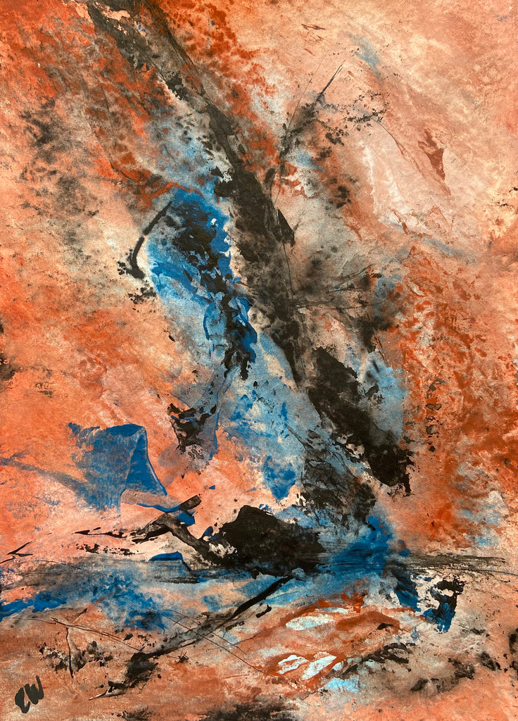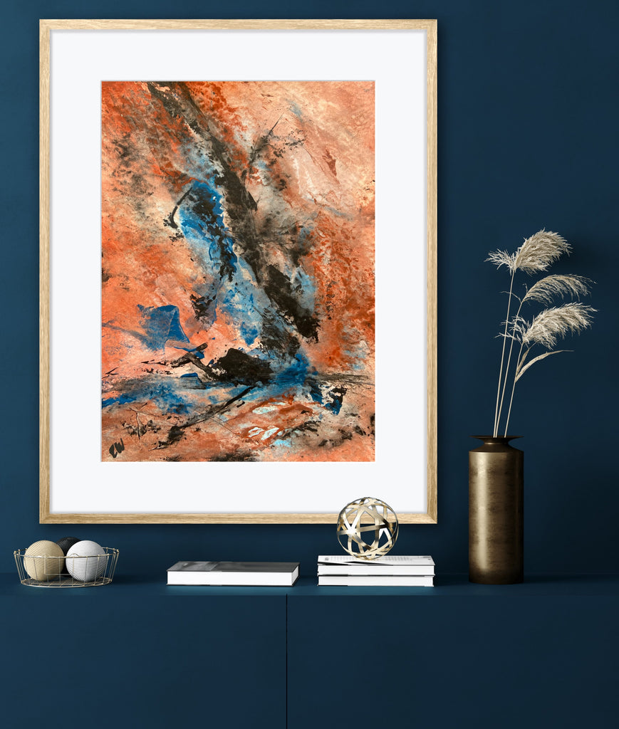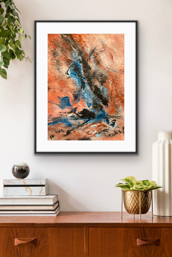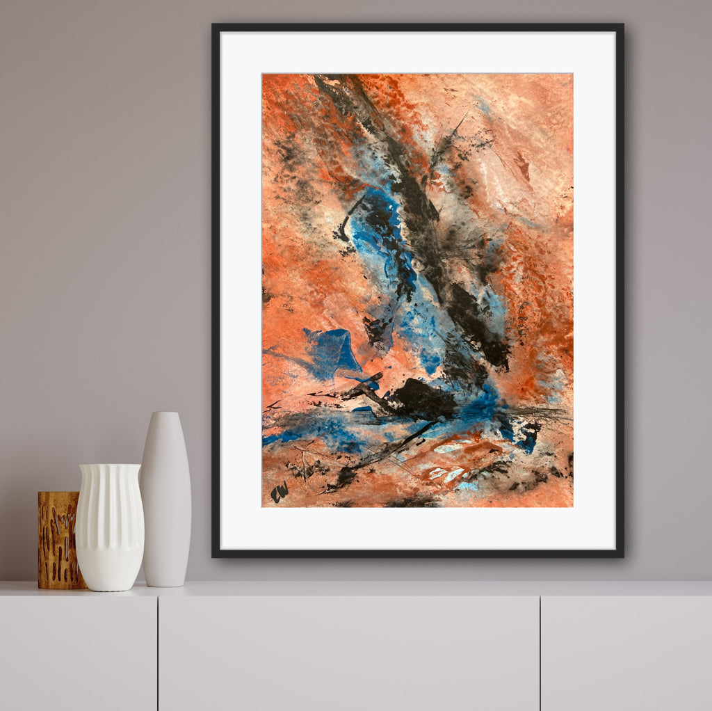 Fragmented is a beautiful abstract painting. Acrylic on paper. 29.7 x 42 cm (A3 size). Frames not included. Requires framing. No returns on original artworks so please choose carefully.