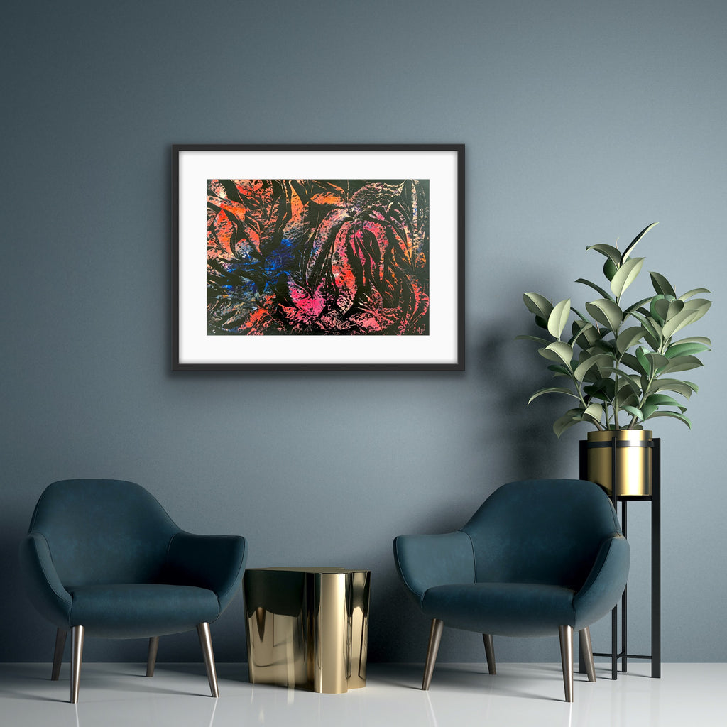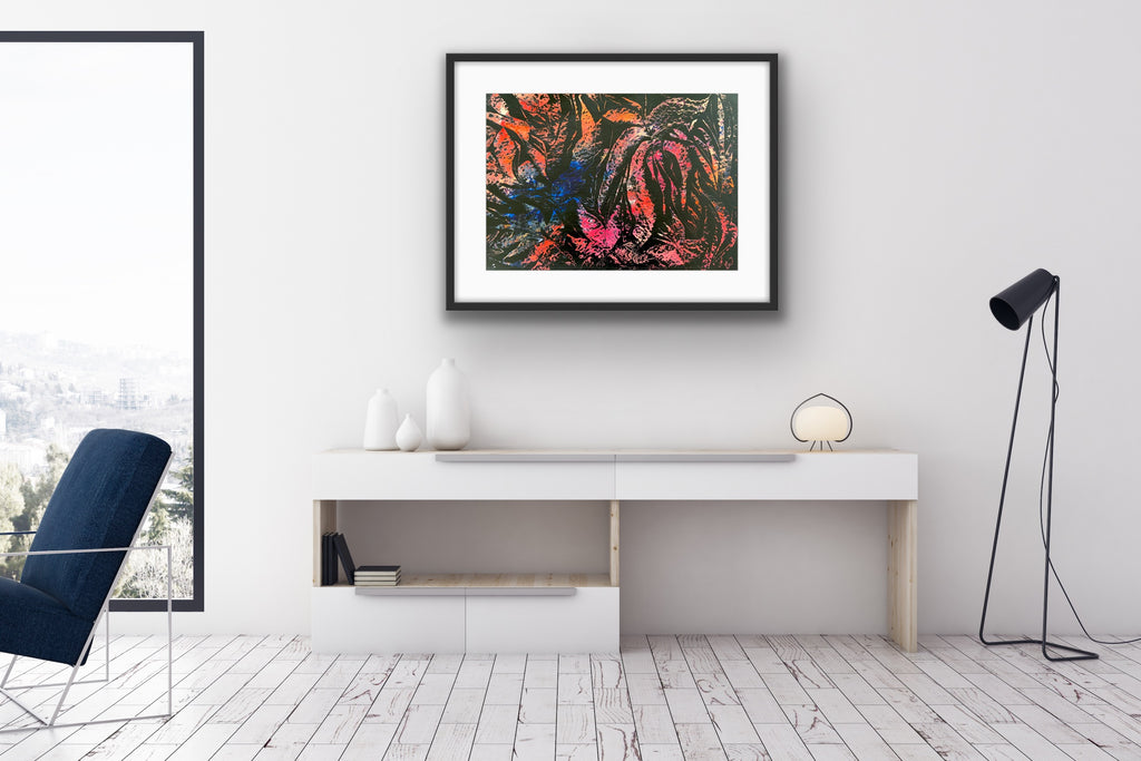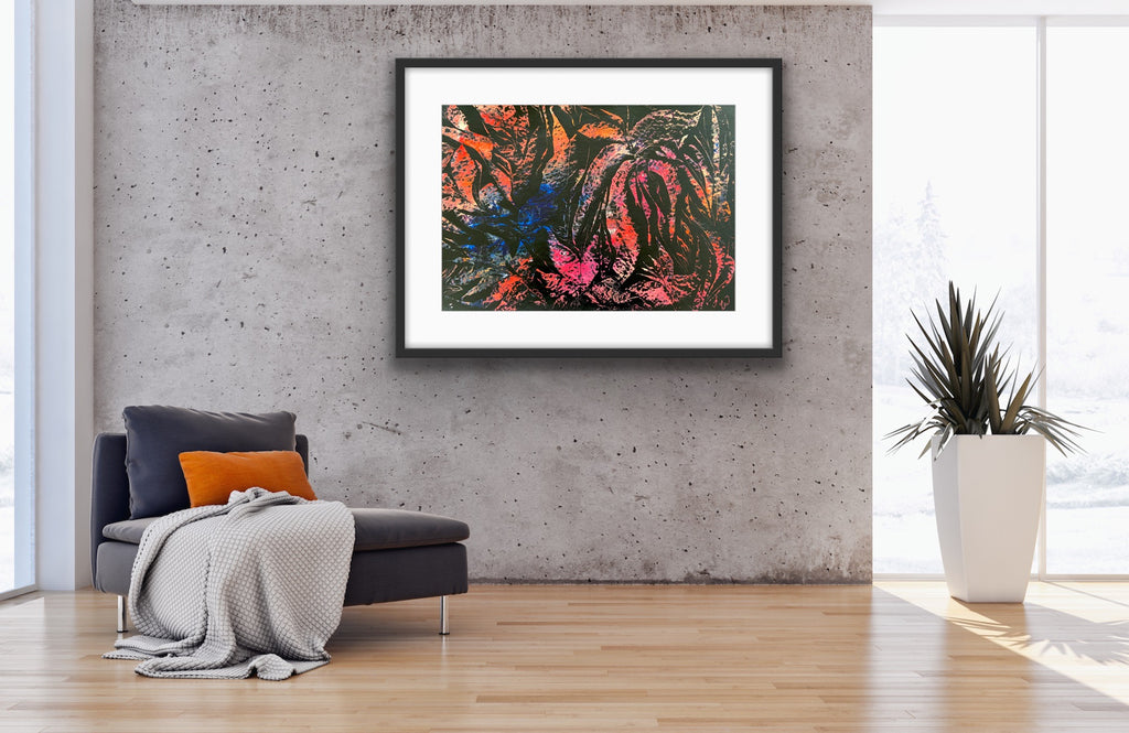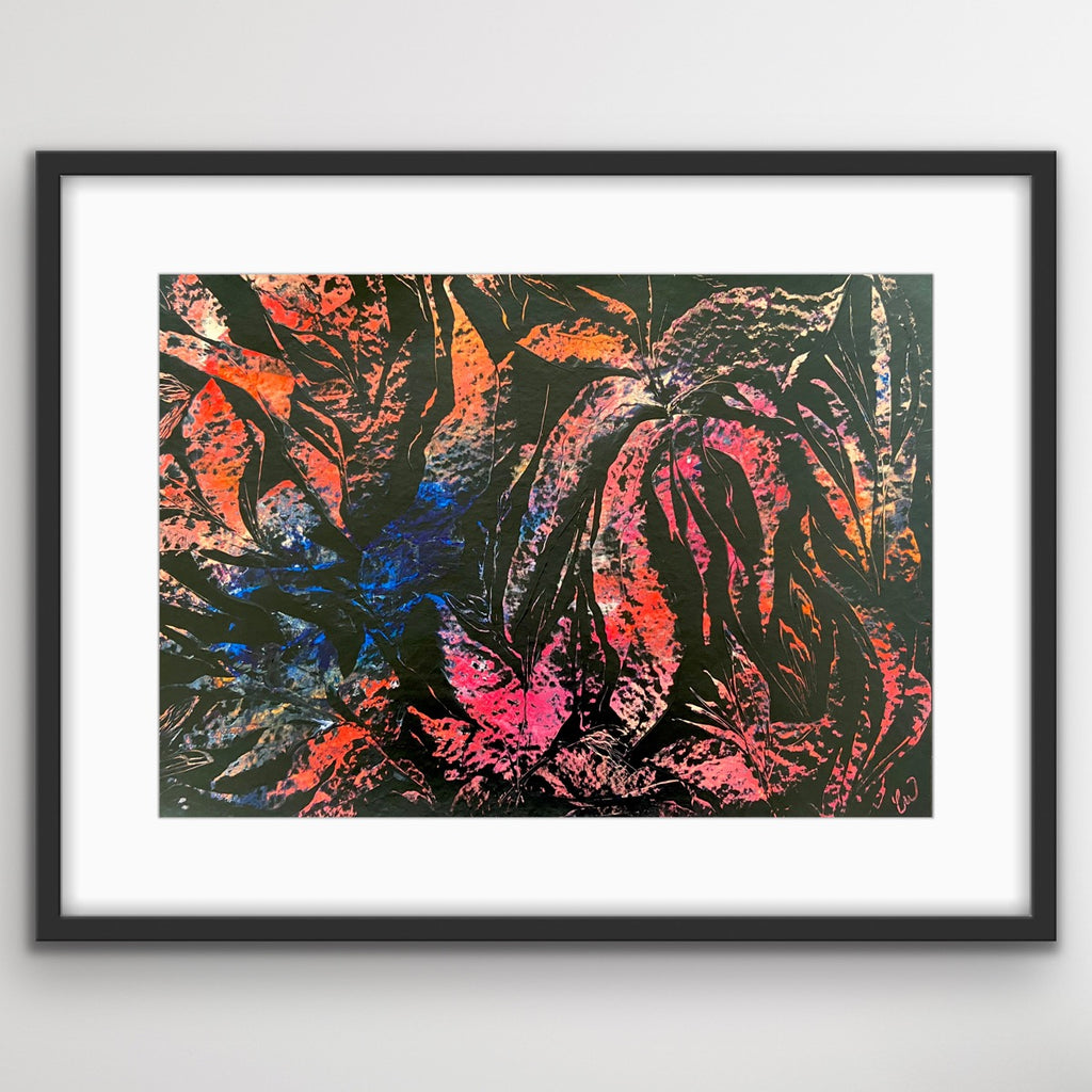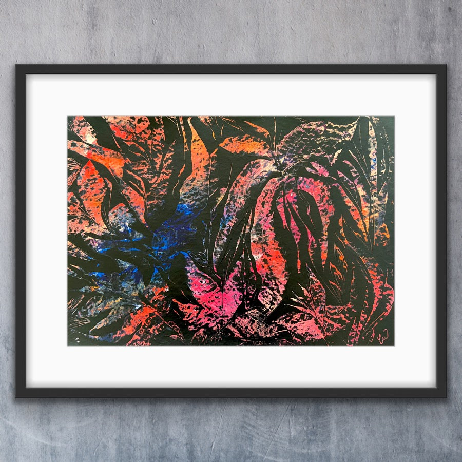 Hinterland is a beautiful botanical abstract piece that is full of tropical colour! Some images show what this piece looks like framed. Frames not included. 59.4 x 42 cm (A2 size) Acrylic on paper. Requires framing. No returns on original artworks so please choose carefully.