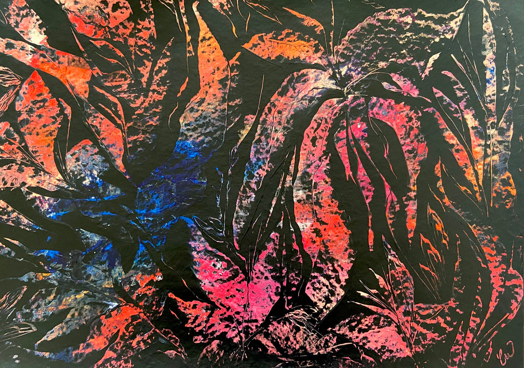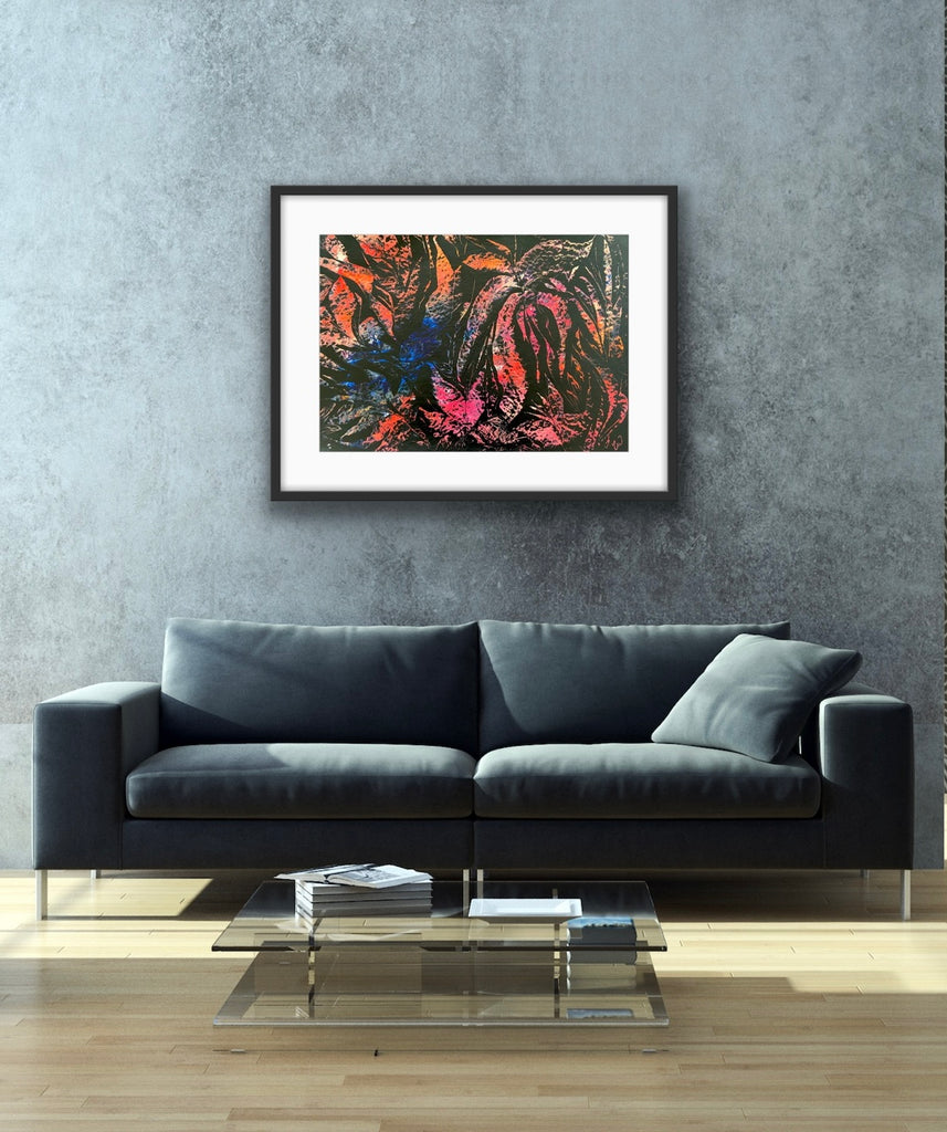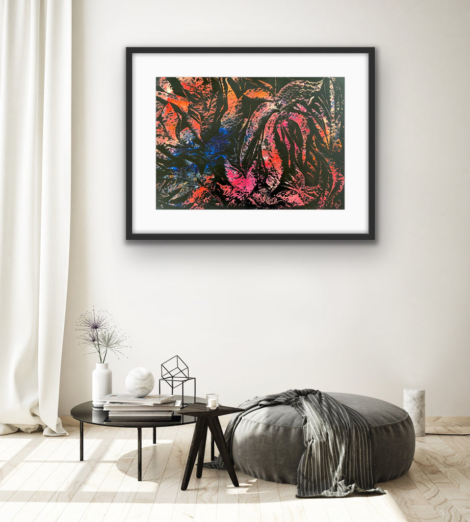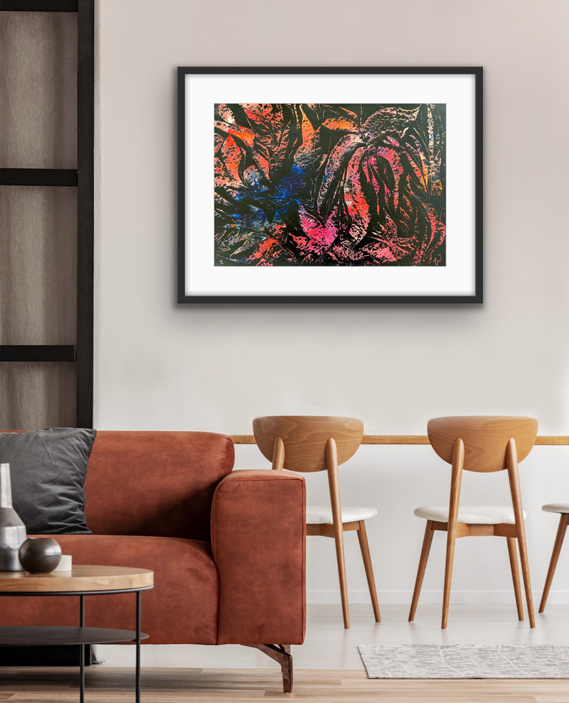 Hinterland is a beautiful botanical abstract piece that is full of tropical colour! Some images show what this piece looks like framed. Frames not included. 59.4 x 42 cm (A2 size) Acrylic on paper. Requires framing. No returns on original artworks so please choose carefully.