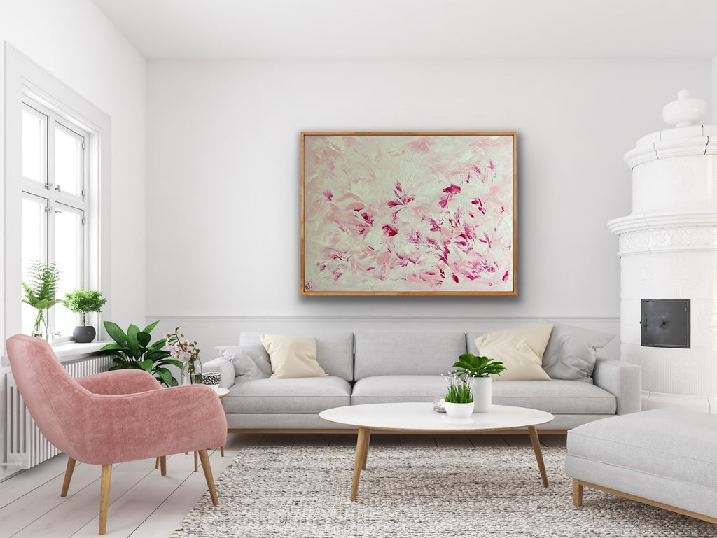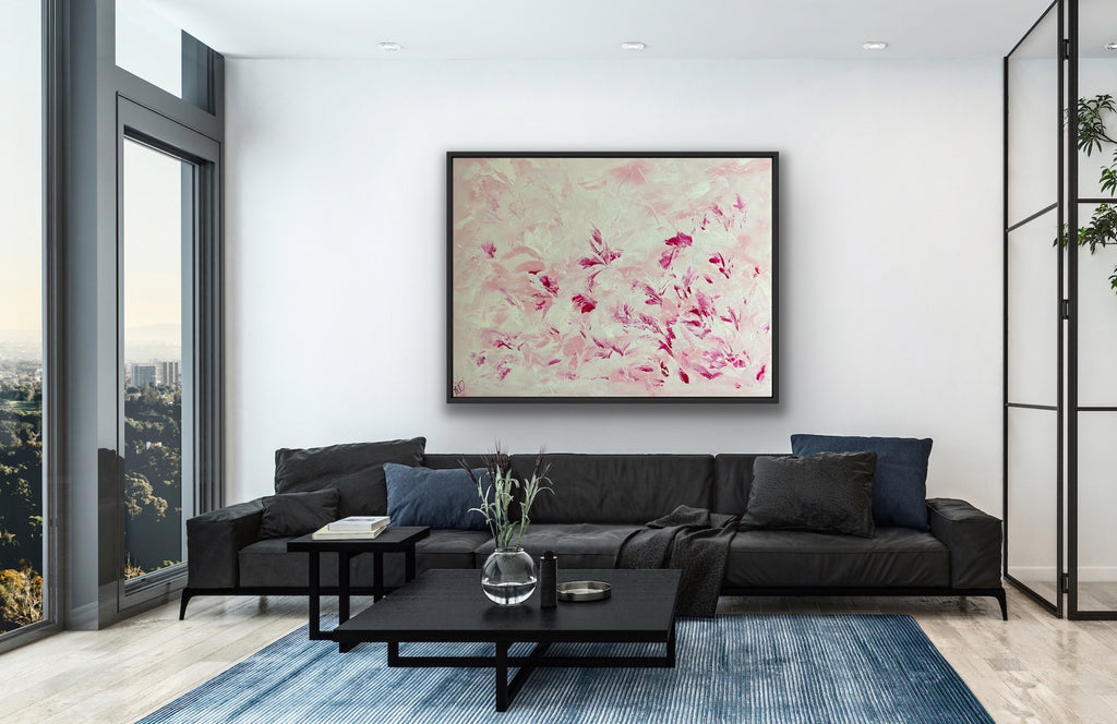 Hush is a beautiful and very peaceful blush toned abstract. This piece will bring life to any room in your home or office. Acrylic on canvas. Ready to hang. 121.8 x 91.4 x 2cm. Some images show what this would look like framed. Frames not included. See close up details of this painting on my YouTube channel! No returns on original artworks so please choose carefully.