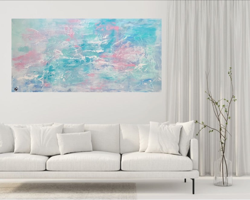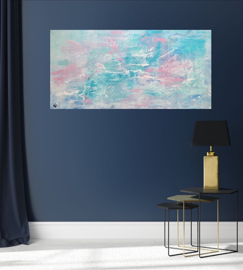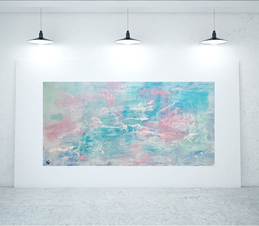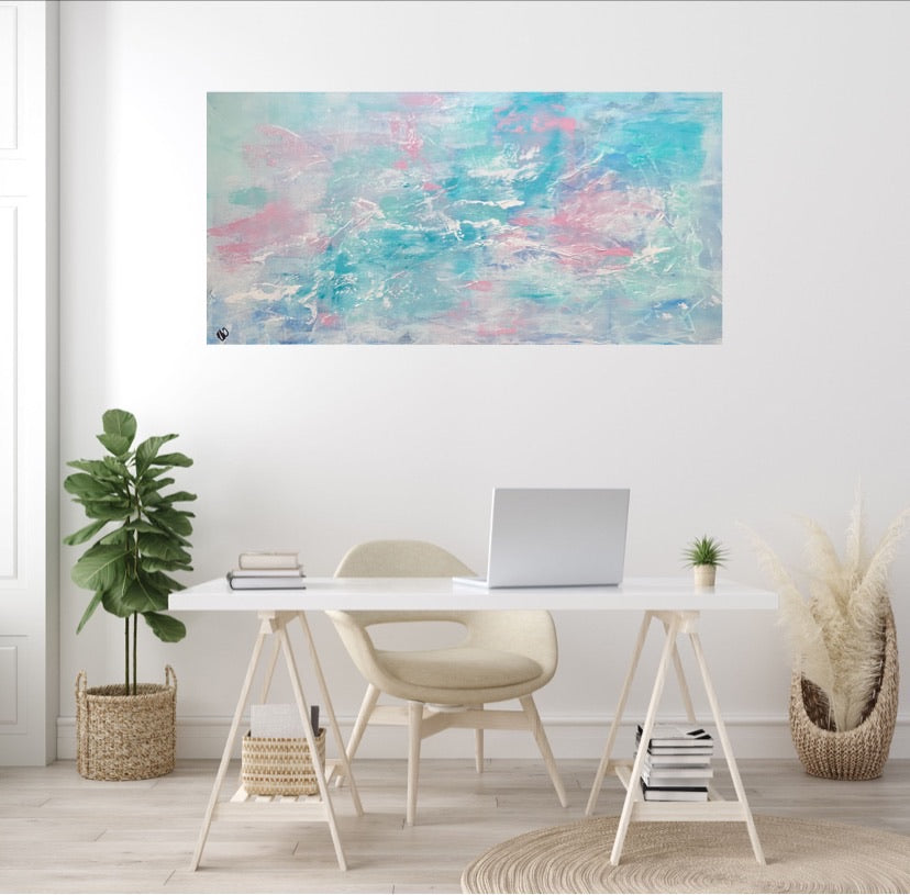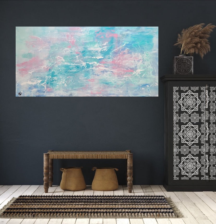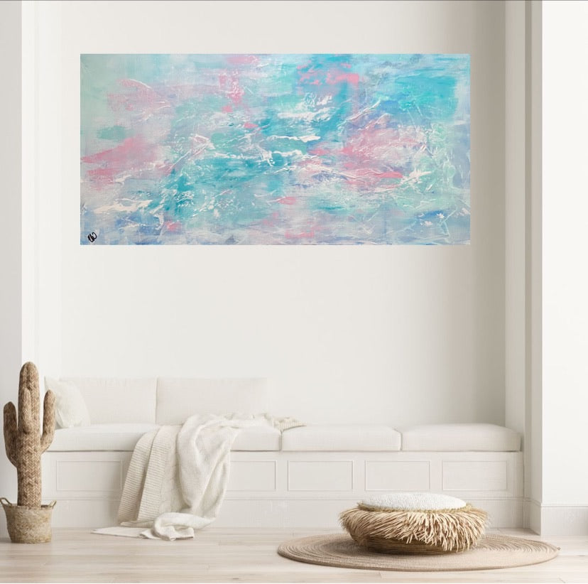 Impulse is a beautifully textured abstract piece with soft pastel colours that will brighten up any room in your home. 101.6 x 50.8 x 2 cm. Acrylic on canvas, ready to hang. No returns on original artworks so please choose carefully.