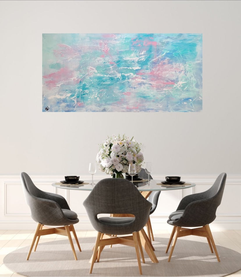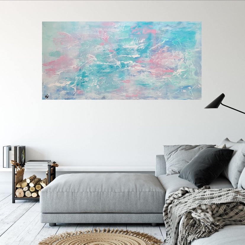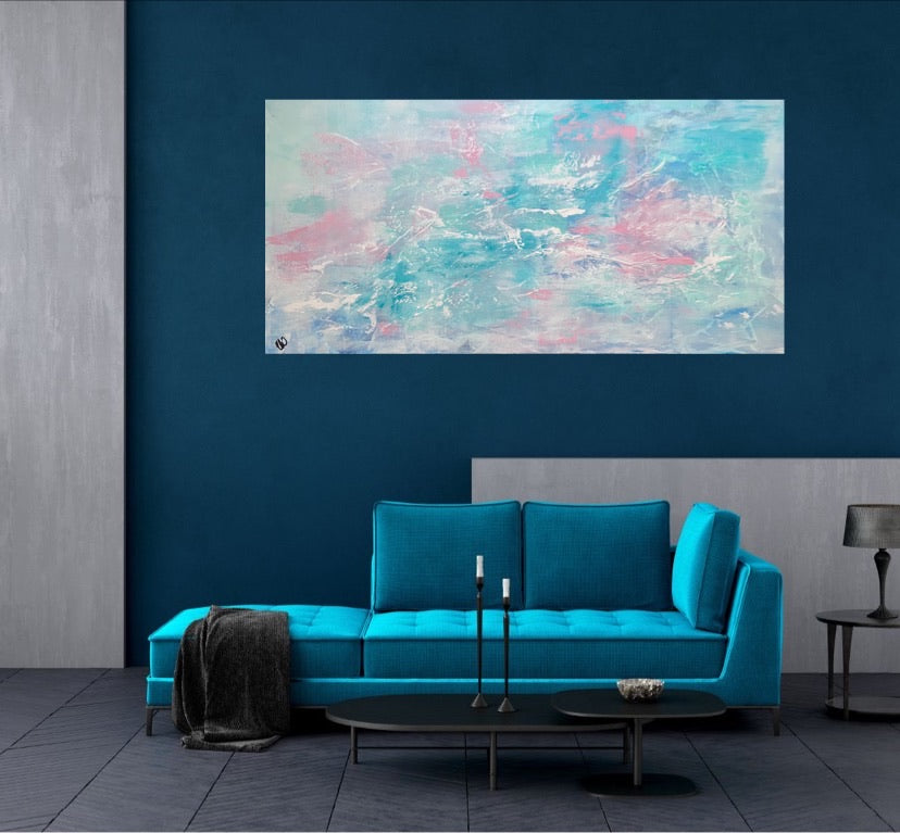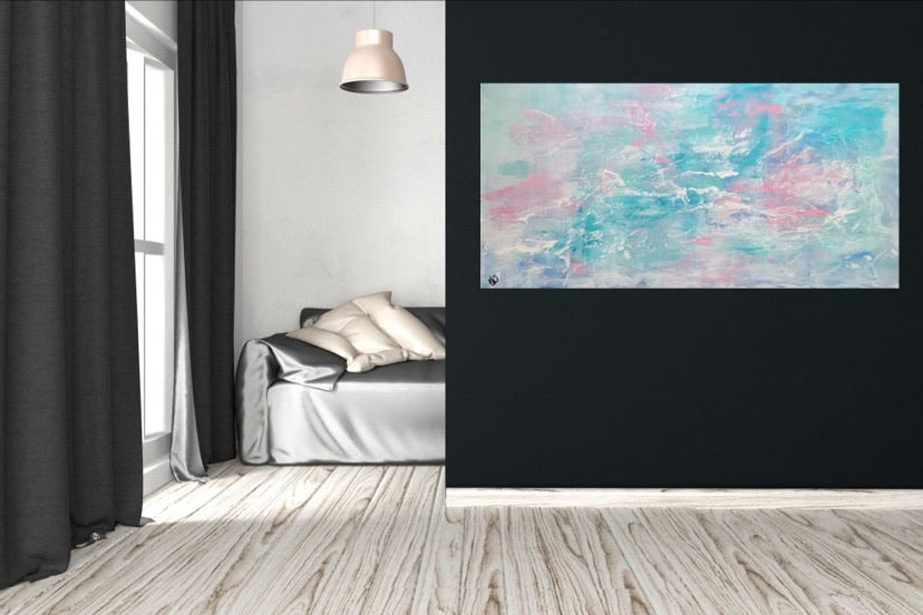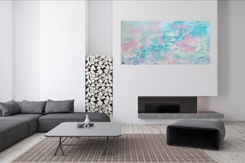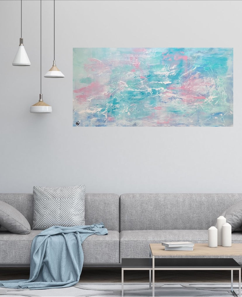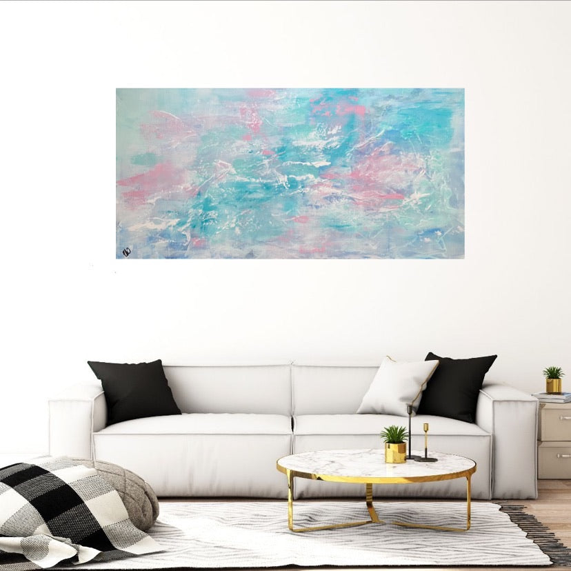 Impulse is a beautifully textured abstract piece with soft pastel colours that will brighten up any room in your home. 101.6 x 50.8 x 2 cm. Acrylic on canvas, ready to hang. No returns on original artworks so please choose carefully.