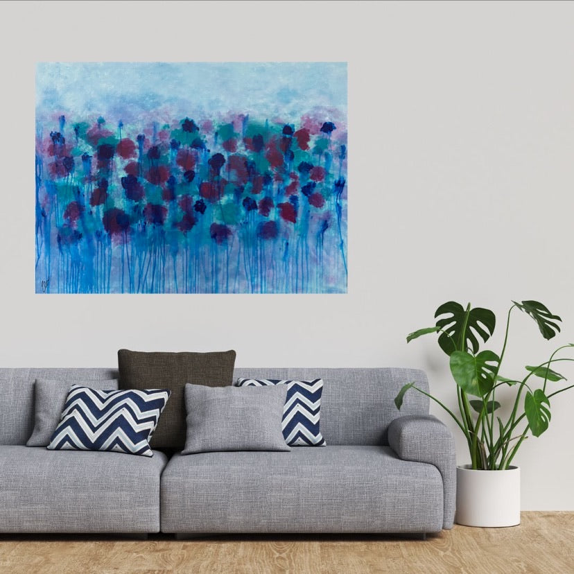 In Bloom is an abstract representation of flowers in a beautiful garden at spring time. 121.9 x 91.4 x 2 cm. Acrylic on canvas, ready to hang. Frame not included. No returns on original artworks so please choose carefully.