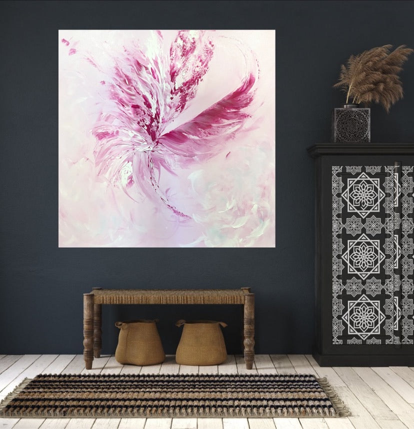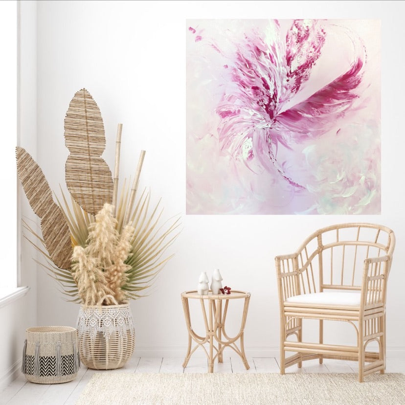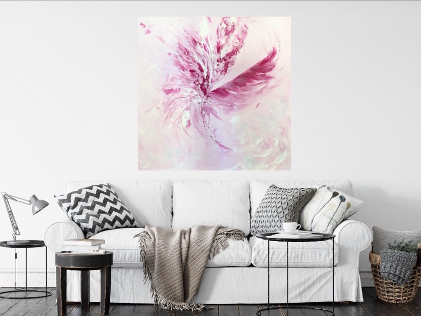 In high spirits is a whimsical, beautifully light and uplifting piece that would look amazing in any area of your home, to lift the space. Acrylic on canvas, ready to hang. 91.4 x 91.4 x 2cm. No returns on original artworks so please choose carefully.