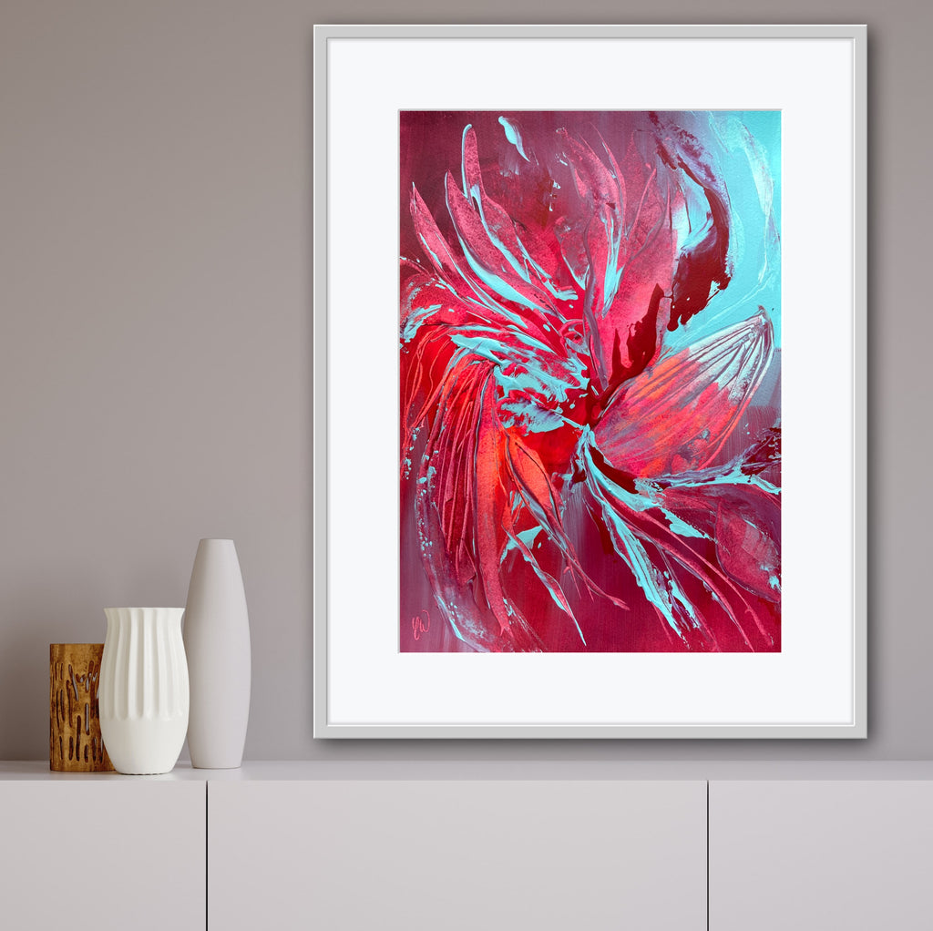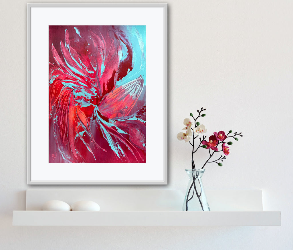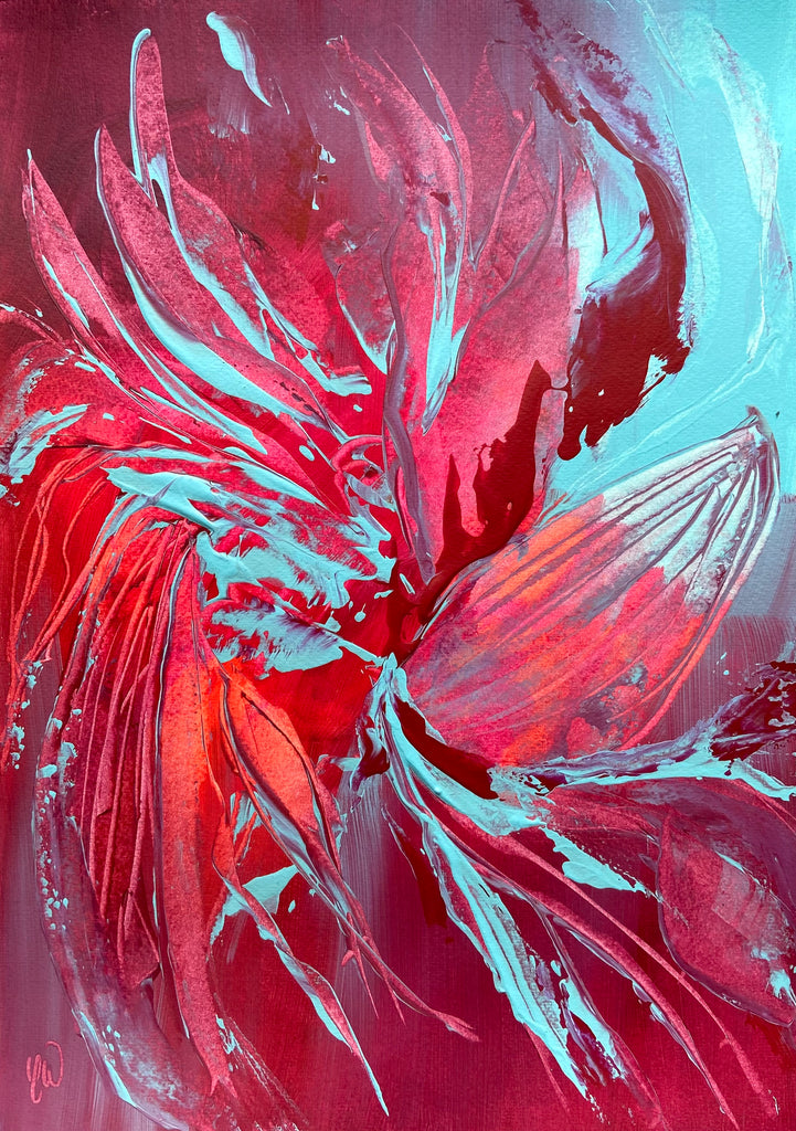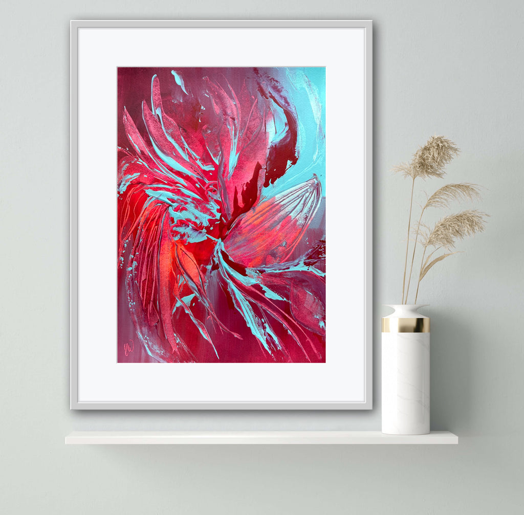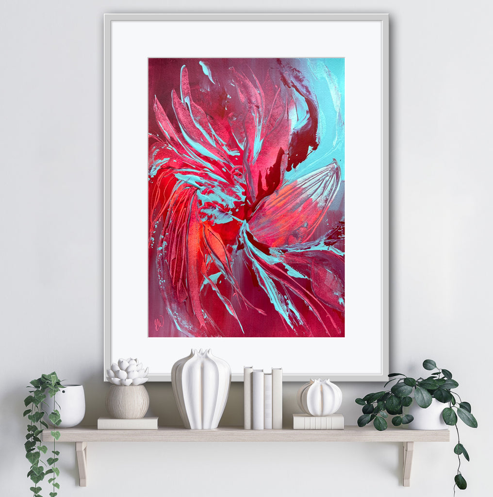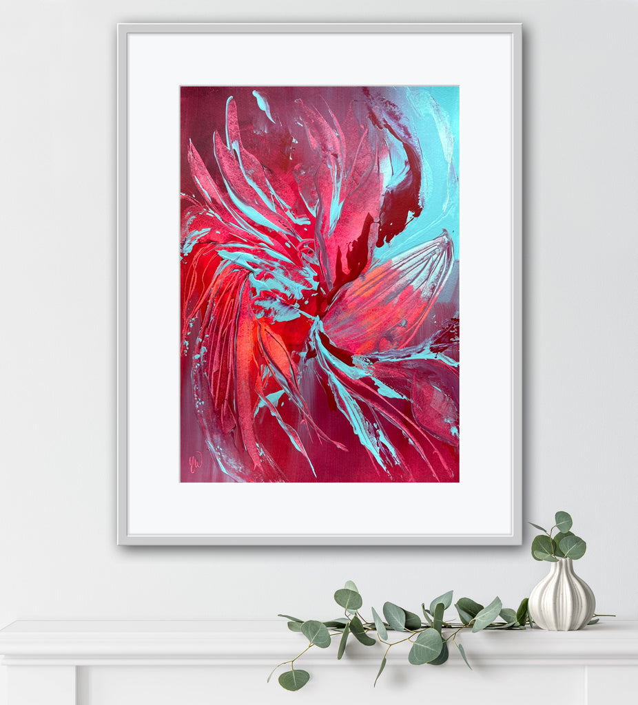 In Paradise is a beautiful abstract botanical painting that has a tropical feel. Some images show what this piece looks like framed. Frames not included. 29.7 x 42 cm (A3 size) Acrylic on paper. Requires framing. No returns on original artworks so please choose carefully.