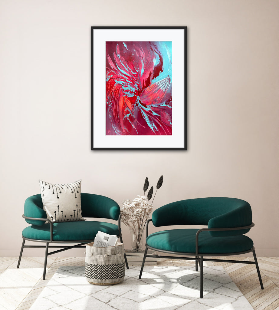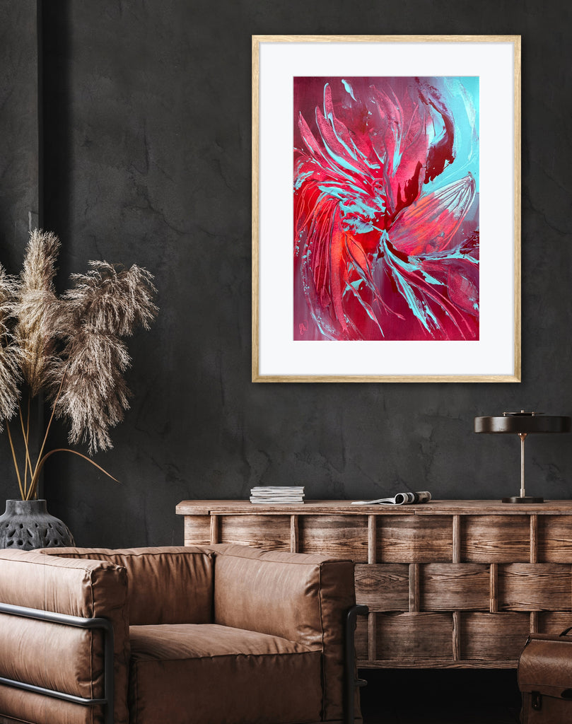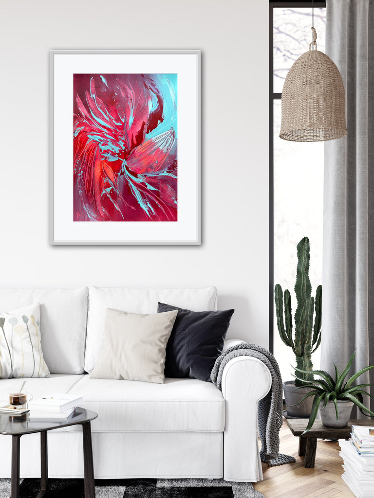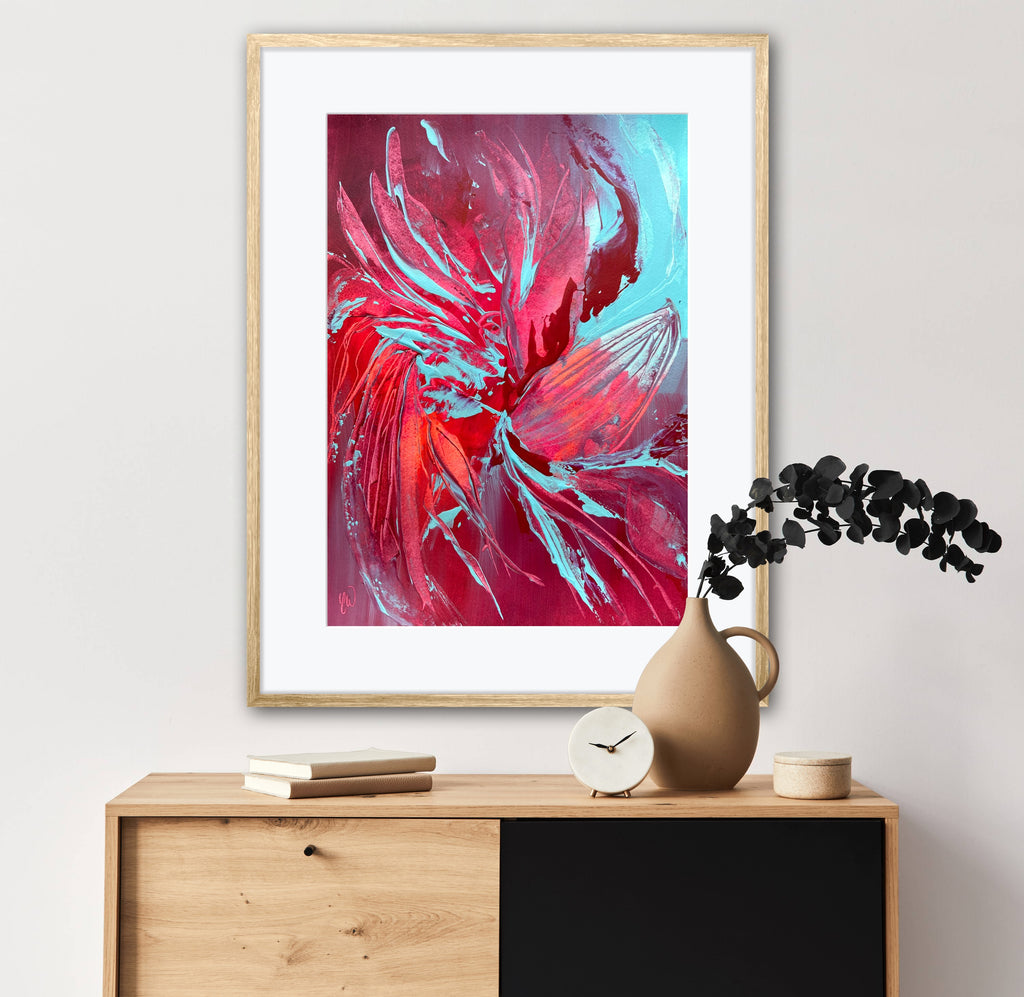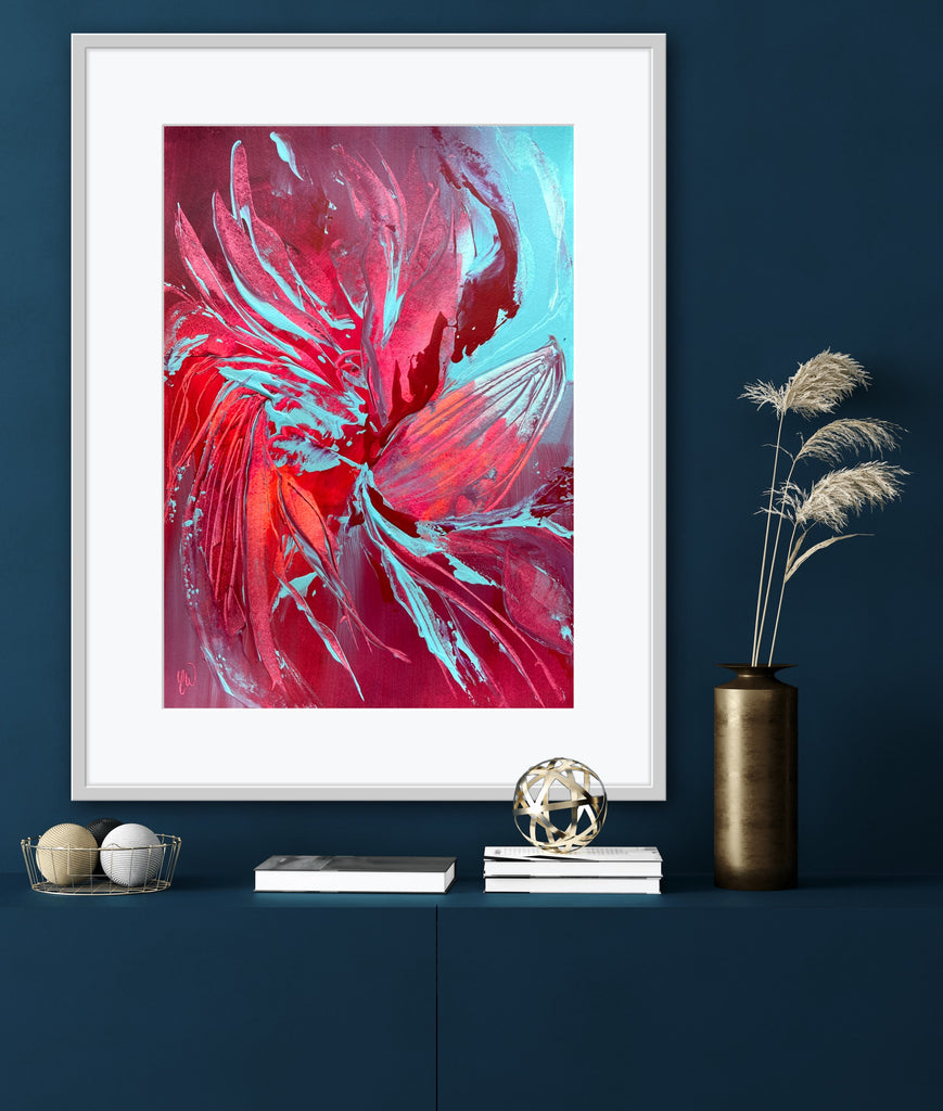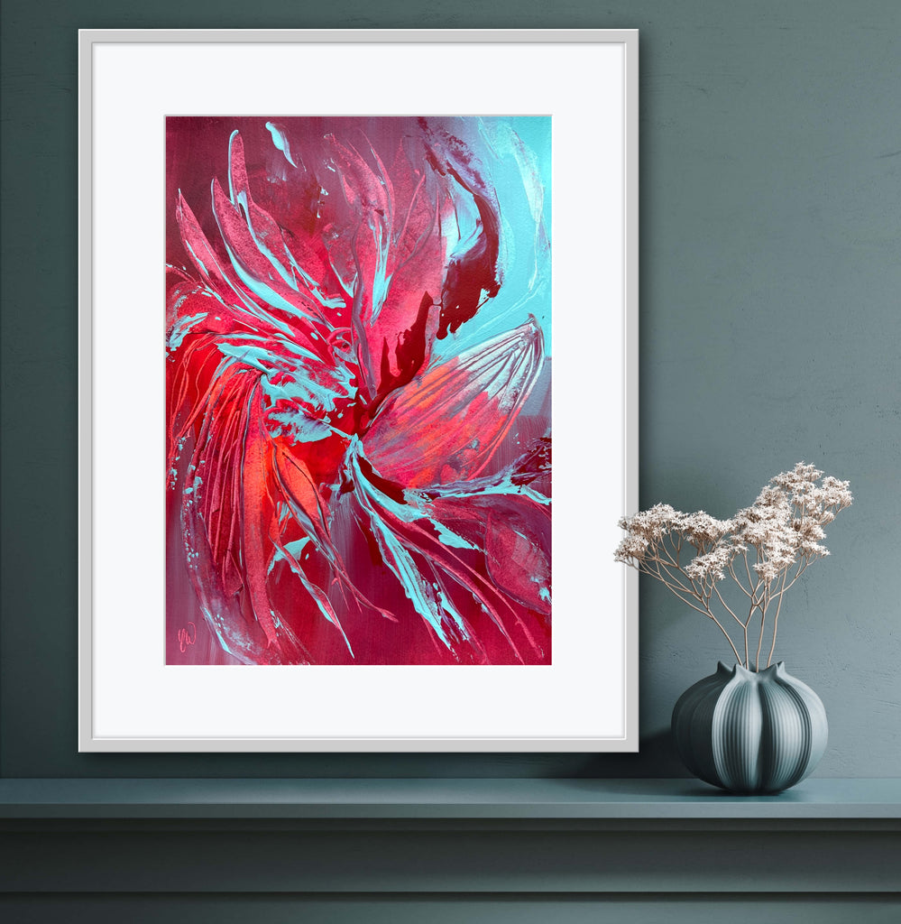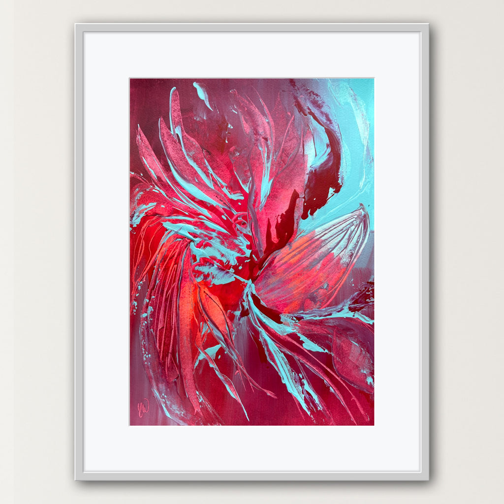 In Paradise is a beautiful abstract botanical painting that has a tropical feel. Some images show what this piece looks like framed. Frames not included. 29.7 x 42 cm (A3 size) Acrylic on paper. Requires framing. No returns on original artworks so please choose carefully.