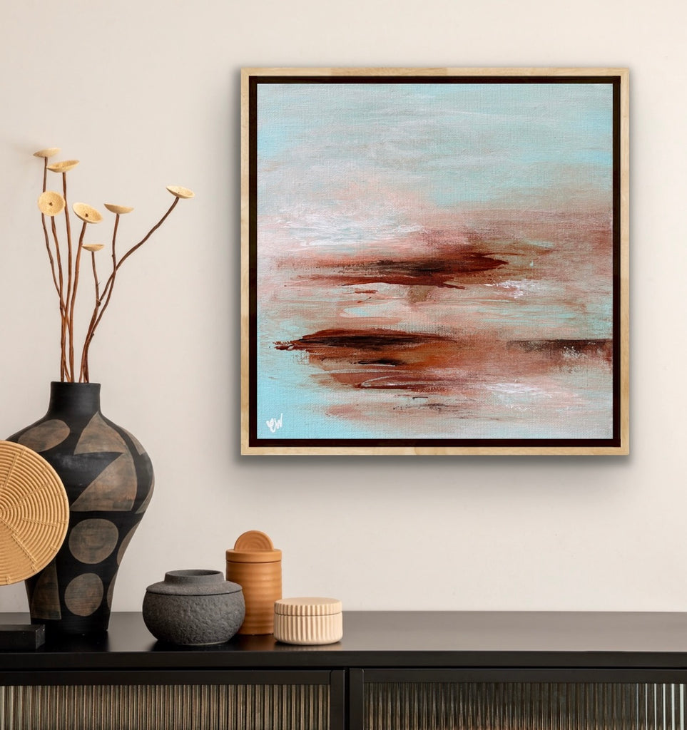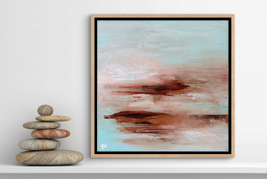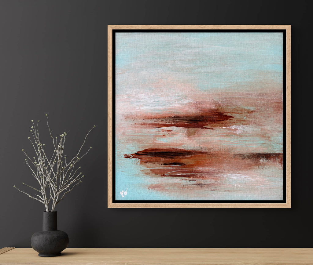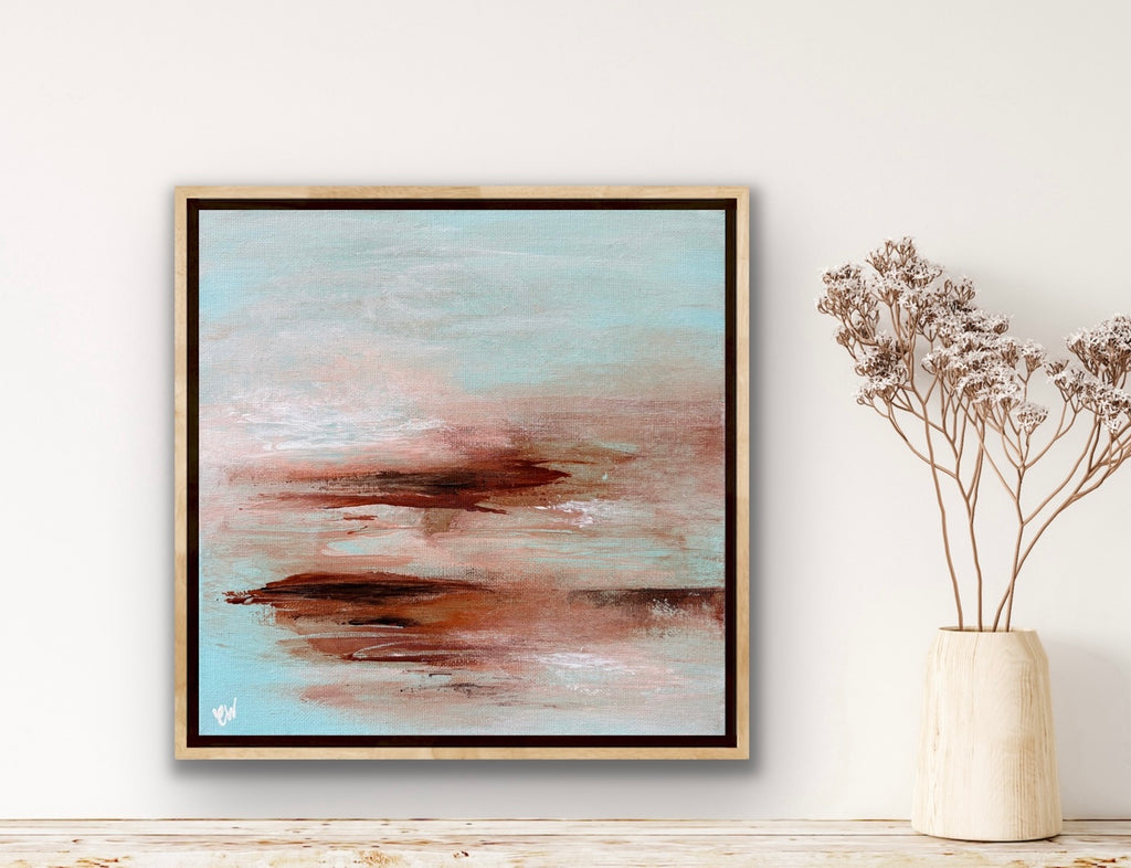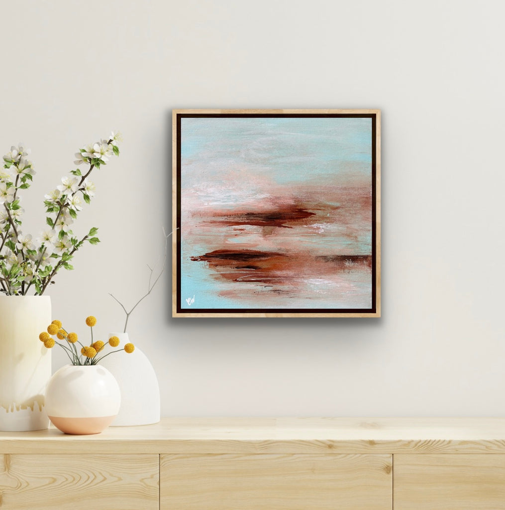 In The Still is a beautiful abstract landscape/seascape.  25 x 25 cm. Acrylic on canvas, ready to hang. Frame not included. No returns on original artworks for change of mind so please choose carefully.