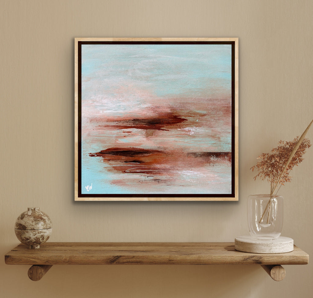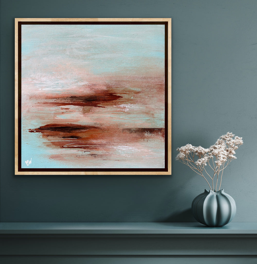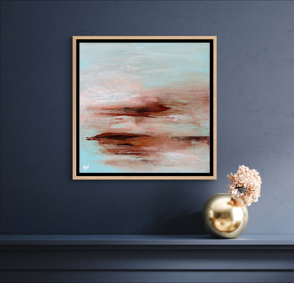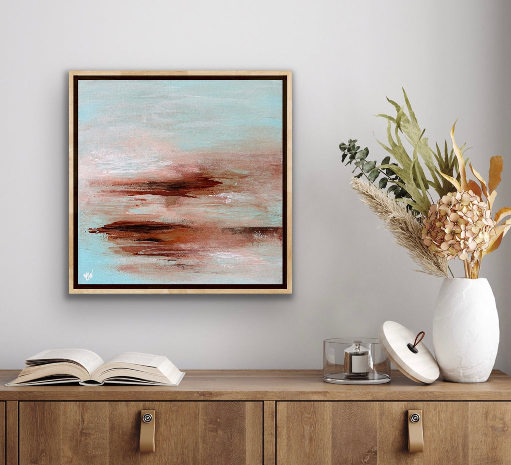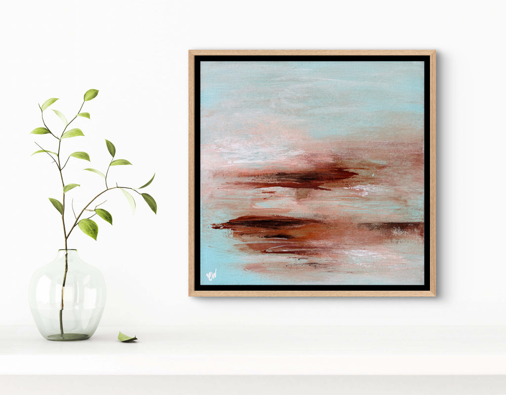 In The Still is a beautiful abstract landscape/seascape.  25 x 25 cm. Acrylic on canvas, ready to hang. Frame not included. No returns on original artworks for change of mind so please choose carefully.