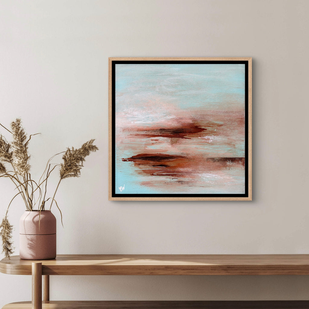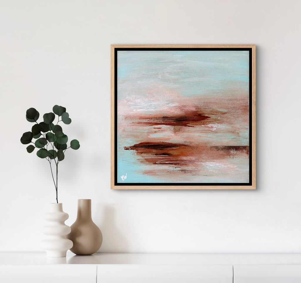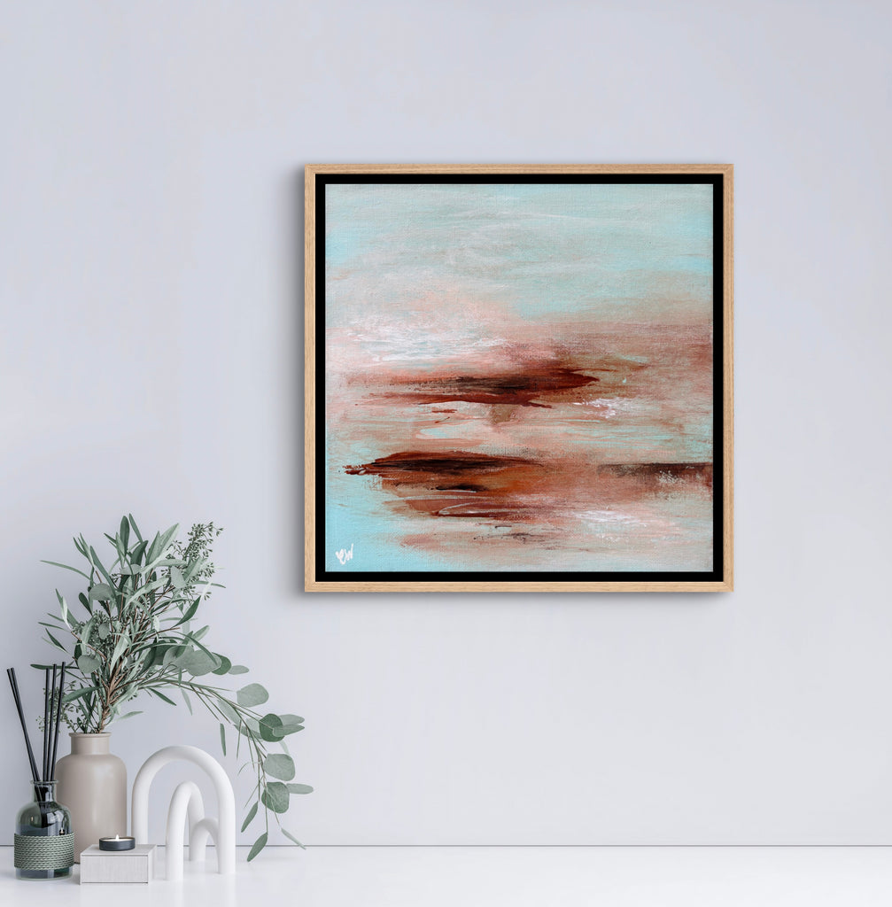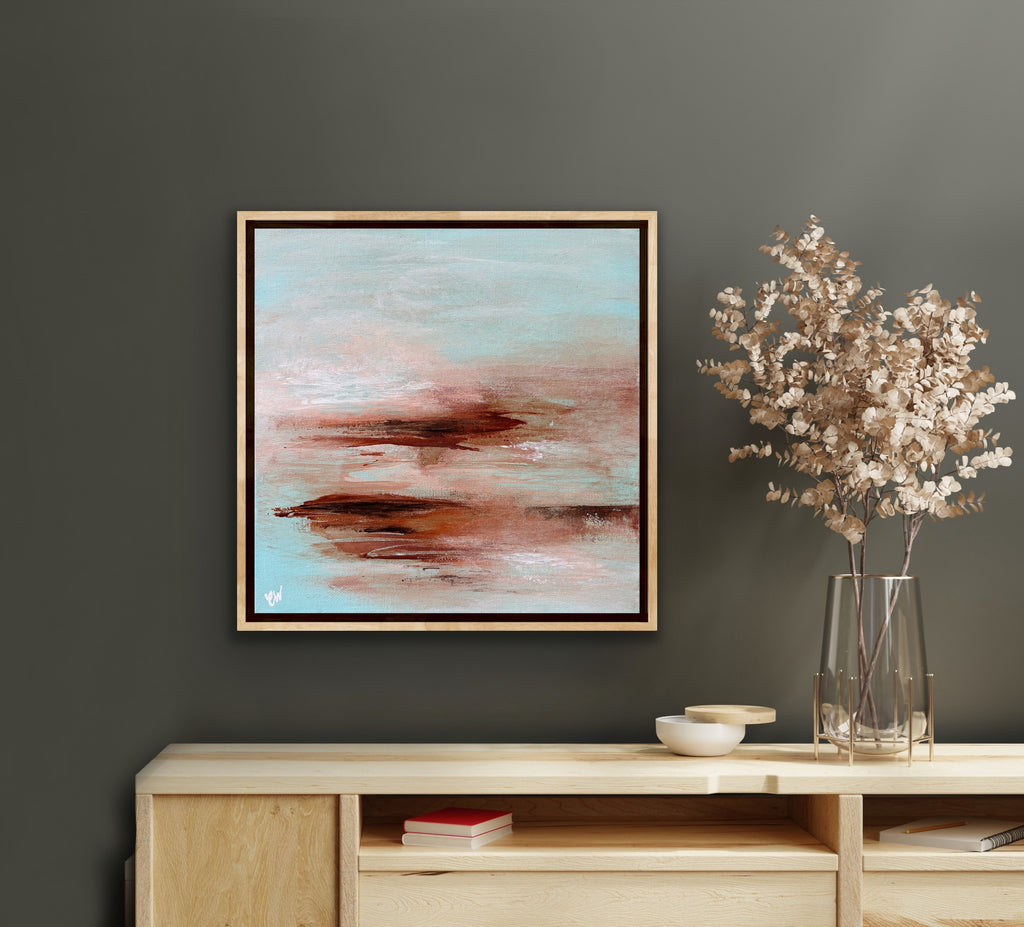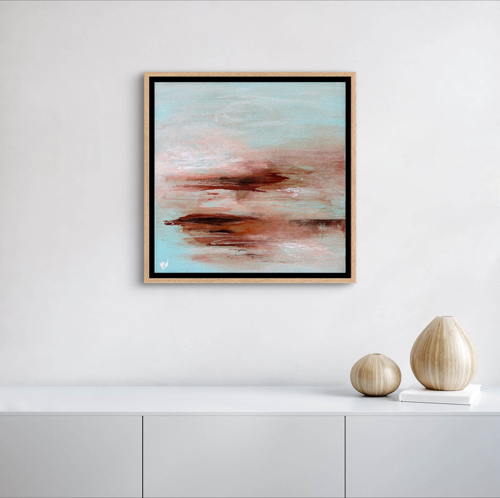 In The Still is a beautiful abstract landscape/seascape.  25 x 25 cm. Acrylic on canvas, ready to hang. Frame not included. No returns on original artworks for change of mind so please choose carefully.
