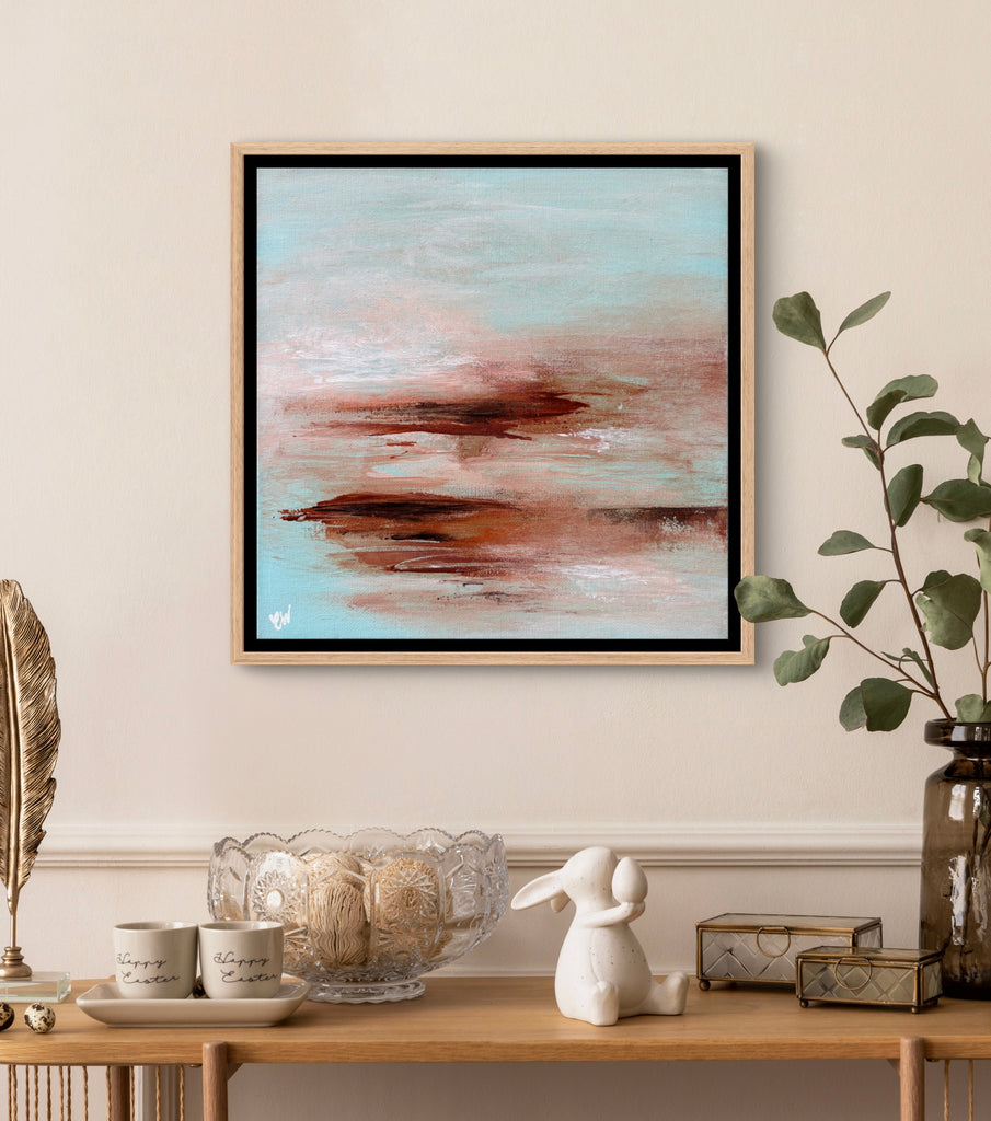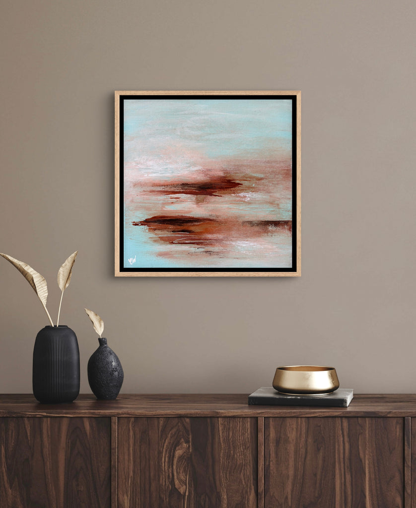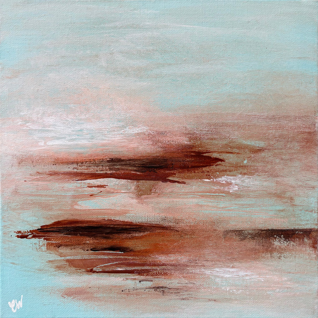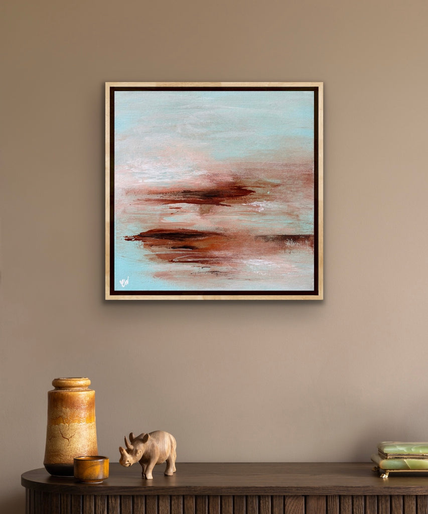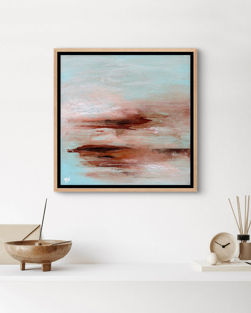 In The Still is a beautiful abstract landscape/seascape.  25 x 25 cm. Acrylic on canvas, ready to hang. Frame not included. No returns on original artworks for change of mind so please choose carefully.