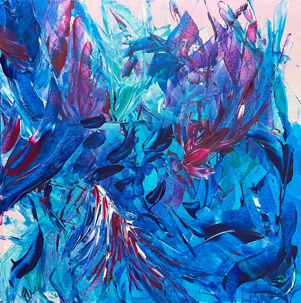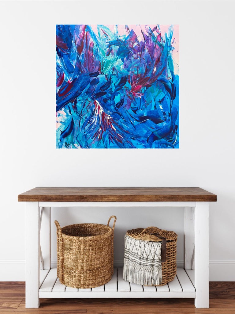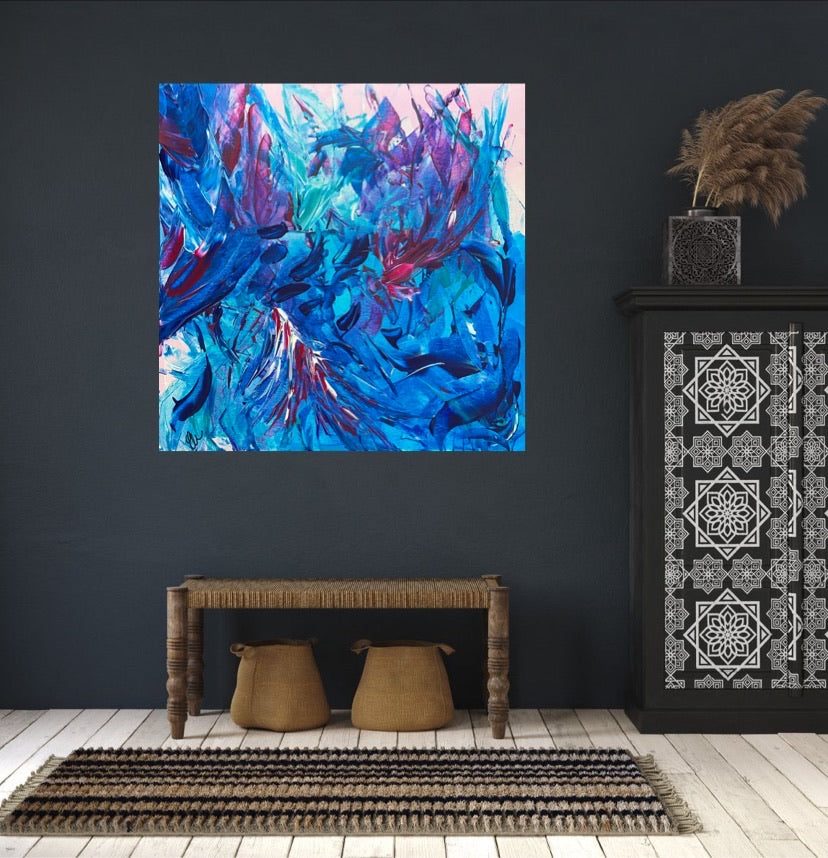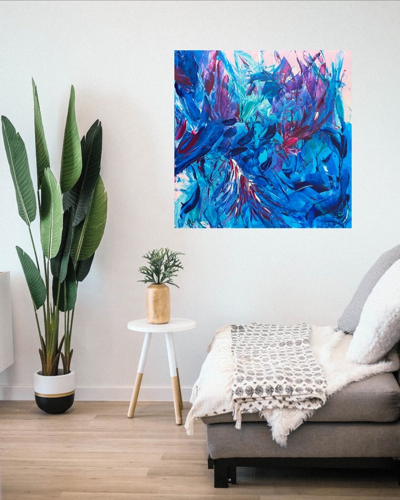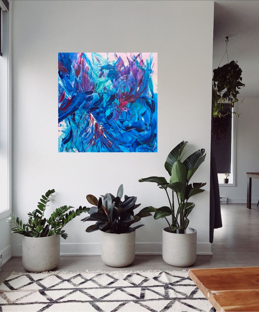 In the tropics is all about the feeling of holidays. Beautiful lush plants and cocktails by the pool. Bright vibrant colours make this a beautiful piece to liven up any room and envoke a sense of joy. 50.8 x 50.8 x 2 cm. Acrylic on canvas, ready to hang. No returns on original artworks so please choose carefully.